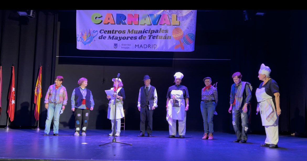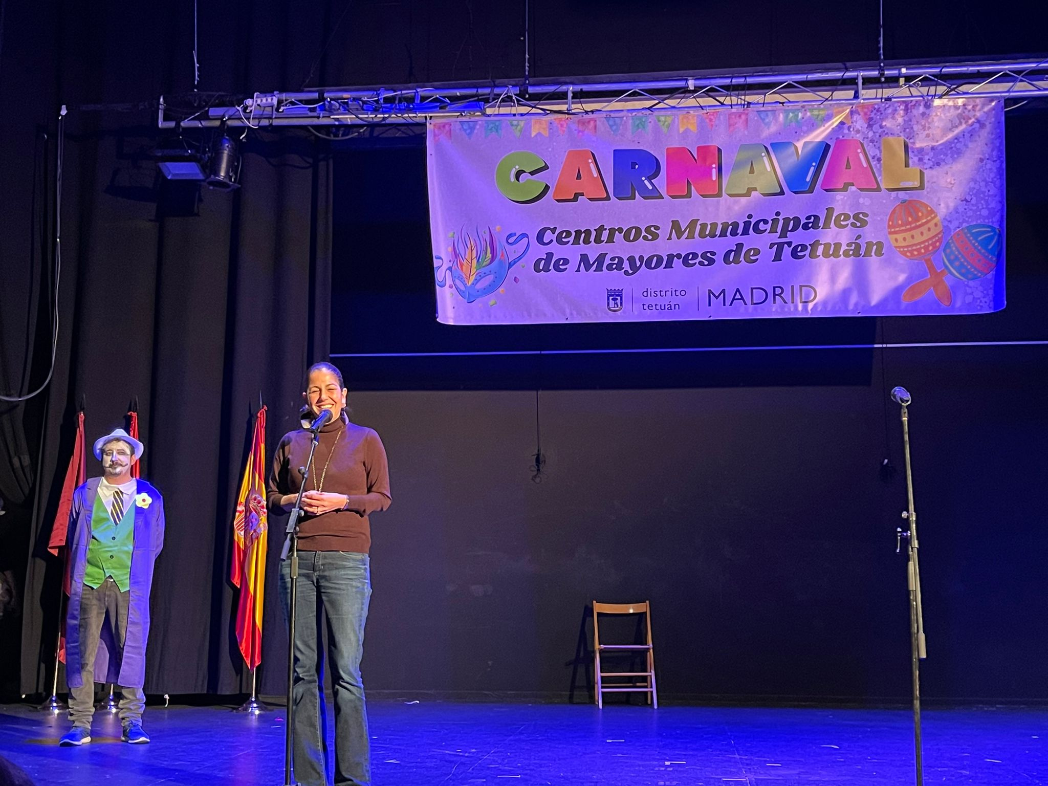 La concejala de Tetuán, Blanca Pinedo, ha clausurado esta tarde el encuentro de chirigotas de los tres centros de mayores del distrito -Leñeros, Pamplona y Remonta-, en el que también ha participado el grupo de mayores del CMM Moratalaz. Decenas de mayores han sido los anfitriones de otros tantos llegados de Moratalaz con el objetivo de socializar y celebrar unas fiestas con la ironía, el sarcasmo y la diversión de las chirigotas y comparsas.