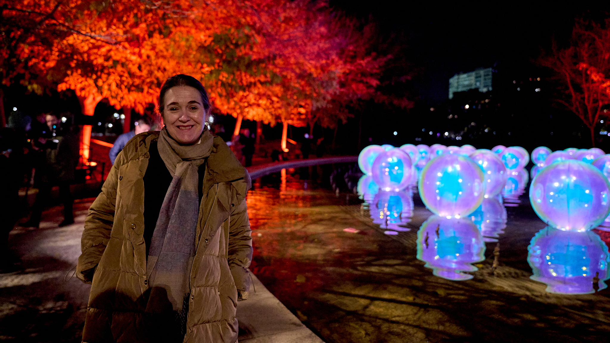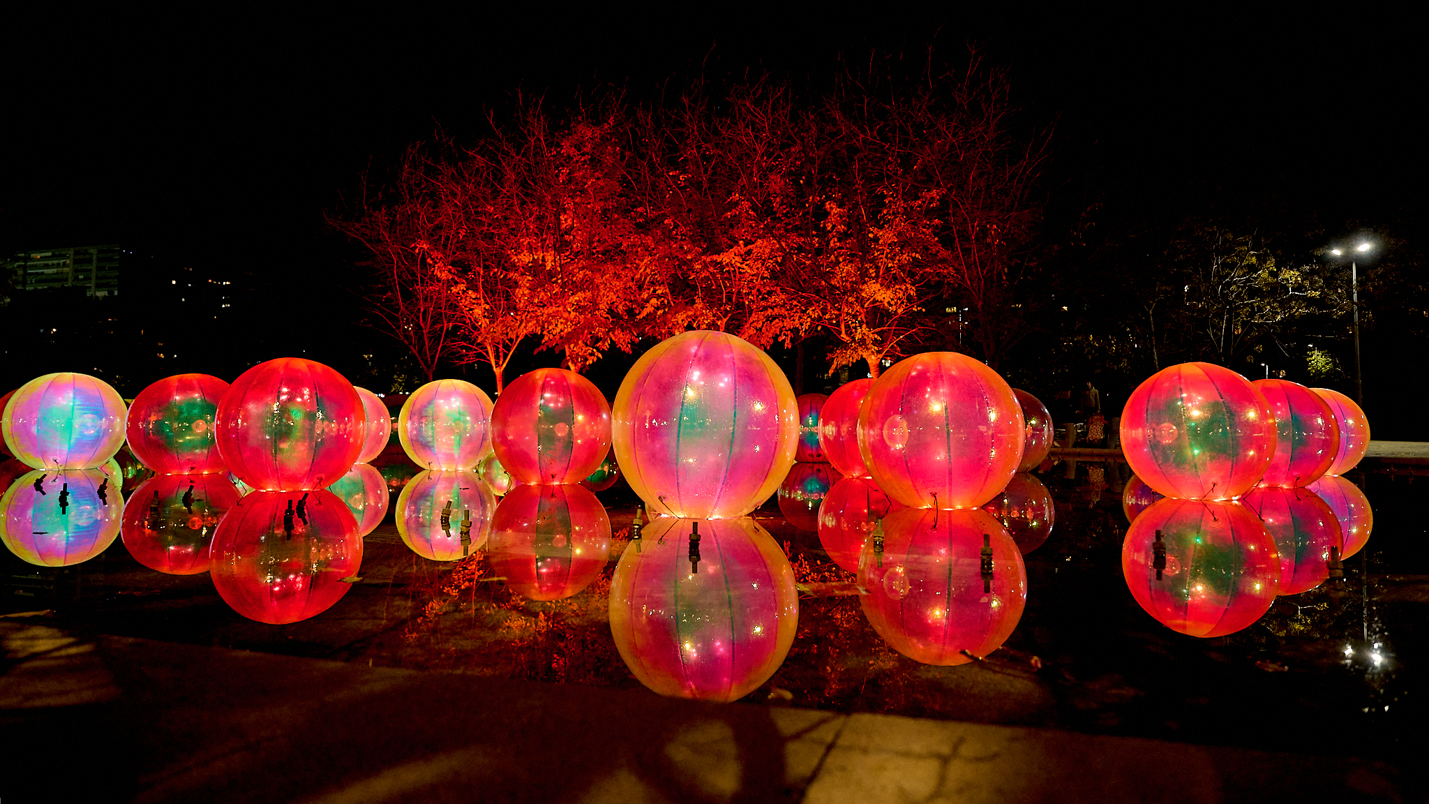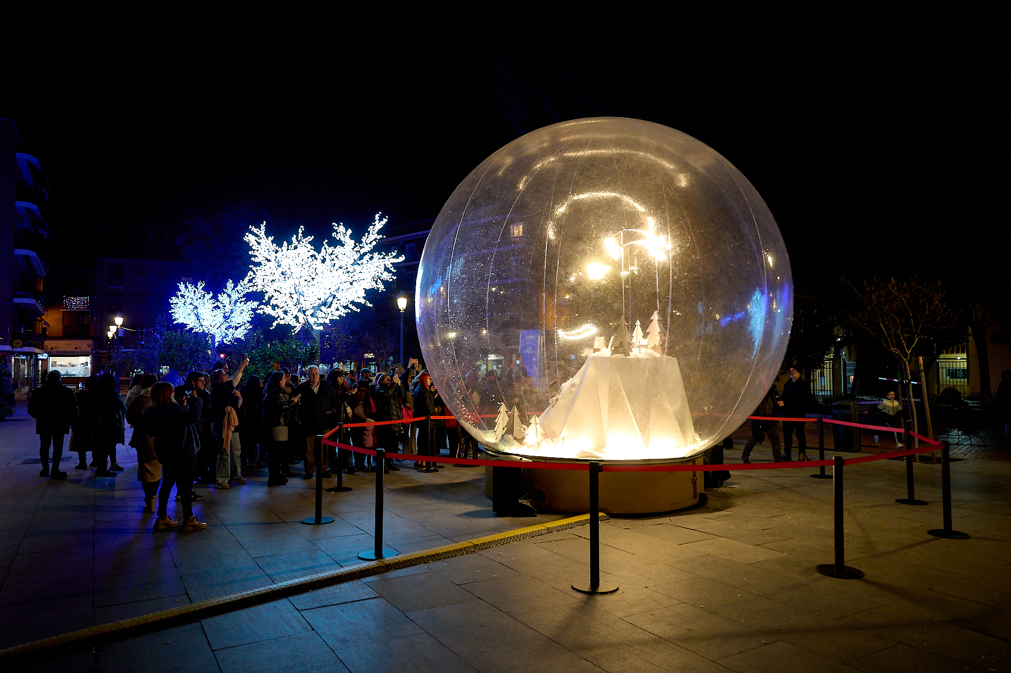 En Madrid Río (Arganzuela), la Fuente del Obelisco alberga Feliz Navidad, un espectáculo de esferas hinchables con luces de colores (hasta el 29 de diciembre, de 11:00 a 23:00 h). En la Plaza de Cristina Arce y Rocío Oña (Barajas), Dulces Navideños invita a pasear por un bosque interactivo de bastones de caramelo que se iluminan, generando una encantadora orquesta de sonidos navideños (hasta el 29 de diciembre, de 11:00 a 22:00 h; cerrada los días 24 y 25 de diciembre). Y en la Plaza de Carabanchel se encuentra La Bola de Nieve, un espectáculo interactivo que recrea paisajes invernales dentro de una bola de cristal, desatando una nevada que cubre de blanco el escenario y da vida a diversos personajes (hasta el 29 de diciembre, de 11:00 a 22:00 h; cerrada los días 24 y 25 de diciembre). /
