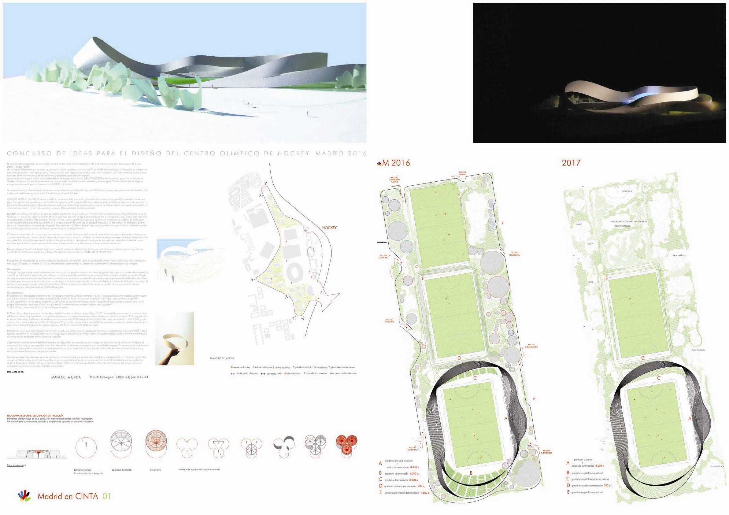 Es la última infraestructura situada en el Corazón de los Juegos y también formará parte del legado olímpico para la ciudad como centro de competición y entrenamiento de Hockey sobre Hierba. Madrid en Cinta da nombre al proyecto, se erigirá sobre una parcela de 47.750 metros cuadrados y contará con dos campos al aire libre con graderíos para 12.000 y 5.000 espectadores, respectivamente. Sus autores la describen así: “Se asomará sobre el cielo de Madrid un nuevo campo de Hockey configurado por una cinta que emerge y desaparece entre el arbolado. Una cinta sin fin”.