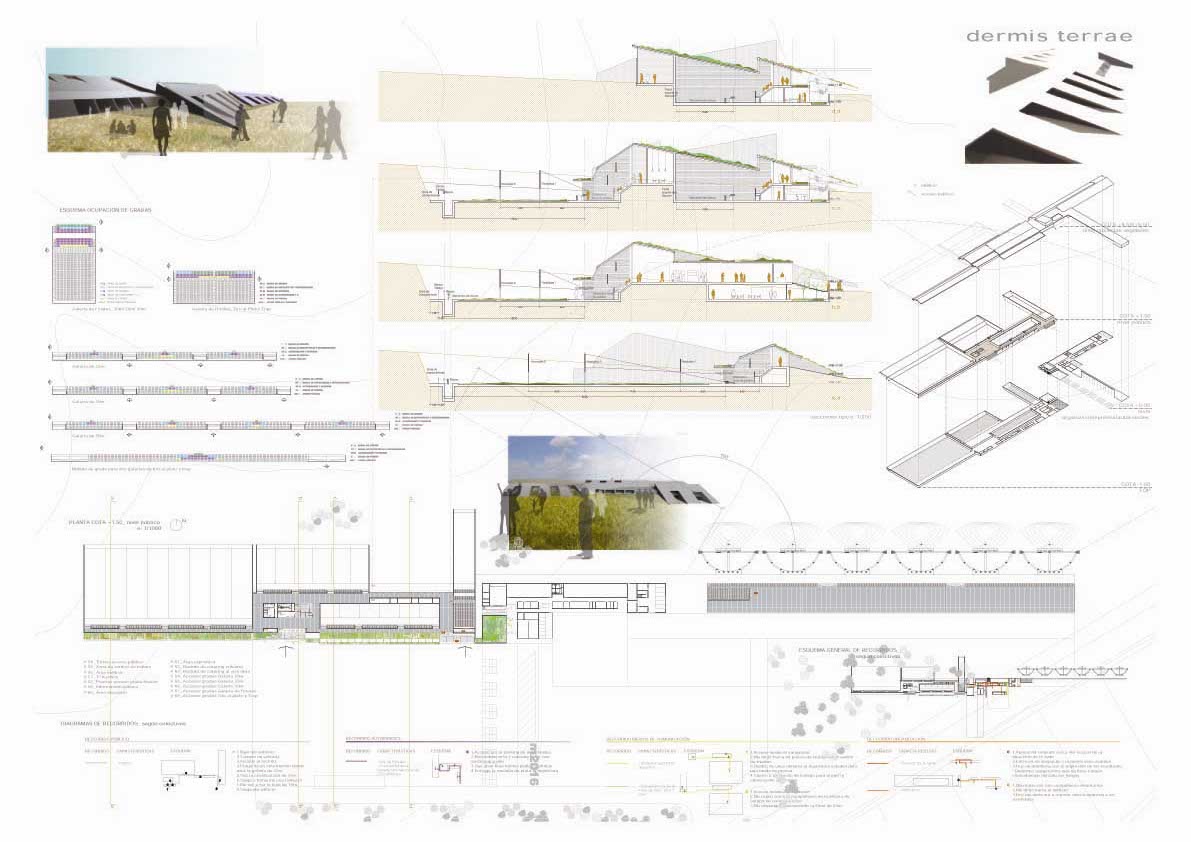 La topografía de la parcela es una de las claves del proyecto. El edificio intenta aprovechar el desnivel progresivo del terreno, jugando con las distintas cotas. Otro de los elementos claves es la vegetación que convierte el exterior del recinto en un tapiz vegetal.