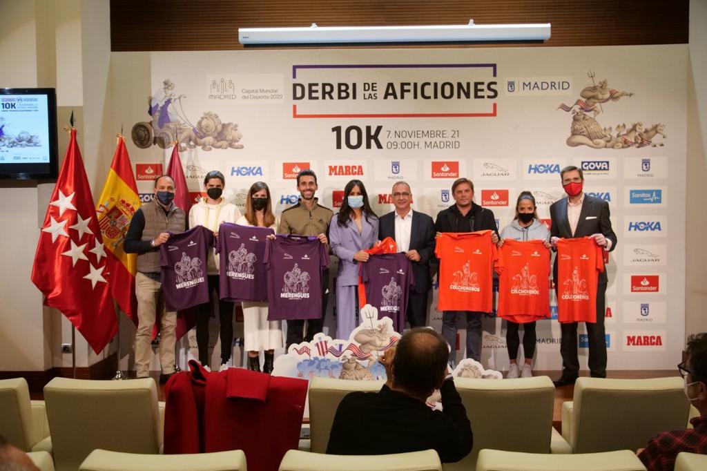 Una curiosa y tradicional carrera tomará las calles de la ciudad este domingo, 7 de noviembre. Se trata del Derbi de las Aficiones, en el que cerca de 7.000 aficionados del Real Madrid y del Atlético de Madrid medirán sus dotes como velocistas. La vicealcaldesa, Begoña Villacís, y la concejala delegada de Deporte, Sofía Miranda, han participado este mediodía en la presentación de la XI edición de esta prueba, que regresa a la capital tras suspenderse la edición de 2020 a causa de la pandemia.