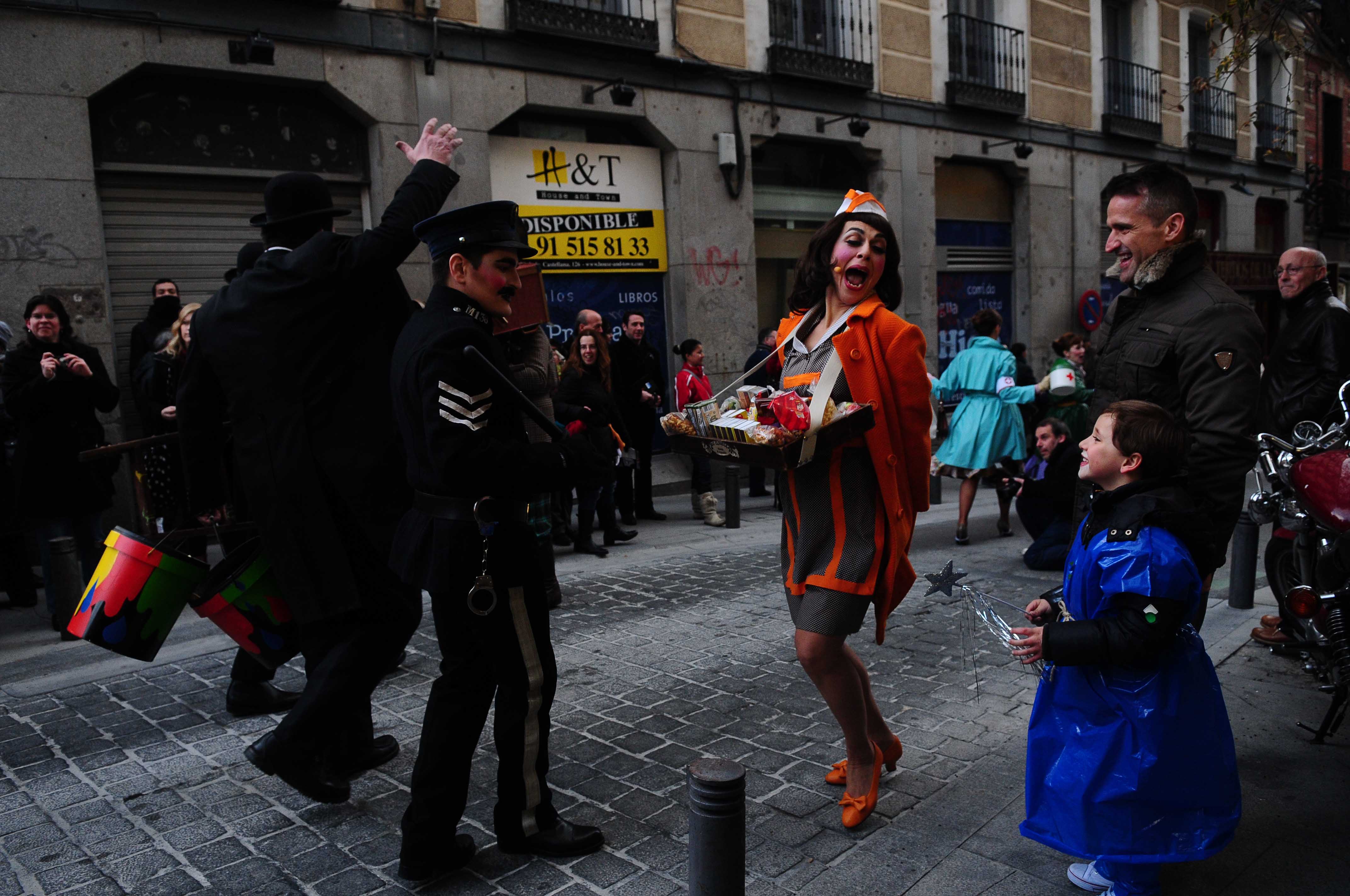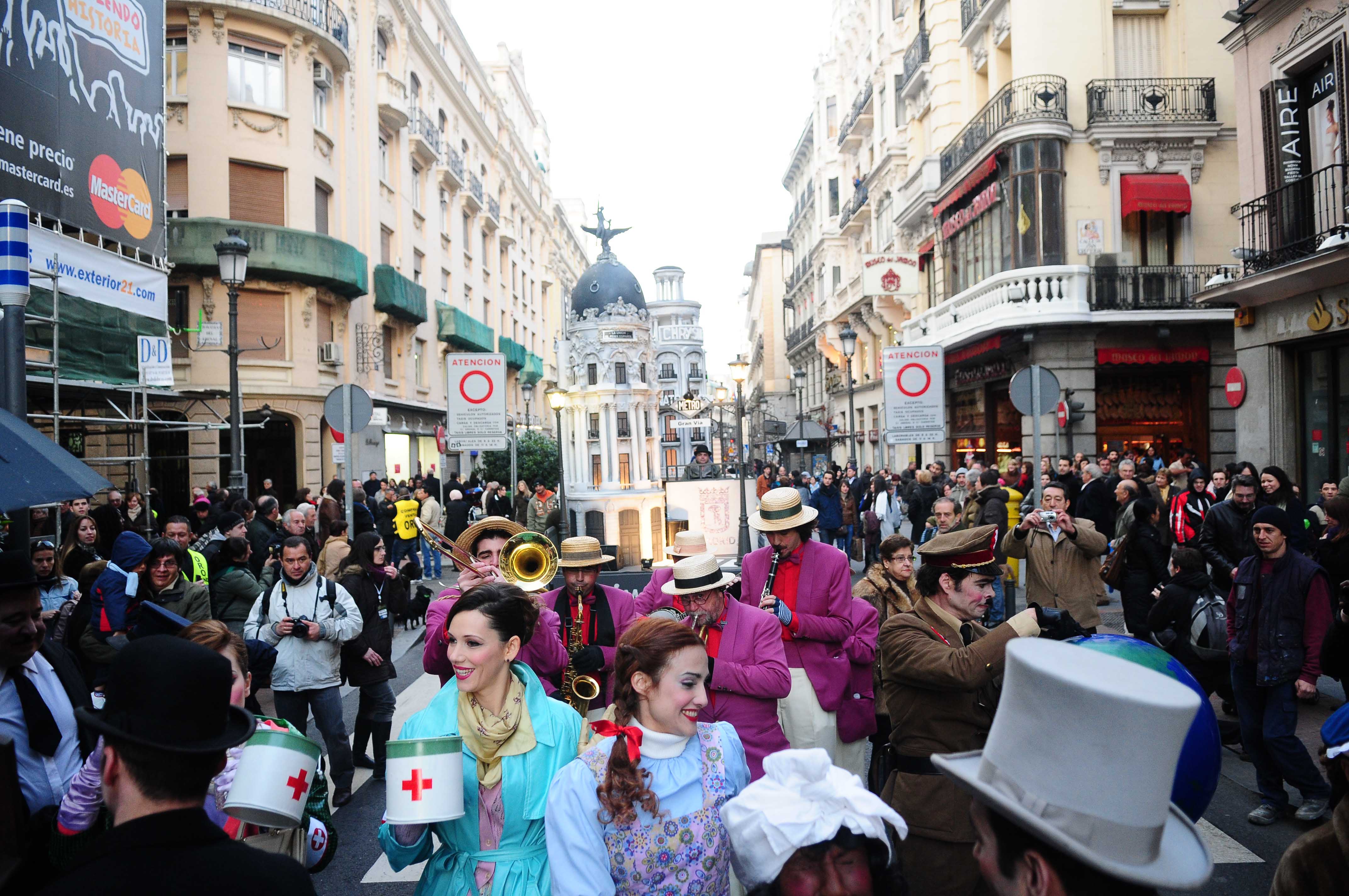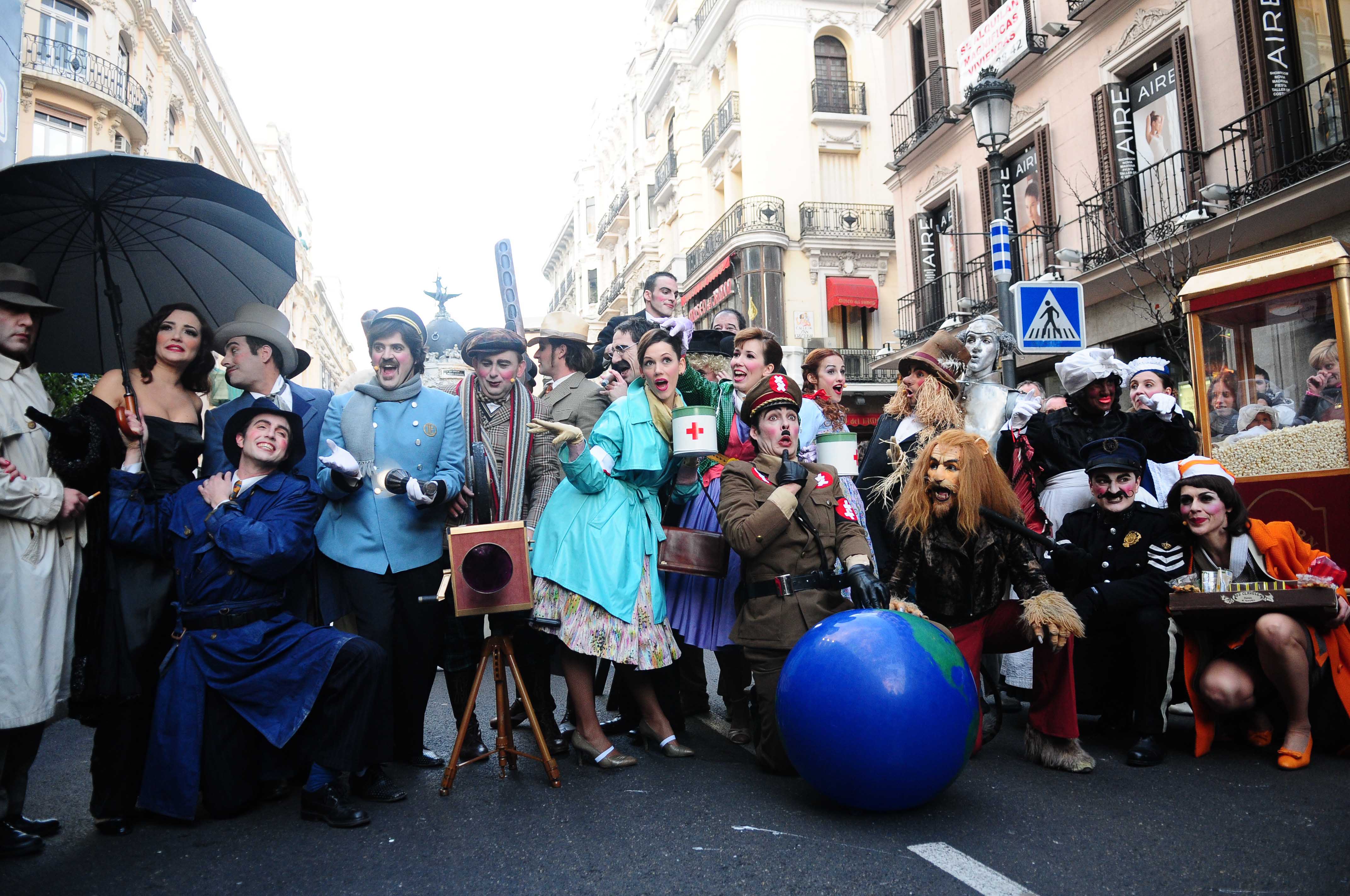 Una vendedora de palomitas, un proyeccionista y un acomodador –tres personajes rescatados del mundo del cine– han actuado como maestros de ceremonia en el comienzo del Carnaval. El alcalde, Alberto Ruiz-Gallardón, ha inaugurado en la Plaza de la Villa el inicio de las fiestas con la entrega de una Llave de Oro gigante de la Ciudad a la actriz Angy Fernández y el actor Álex García, que han ejercido de padrinos. Esta edición del Carnaval está dedicada al mundo del celuloide, y también al centenario de la Gran Vía. A pesar del frío, han sido muchos los madrileños que no han querido perderse ni el pasacalles que ha recorrido la Plaza Mayor y la Puerta del Sol ni el espectáculo "Floten Tecles", en el que el músico David Moreno toca el piano, la percusión y el acordeón suspendido a seis metros de altura. El sábado repetirá la actuación.