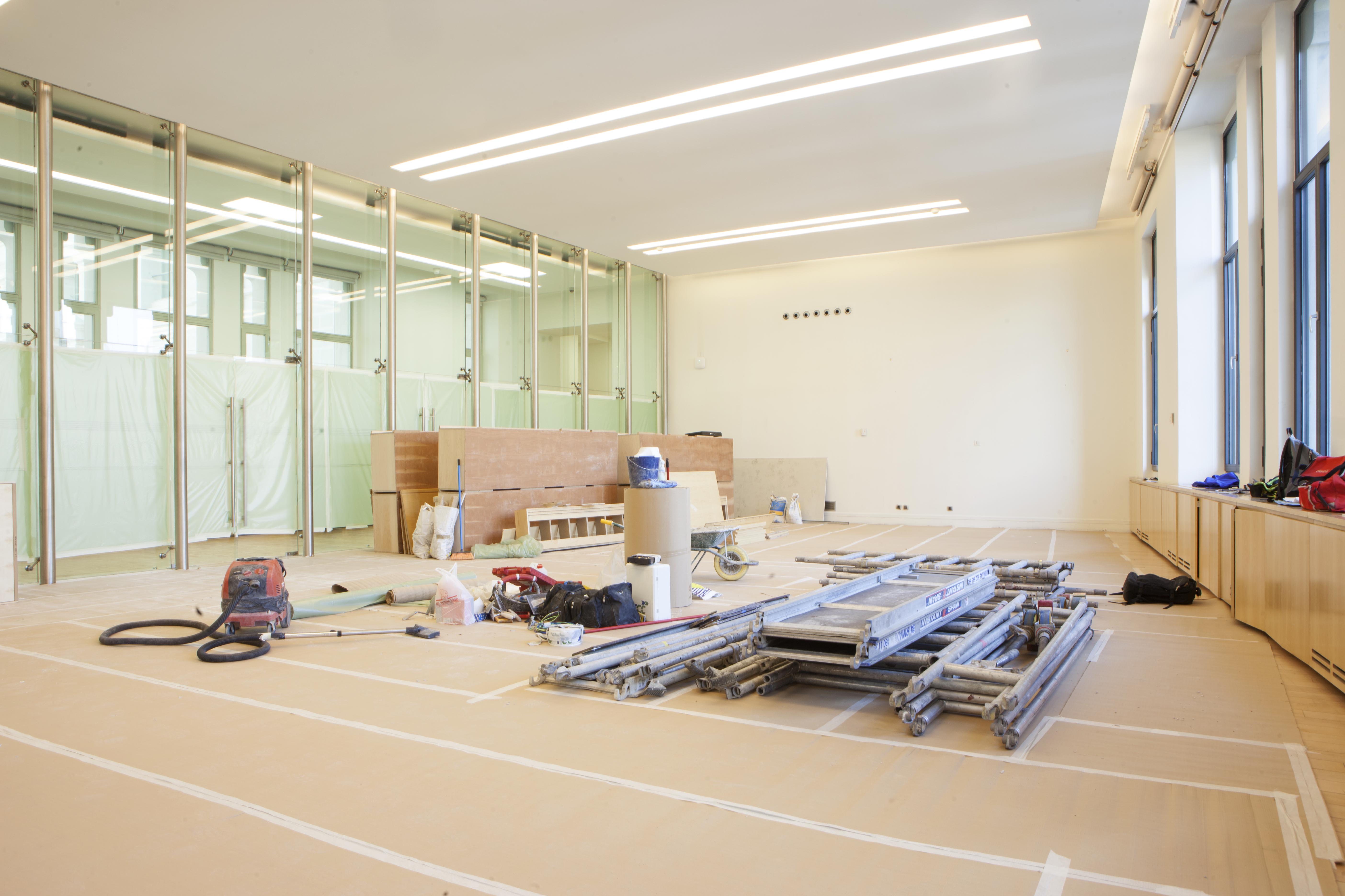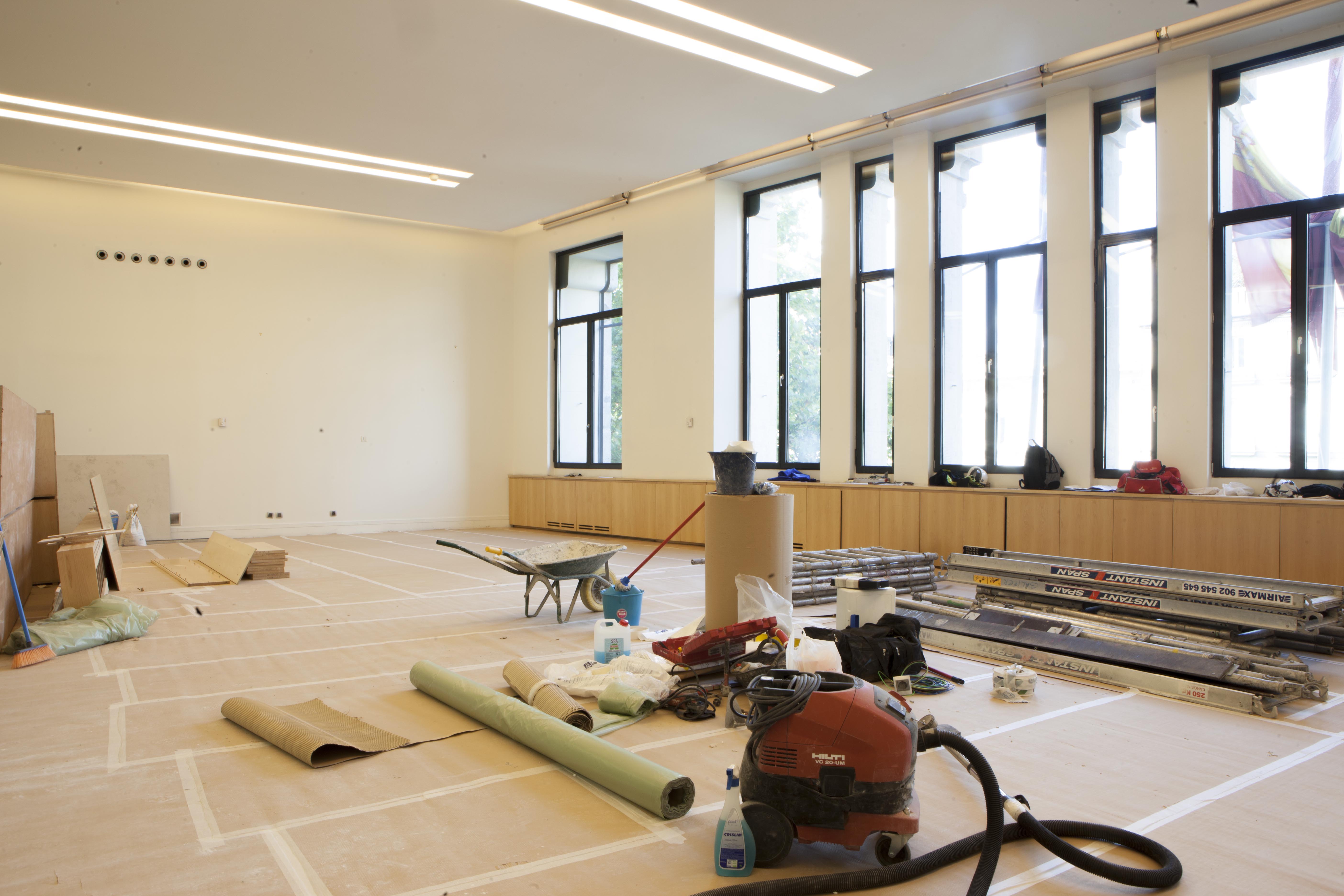 El gran salón institucional desaparece y pasa a ser un espacio diáfano donde se instalarán diversos puestos de trabajo. Lo mismo ocurre con la sala en la que hasta ahora se celebraban las juntas de gobierno y donde ahora se colocarán tres puestos de trabajo.