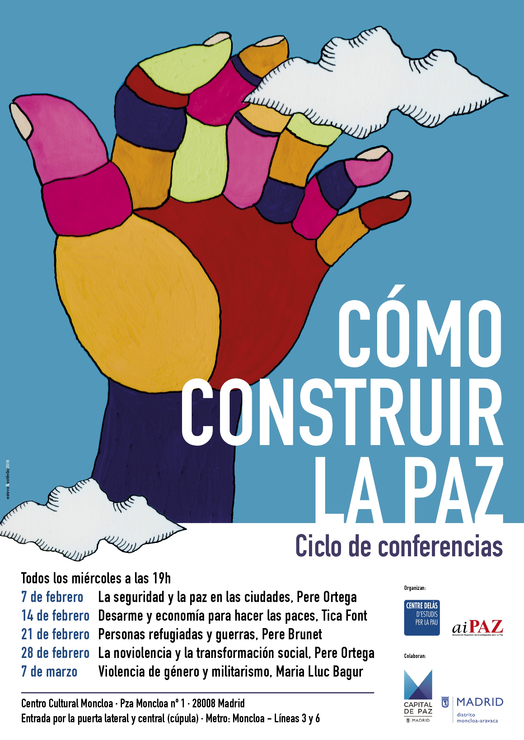 El distrito de Moncloa-Aravaca abre este año 2018 el debate y la reflexión en el Centro Cultural Moncloa con el ciclo de conferencias "Cómo construir la paz". A través de una serie de cinco ponencias se sigue un recorrido sobre las principales perspectivas y propuestas transformadoras alternativas al militarismo y al gasto militar, y se analiza sus efectos en la convivencia y transformación de la sociedad contemporánea.