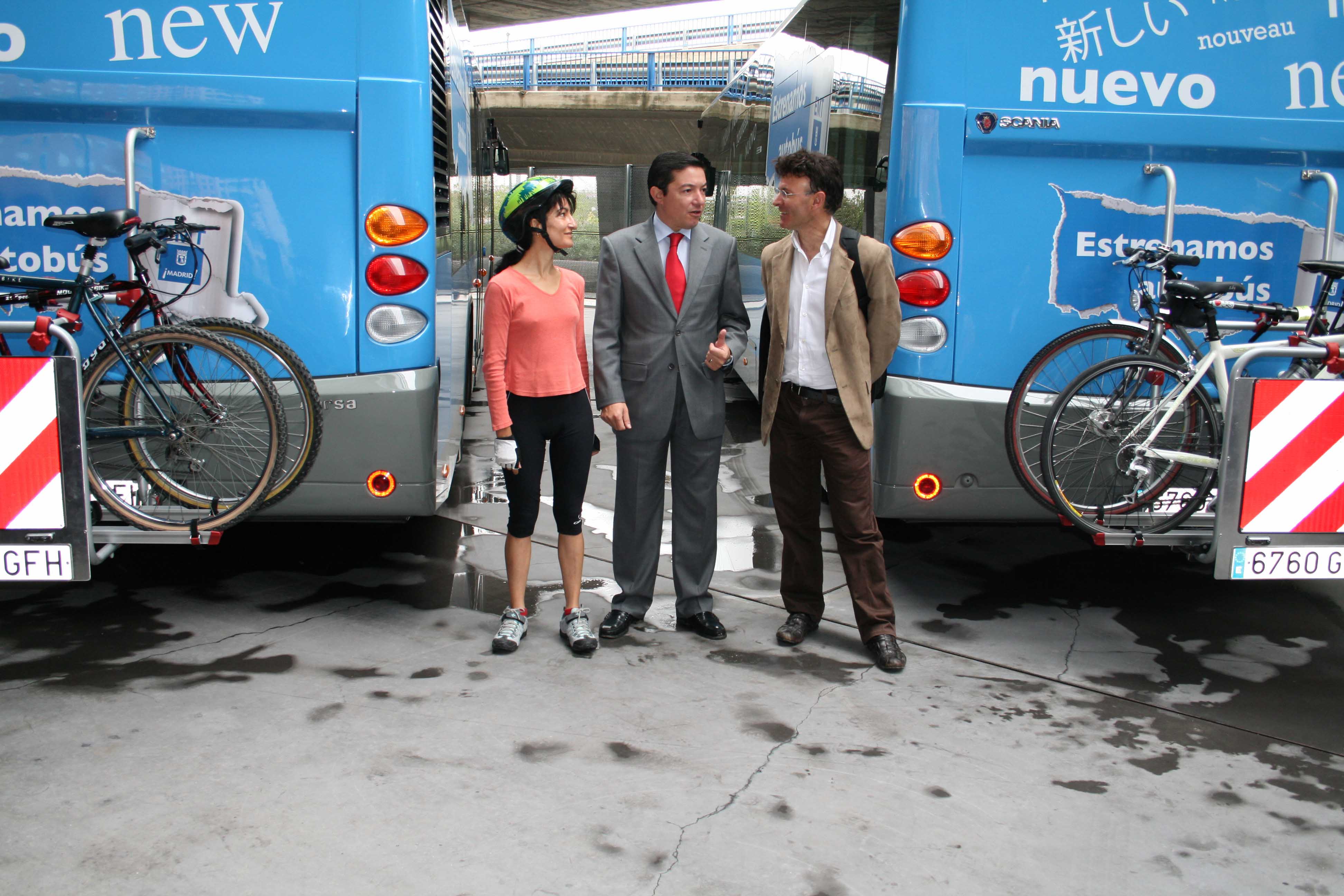Compatibilizar bici y bus, sobre todo si el sitio elegido para pedalear es uno de los pulmones de la ciudad, como es la Casa de Campo. Hoy Calvo ha presentado también los soportes que se han instalado, de forma experimental los fines de semana, en los autobuses de la línea 33 que tiene como destino ese gran parque. "Me consta que es una iniciativa pionera en la flota municipal europea", aseveró. De esta forma se podrán trasladar dos bicicletas por autobús sin incremento de la tarifa del billete.