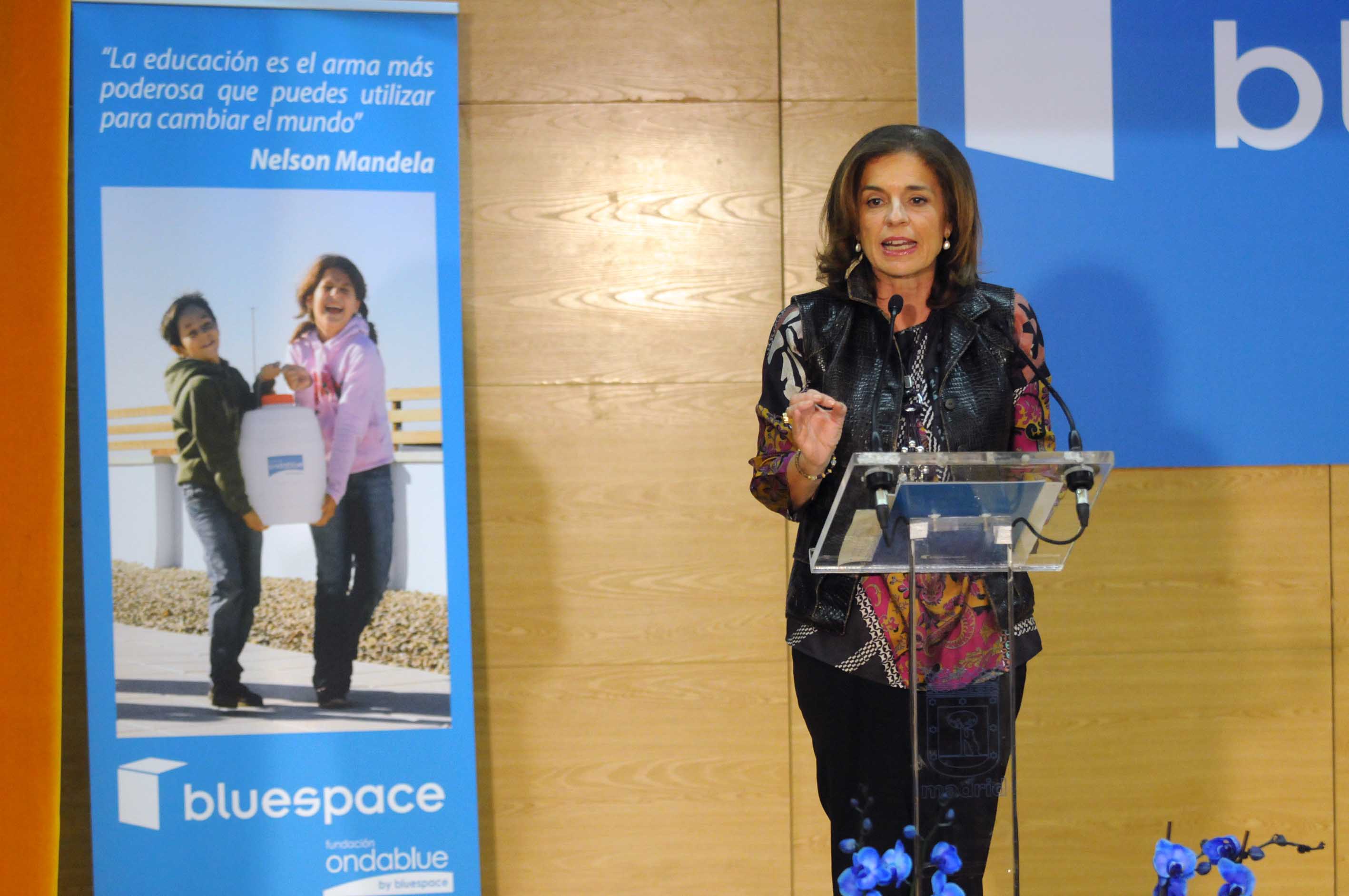 Ana Botella, alcaldesa de la Ciudad de Madrid, con el fin de trabajar en la concienciación sobre el consumo responsable de agua entre los más pequeños, estuvo en la presentación de la Fundación OndaBlue, que nace de la mano de la firma Bluespace y que se celebró en el Colegio Claret. En palabras de Botella este proyecto demuestra demuestra "además de sensibilidad social, una conciencia medioambiental atinada". "Es una buena noticia -añadió- que se presenten en Madrid las actividades de la Fundación, porque la educación ambiental forma personas respetuosas con sus iguales y con su entorno". Su puesta en marcha es un ejemplo de la importancia que tiene, y más en épocas de crisis, "la apertura de las empresas a la sociedad mediante actividades de responsabilidad corporativa y sus iniciativas éticas".