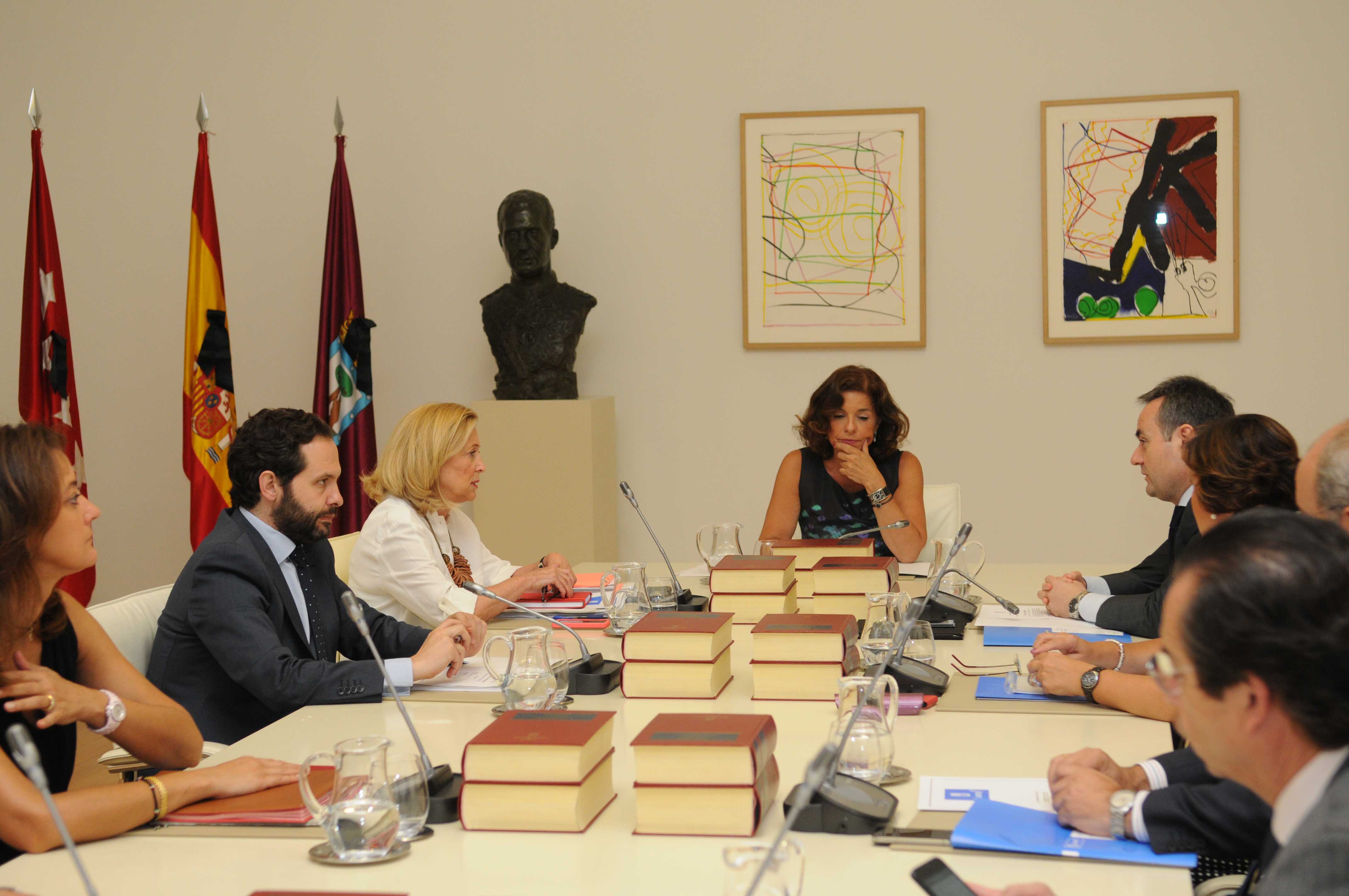 Distintos momentos de la Junta de Gobierno de la Ciudad de Madrid de esta mañana en la que, la alcaldesa, Ana Botella, ha expresado en nombre de todos los madrileños, su más sentido pésame a los familiares de las víctimas del accidente de tren acaecido ayer en Santiago de Compostela.