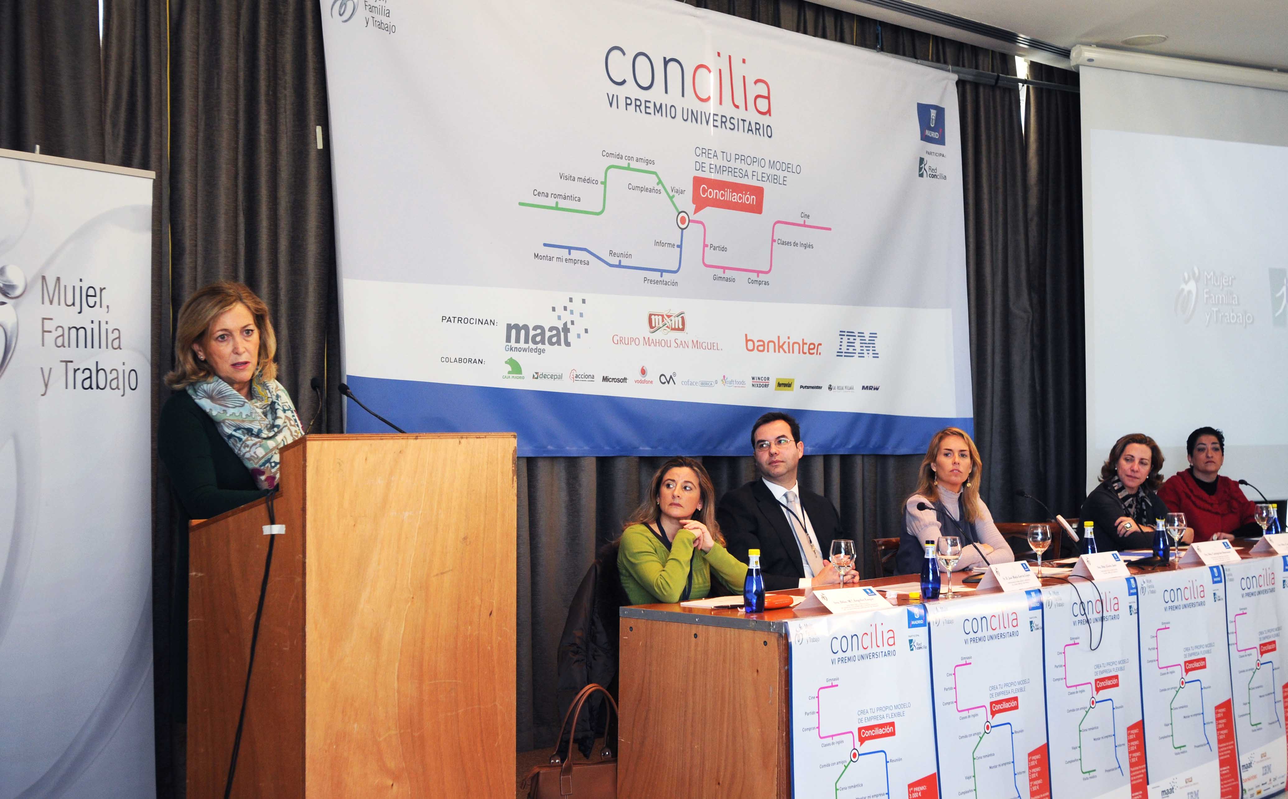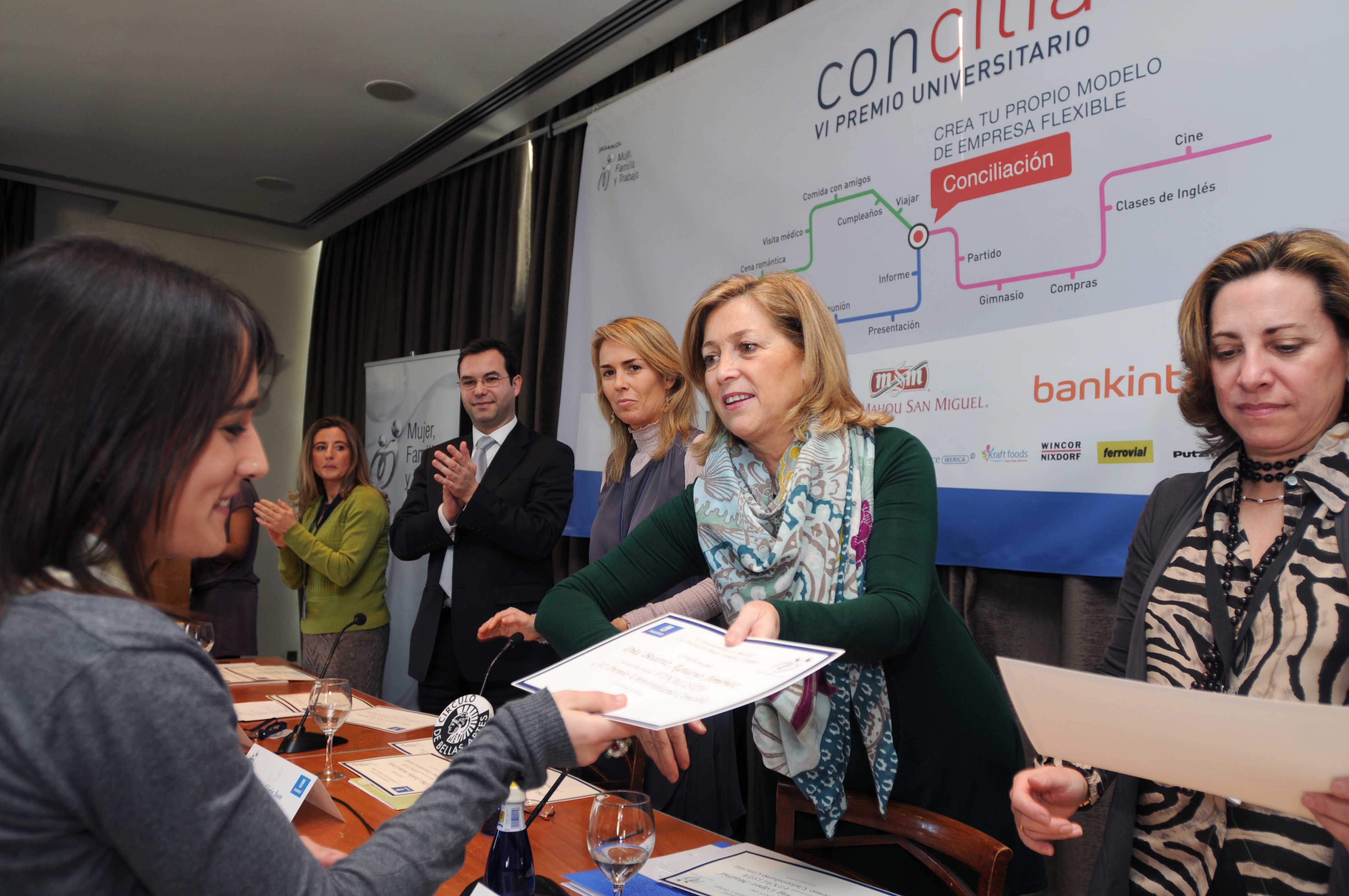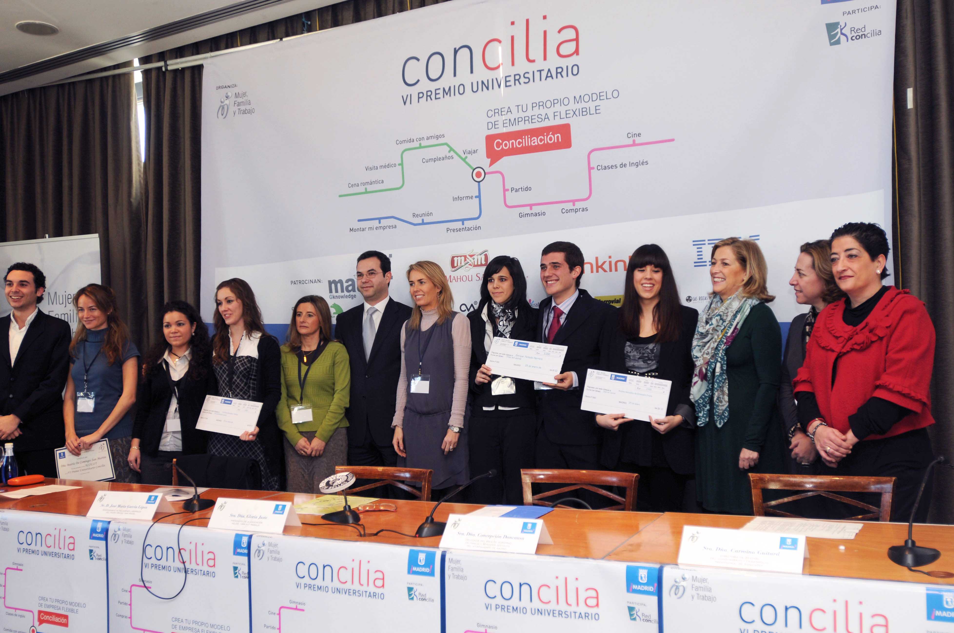Concienciar y sensibilizar a los jóvenes de la importancia de promover políticas que faciliten la conciliación de la vida personal y profesional en la empresa es el objetivo de los Premios Concilia, que ha entregado esta mañana la delegada de Familia y Servicios Sociales, Concepción Dancausa. Organizados por el Ayuntamiento y la Asociación Mujer Familia y Trabajo, estos Premios cuentan con la colaboración de la Red Concilia, un conjunto de empresas que destaca por su compromiso con la conciliación.