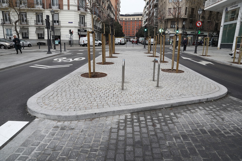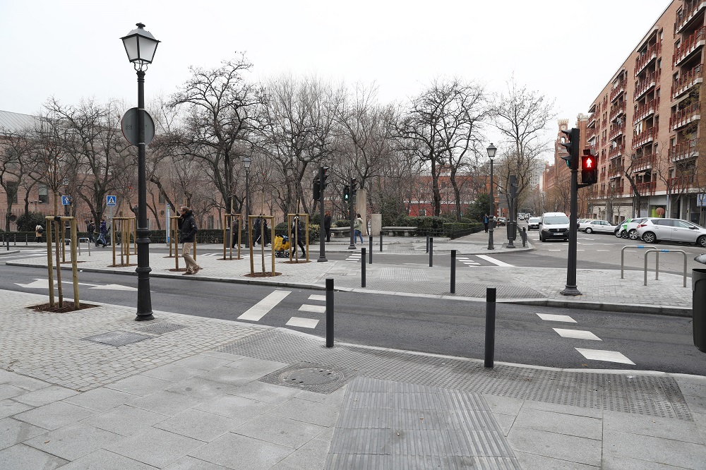 El proyecto ha prestado además especial atención a las intersecciones, como la de la plaza del Conde de Toreno o la del cruce de las calles Amaniel y Conde Duque, en las que se han ampliado los espacios peatonales y se han situado pasos de cebra en lugares por donde cruzaban los peatones indebidamente para acortar distancias.
