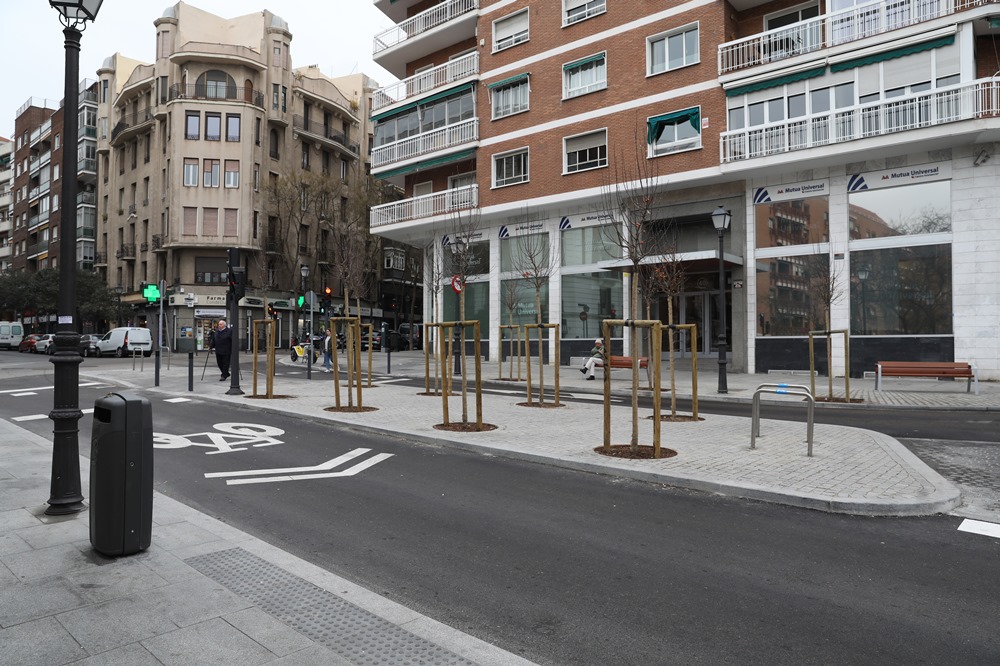 En este sentido, se han construido aceras más anchas y con una mayor superficie arbolada. También se han reordenado las bandas de aparcamiento y las zonas de carga y descarga y se ha reducido el ancho de los carriles de circulación de vehículos a anchos estrictos que no comprometen la viabilidad de su funcionamiento.