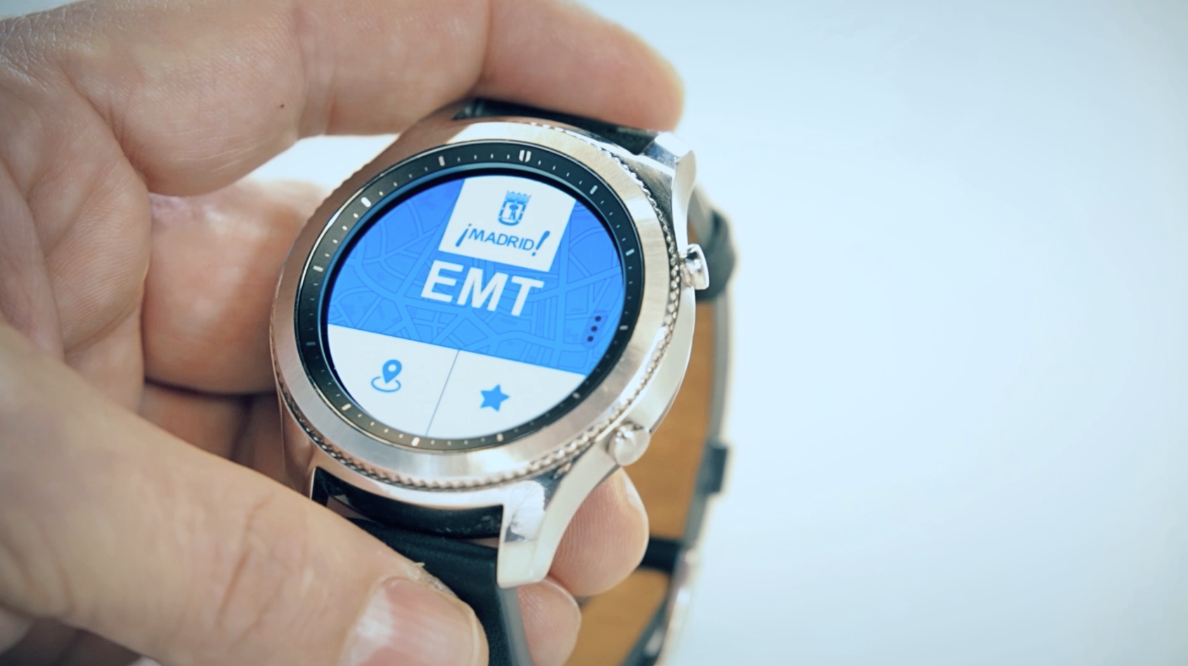 La Empresa Municipal de Transportes (EMT) de Madrid y la compañía Samsung lanzan, a partir de hoy miércoles, 8 de marzo, la nueva aplicación de EMT Madrid para los relojes inteligentes Samsung Gear S3 y Samsung Gear S2. Con un simple vistazo al smartwatch, el usuario de los autobuses urbanos de la capital puede saber cuánto tiempo falta para que llegue el próximo autobús, las paradas más cercanas a su posición y qué líneas pasan por ellas. Además, una vez a bordo del autobús, puede indicar su parada de destino y la app le avisará cuando el autobús se acerque a la parada.