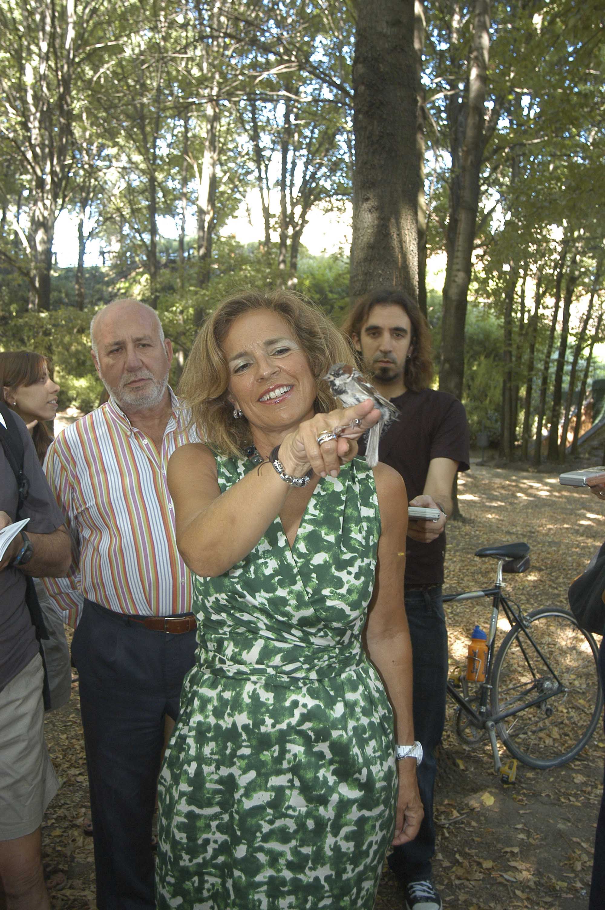 La teniente de alcalde y delegada de Medio Ambiente, Ana Botella, en una jornada de anillamiento científico, incluida en la Escuela de Verano, que se ha celebrado en el Centro de Información Ambiental de la Casa de Campo.
