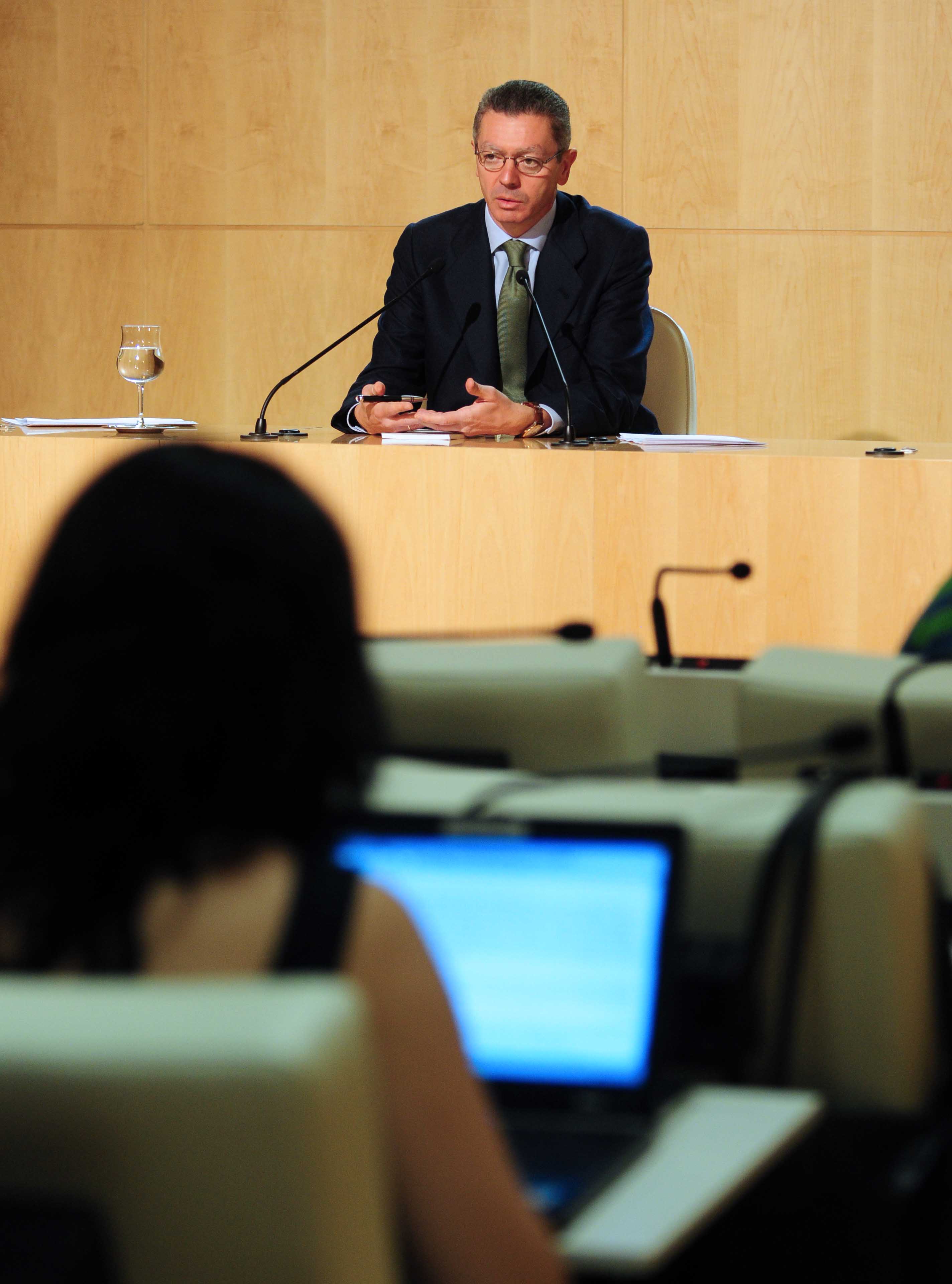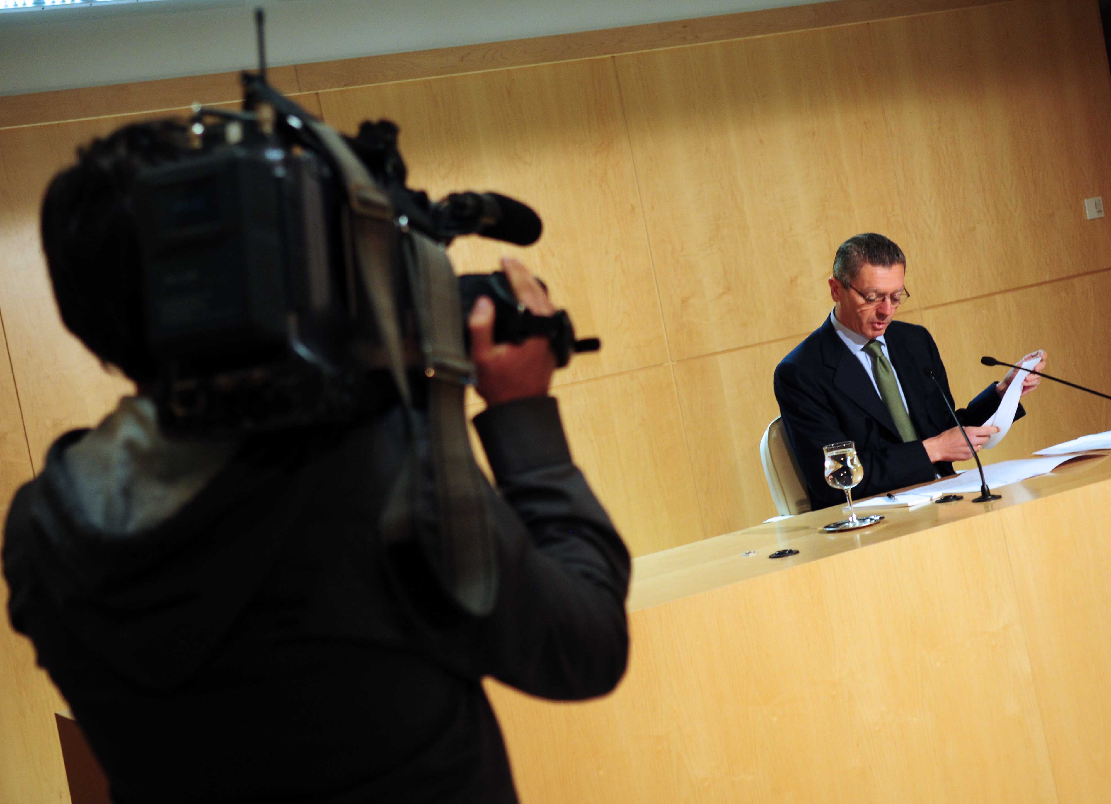 El alcalde, Alberto Ruiz-Gallardón, en distintos momentos de la rueda de prensa en la que ha informado de los acuerdos adoptados por la Junta de Gobierno, entre los que figuran la autorización del contrato para desarrollar un programa de lucha contra el absentismo escolar, y foto de archivo de niños de camino al colegio.