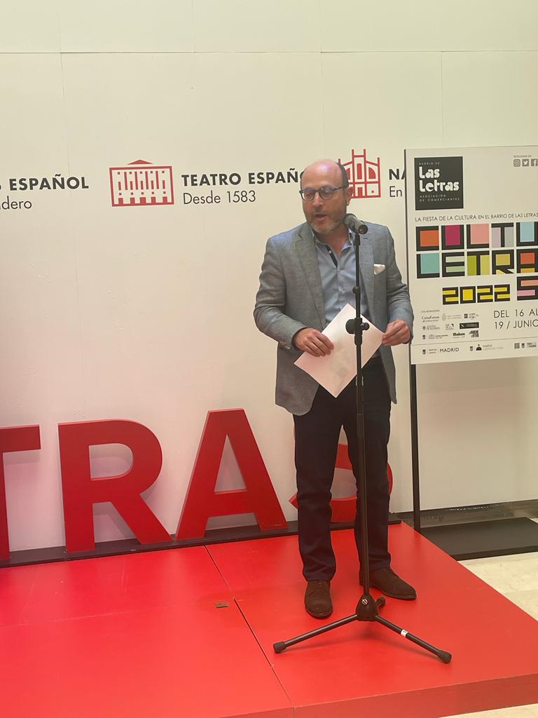 La fiesta cultural del barrio de Las Letras ‘Cultuletras’ se desarrollará entre los días 16 y 19 de junio. Hoy, el concejal del distrito de Centro, José Fernández, ha presentado la programación en el Teatro Español junto con la directora general de Comercio del Ayuntamiento, Concha Díaz de Villegas; el vicepresidente de la Asociación de Comerciantes Barrio de las Letras, Enrique Garzo, y la representante de la asociación Soy de la Cuesta, Lara Sánchez.