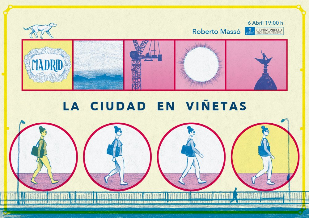 El jueves 6 de abril, a las 19:00 horas, CentroCentro inaugura en “La ciudad en viñetas” un nuevo cómic mural inédito sobre la vida urbana, realizado en esta ocasión por Roberto Massó. El autor cacereño presenta en el gran panel de la planta 4ª una visión múltiple de un día en Madrid, desde el subsuelo al cielo pasando por el asfalto, poniendo de relieve detalles y acciones, algunas imperceptibles, y otras que siempre están ahí, pero pasan desapercibidas. Edificios, tráfico, gente, rótulos… todo se conecta en su particular visión de la ciudad.