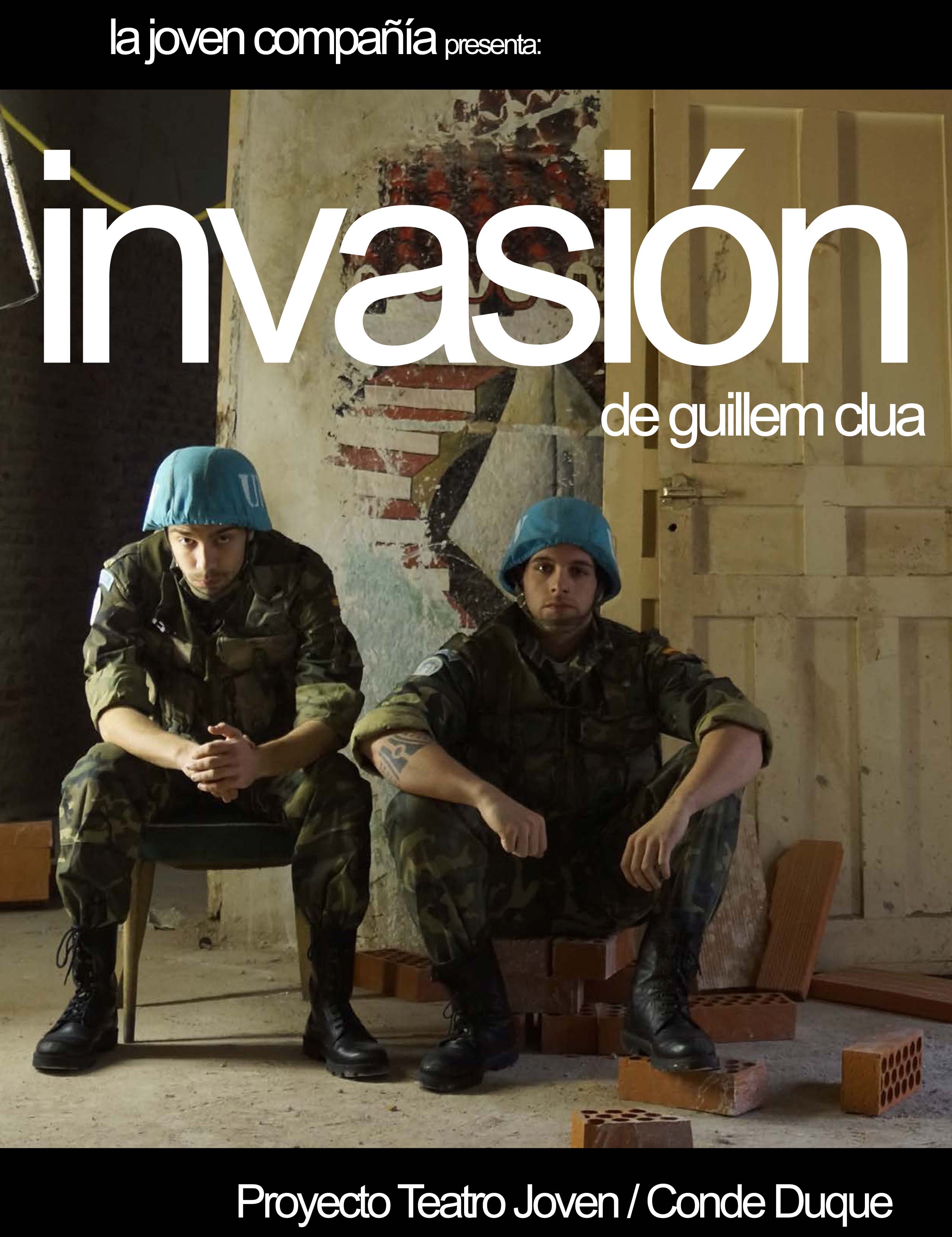 "Invasión es una obra de amor juvenil en tres escenarios bélicos de épocas distintas de la historia. Es la segunda puesta en escena de La Joven Compañía dentro del Proyecto Teatro Joven, que con Fuenteovejuna logró llevar al teatro a casi 4.000 jóvenes. Tras una gira por el Gran Teatro de Elche y el Teatre Lliure de Barcelona, "Invasión" regresa a Conde Duque, donde más de 3.000 alumnos de Secundaria y Bachillerato volverán a llenar el patio de butacas.