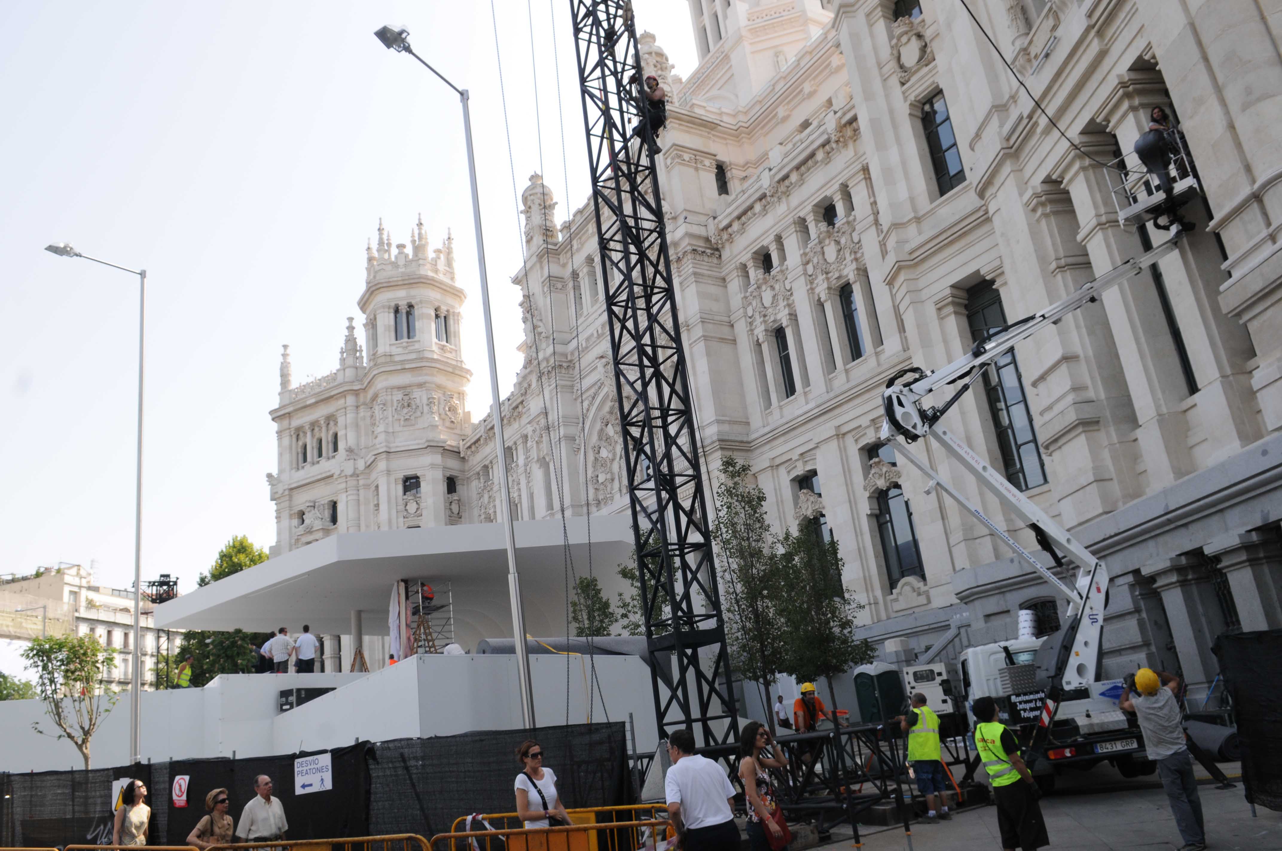 Para la instalación de grúas y montaje del escenario hasta las 18.00 horas del día 23 está ocupada la calzada en la confluencia de la calle de Alcalá con la plaza de Cibeles (junto al Ayuntamiento) sentido plaza de la Independencia. Permanecen dos carriles abiertos hasta el 23 de agosto.