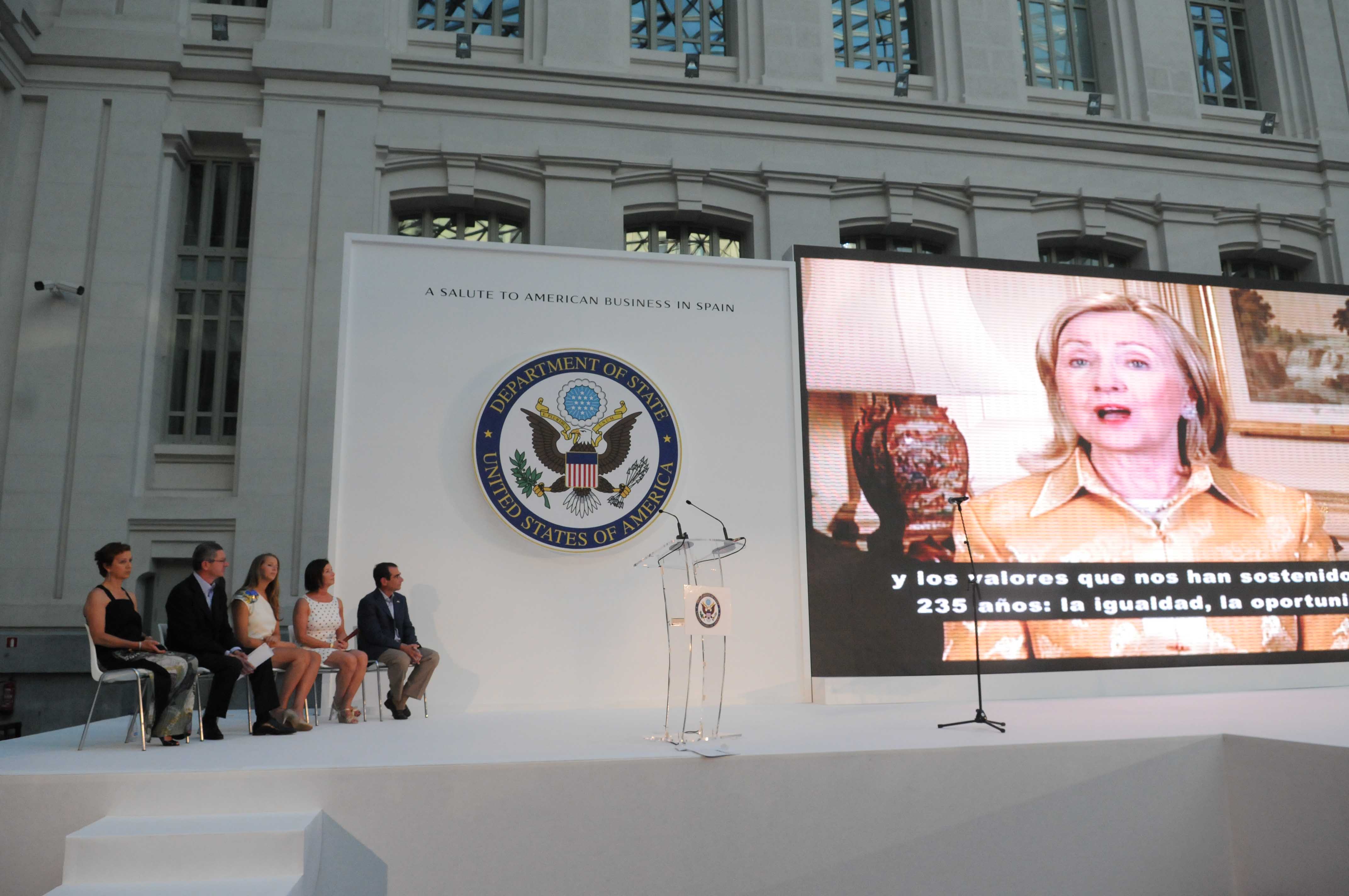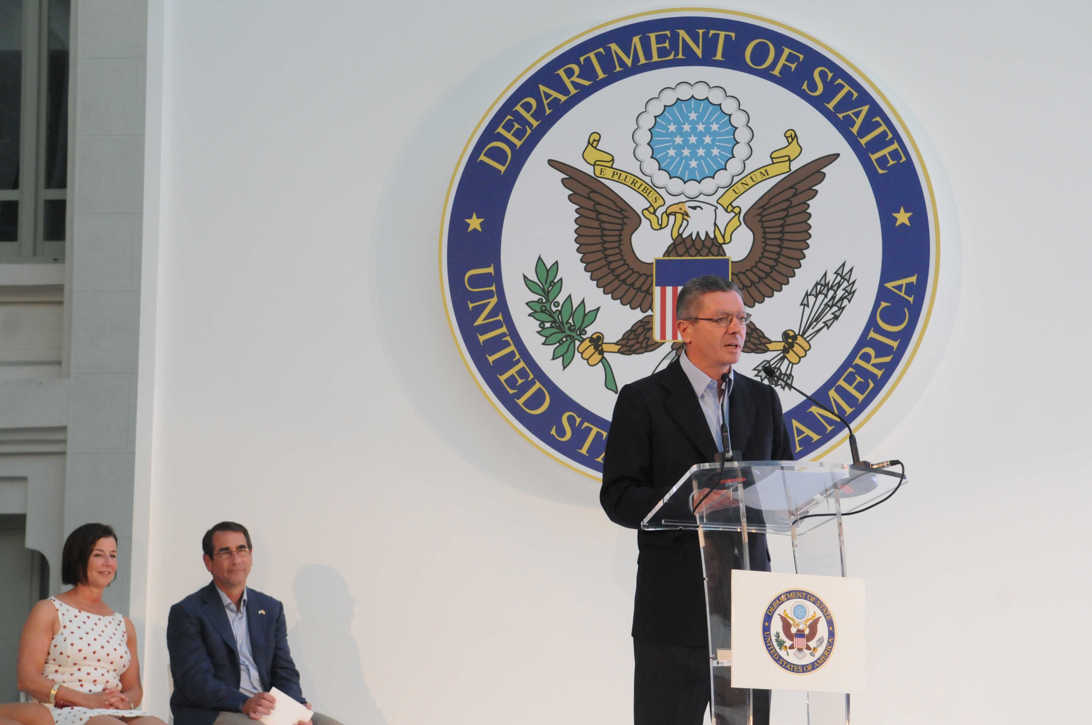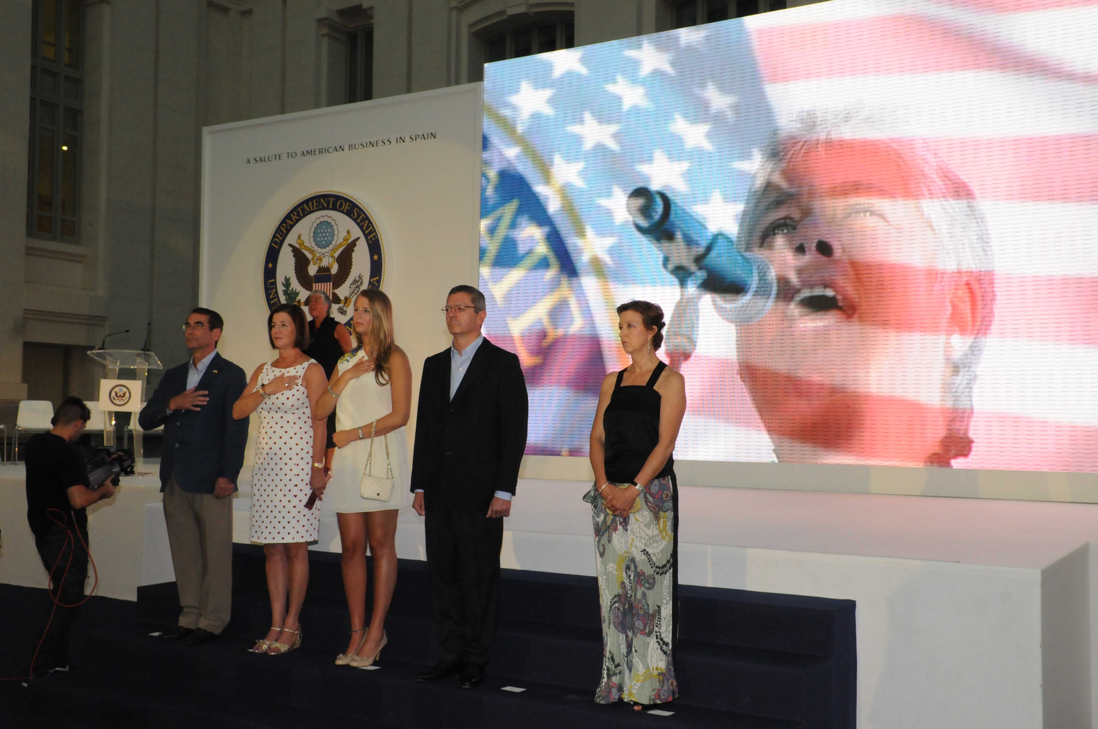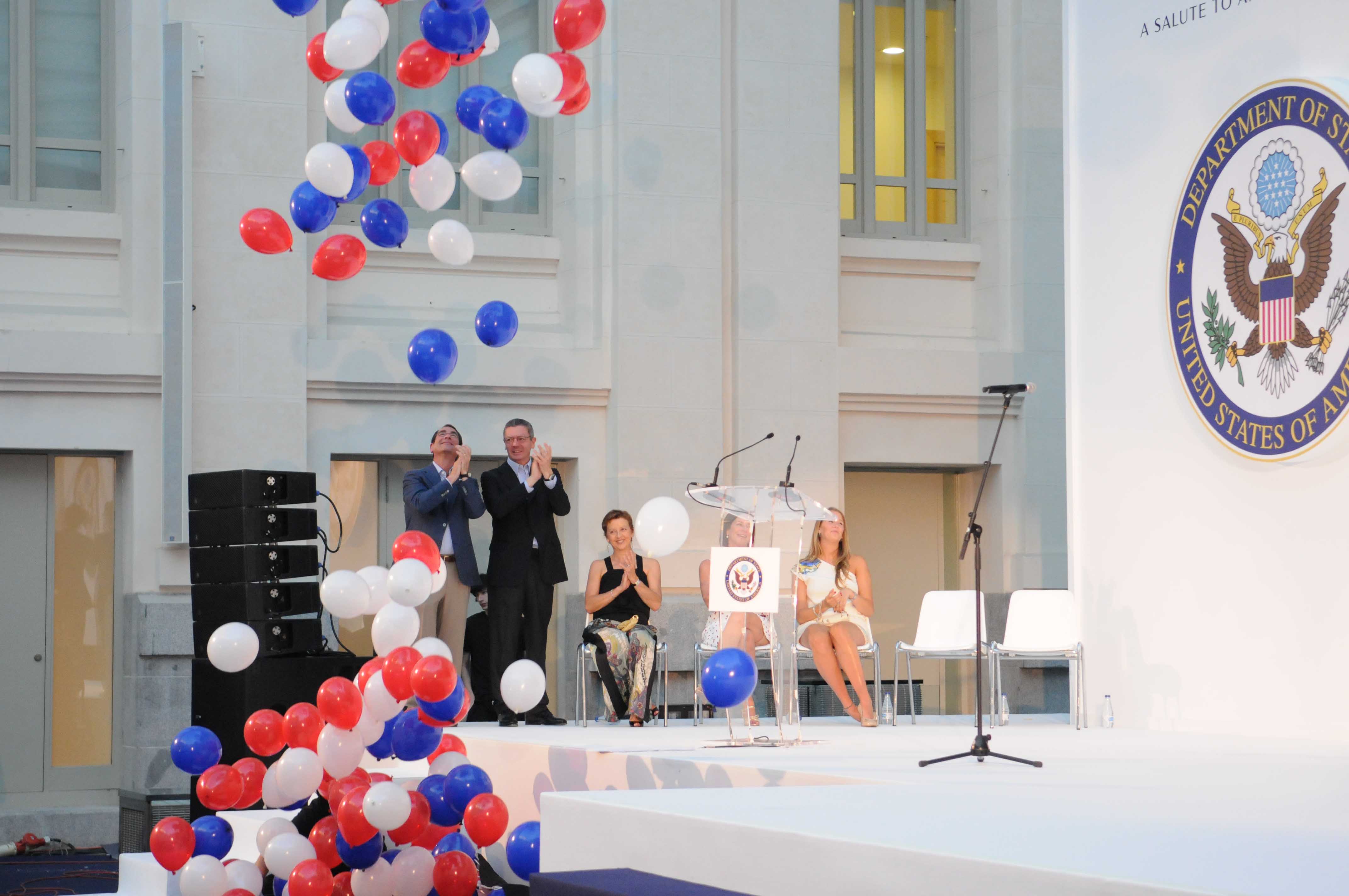 El palacio de Cibeles se ha llenado hoy de banderas con las barras y las estrellas para dar la bienvenida al embajador Alan D. Solomont y a miembros de la colonia norteamericana que han querido celebrar aquí su fiesta nacional, el 4 de julio. Alberto Ruiz-Gallardón, alcalde de la ciudad, les ha dado la bienvenida en nombre “de la capital del país europeo que, junto a Francia, les ayudó más activamente a conquistar su independencia” hace 235 años. La capacidad de construir integrando –razas, lenguas, culturas– y su confianza en el individuo para afrontar nuevos retos, son dos de las características del pueblo americano que más elogió el alcalde. Consecuencia de ello es el “extraordinario desarrollo socioeconómico de EE.UU del que nuestra ciudad también participa y se beneficia”. Como ejemplo citó el hecho de que las empresas españolas con sede en Madrid están detrás del 18,2% de la inversión directa de España en EE.UU, y Madrid recibe el 42,3% de la inversión que ese país hace en España. “Pero tan importantes como los 2.951 millones de euros que EE.UU ha invertido en Madrid desde 2006 son los lazos que esta ciudad establece con el más de medio millón de viajeros de esa nacionalidad a los que cada año acoge y que se han convertido en el 27% del total que nos visita, haciendo de EE.UU el primer país emisor de turismo hacia Madrid”.