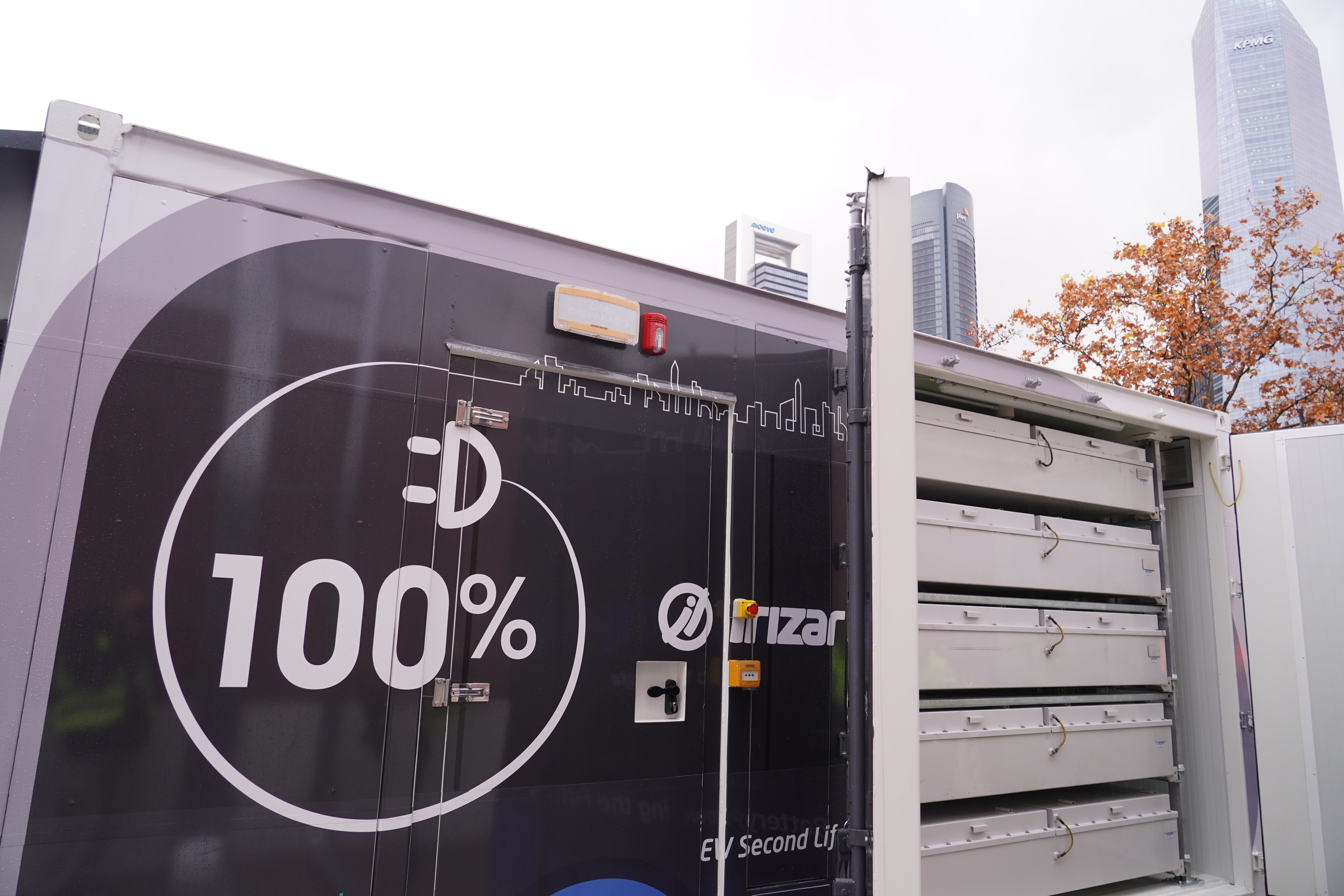 EMT Madrid apuesta por el uso de baterías en segunda vida como respaldo para la recarga de sus autobuses, con el objetivo de que estas puedan ser utilizadas, como elemento integrado en su sistema de smartcharging. De esta forma, se optimiza el proceso de recarga y se reducen los costes asociados al mismo. El contenedor, que se recarga en los periodos de precios optimizados para reducir el coste energético y aumentar el uso de energía verde, cuenta con una potencia máxima de almacenamiento de 1MWh y de 500 kW de carga y descarga y se compone de tres racks de baterías, retiradas de tres vehículos de la flota de EMT Madrid. Además, el contenedor puede ser gestionado a través del sistema de smartcharging de EMT Madrid, operativo para la recarga diaria de la flota de autobuses eléctricos en el Centro de Operaciones de Fuencarral.