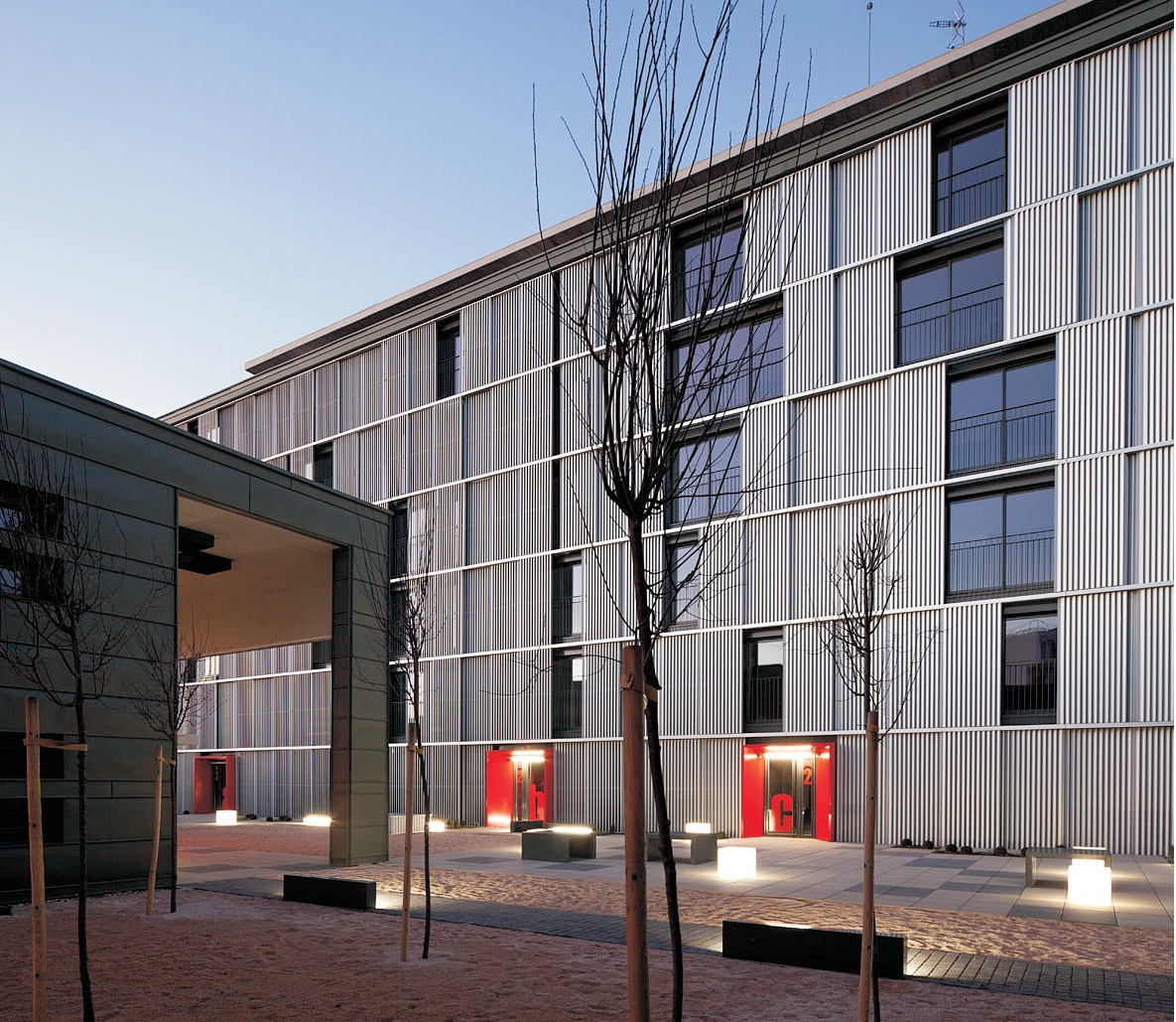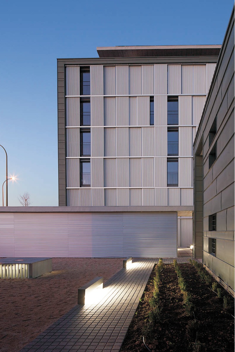 Además, en las orientaciones norte, este y oeste, se ha dotado a los edificios de un sistema de doble piel, con cerramiento de zinc, que permite un elevado aislamiento térmico, acústico y evita filtraciones de agua.