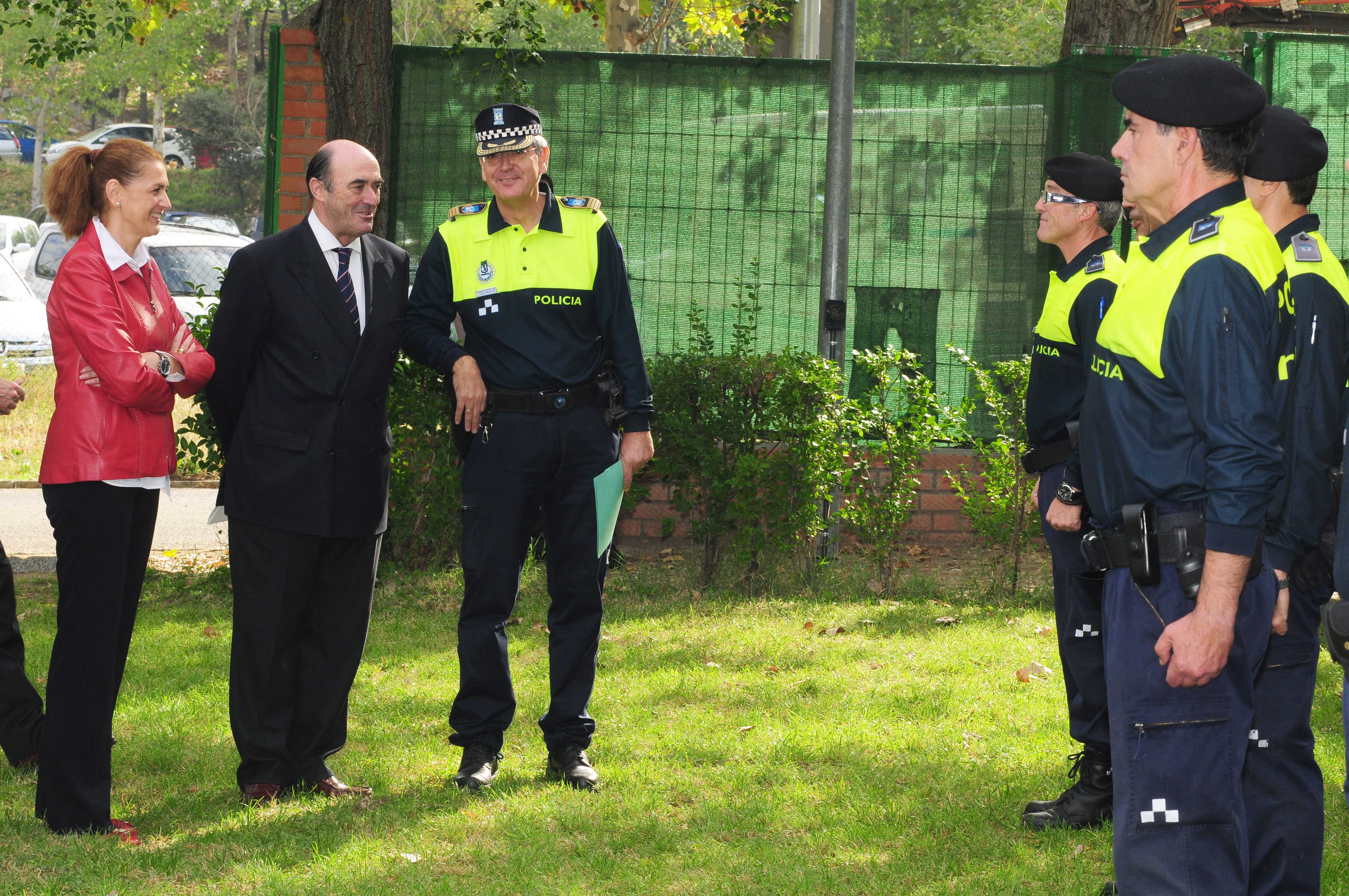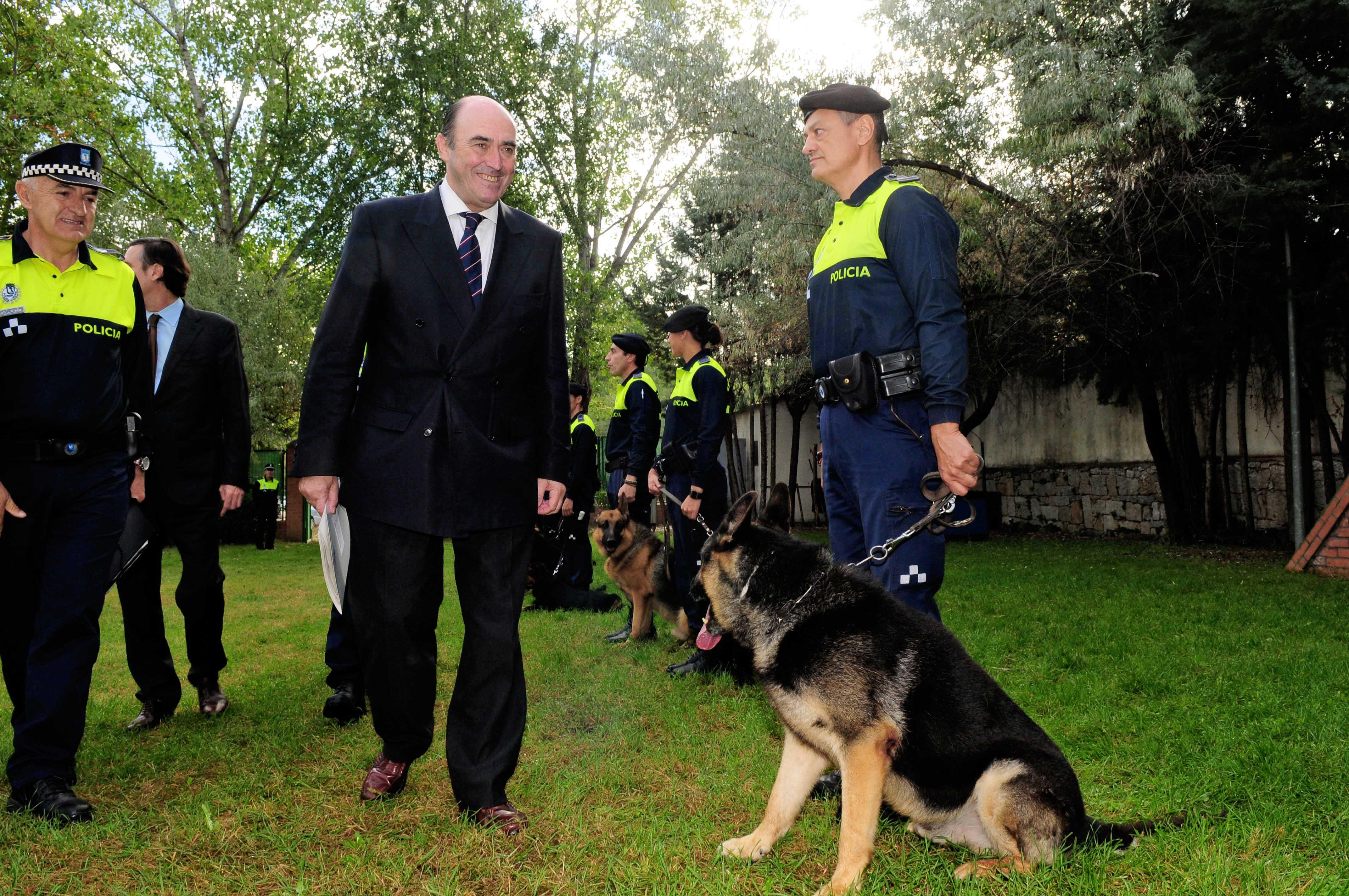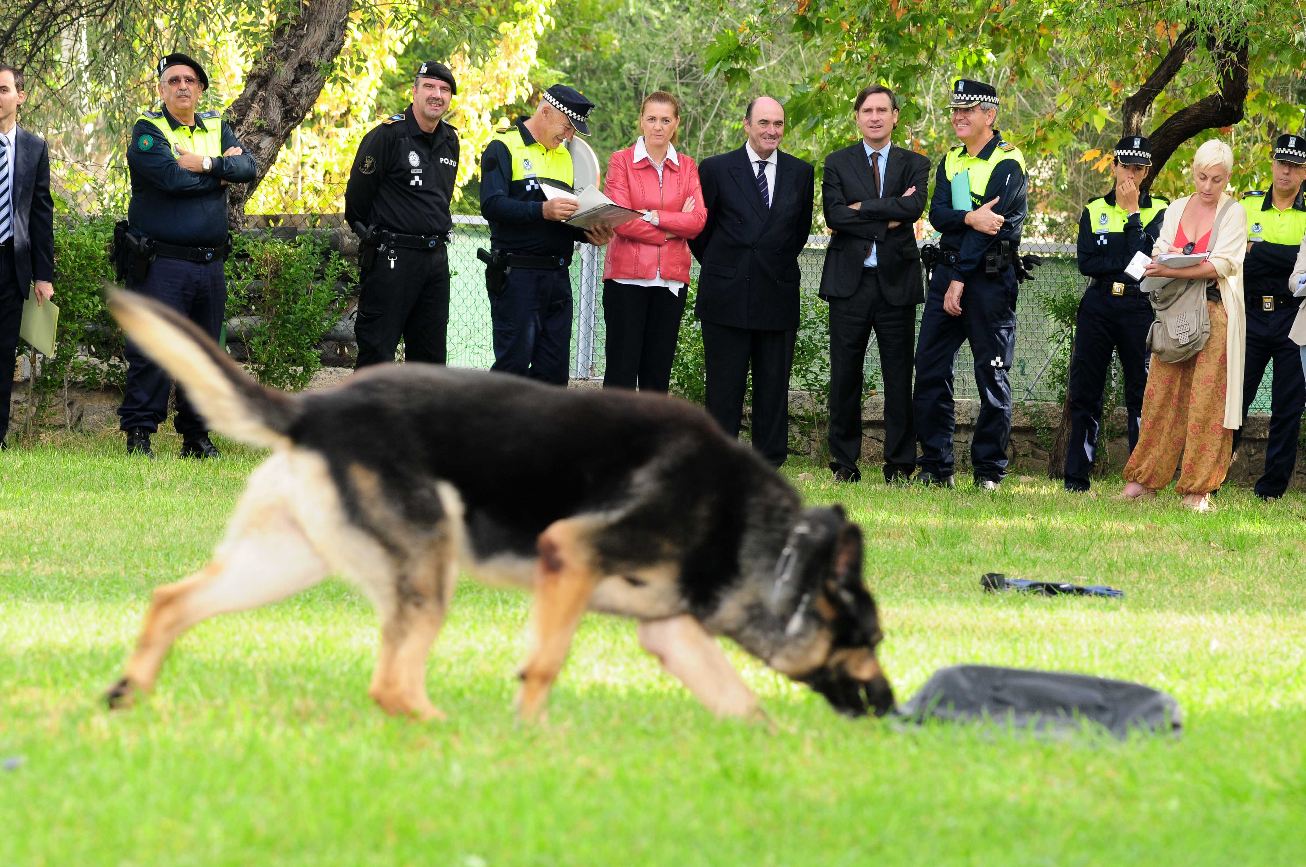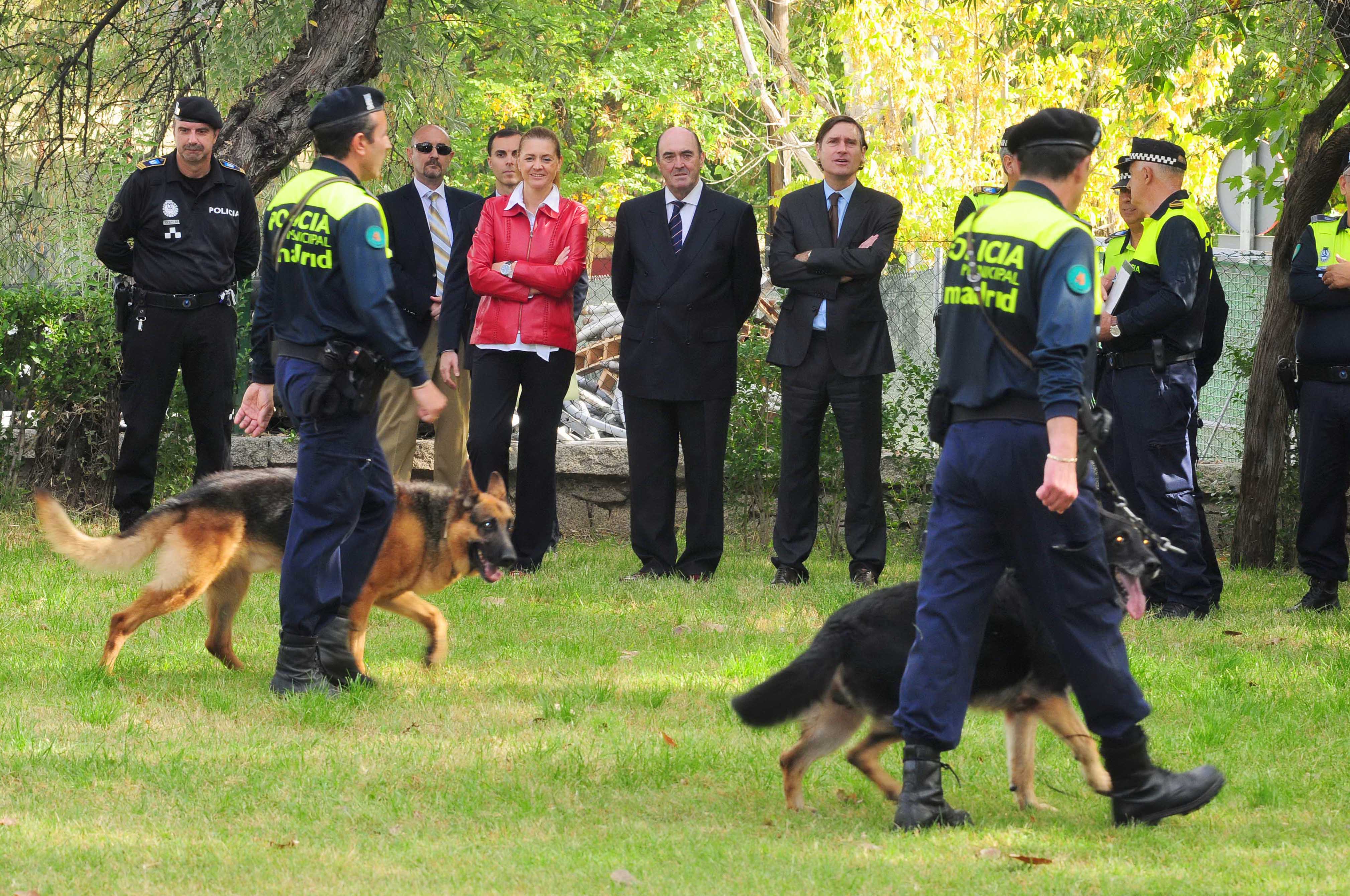 El delegado de Medio Ambiente y Seguridad, Antonio de Guindos, asistió a una exhibición sobre la detección de drogas y exploxivos de la Unidad Canina de la Policía Municipal. La unidad, operativa las 24 horas, cuenta con 38 policías especializados en el adiestramiento y guía de 25 perros de distintas razas.