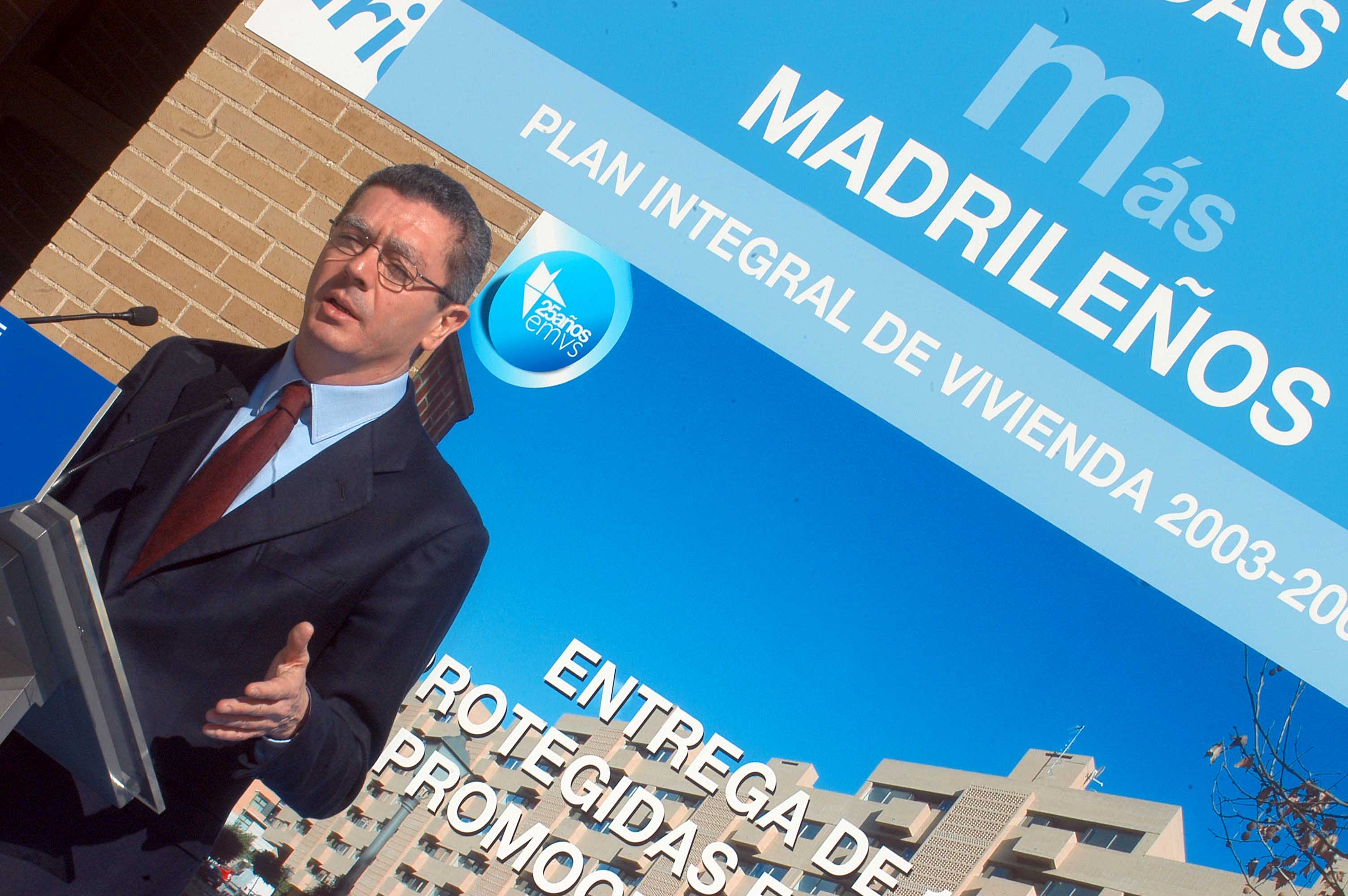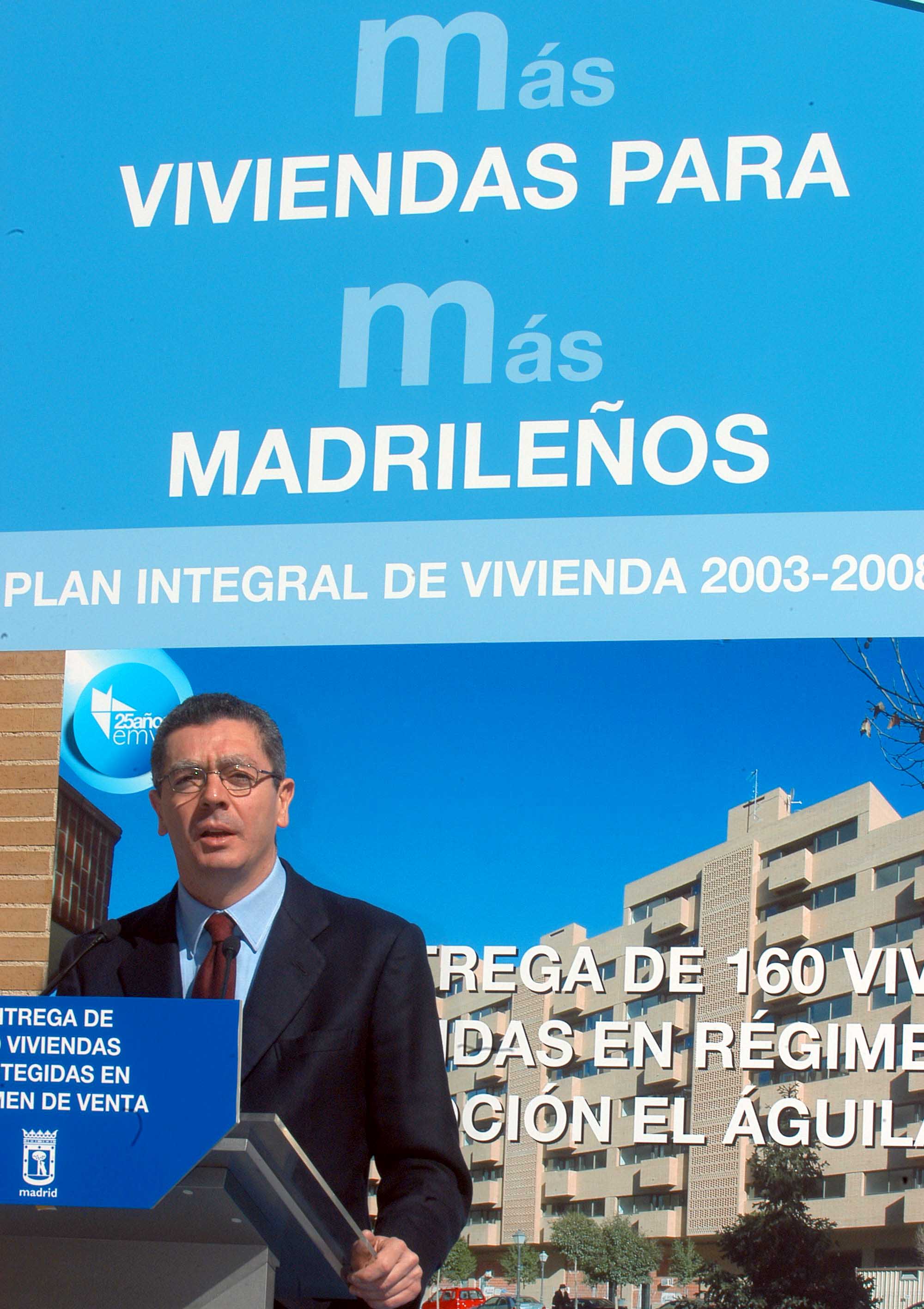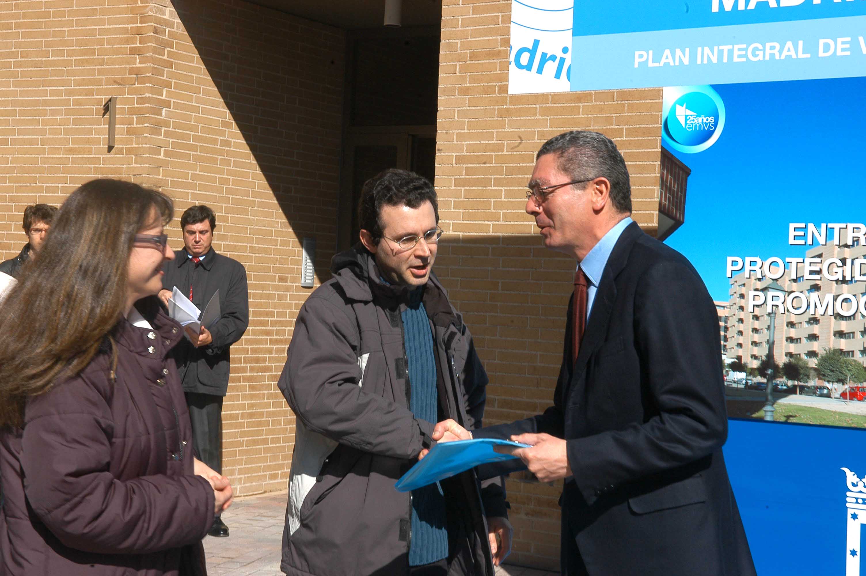 El alcalde Alberto Ruiz-Gallardón ha entregado hoy las llaves de las viviendas Aguila-Alcatel, en el distrito de Arganzuela.