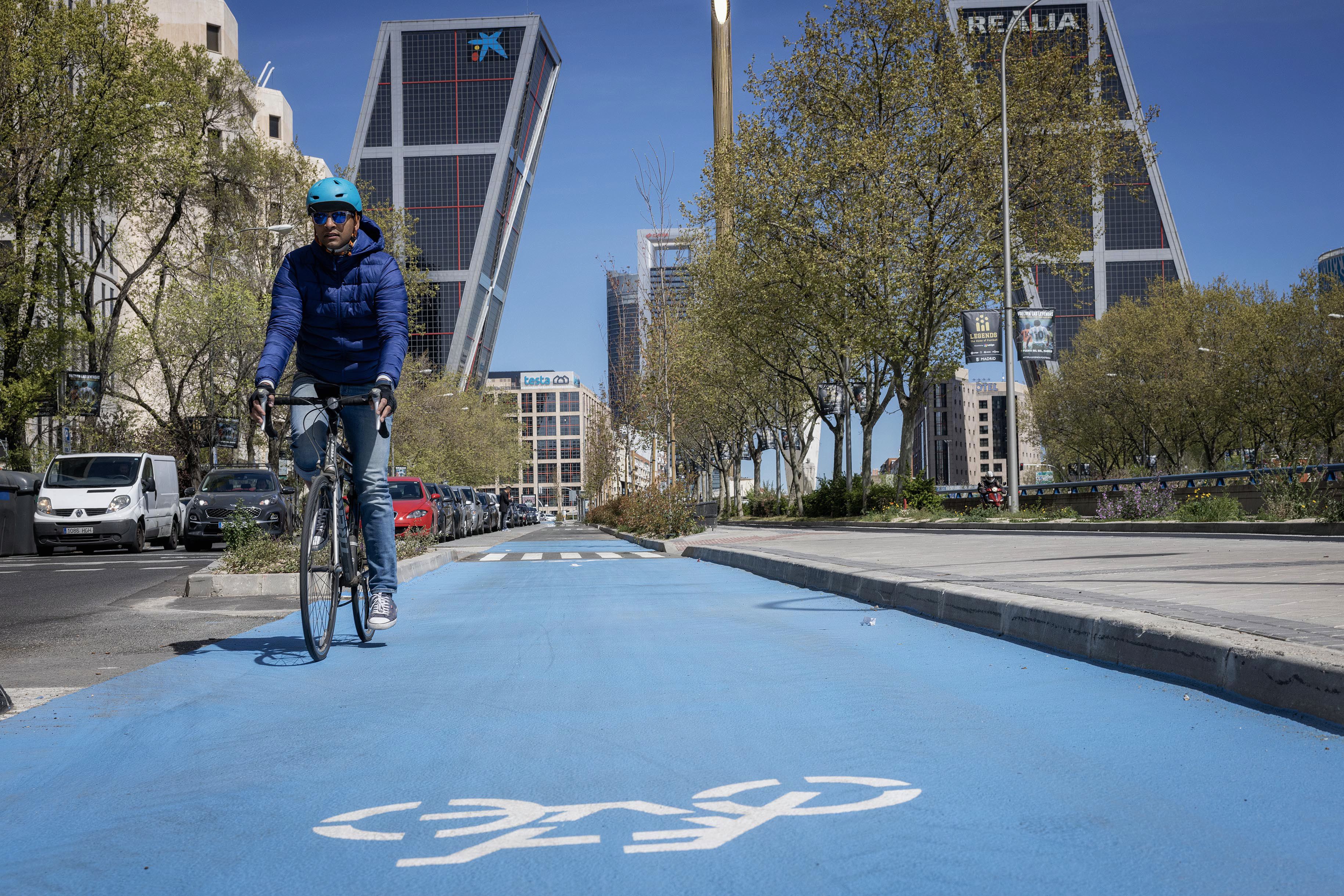 El Ayuntamiento abre el tramo más largo del nuevo carril bici del paseo de la Castellana