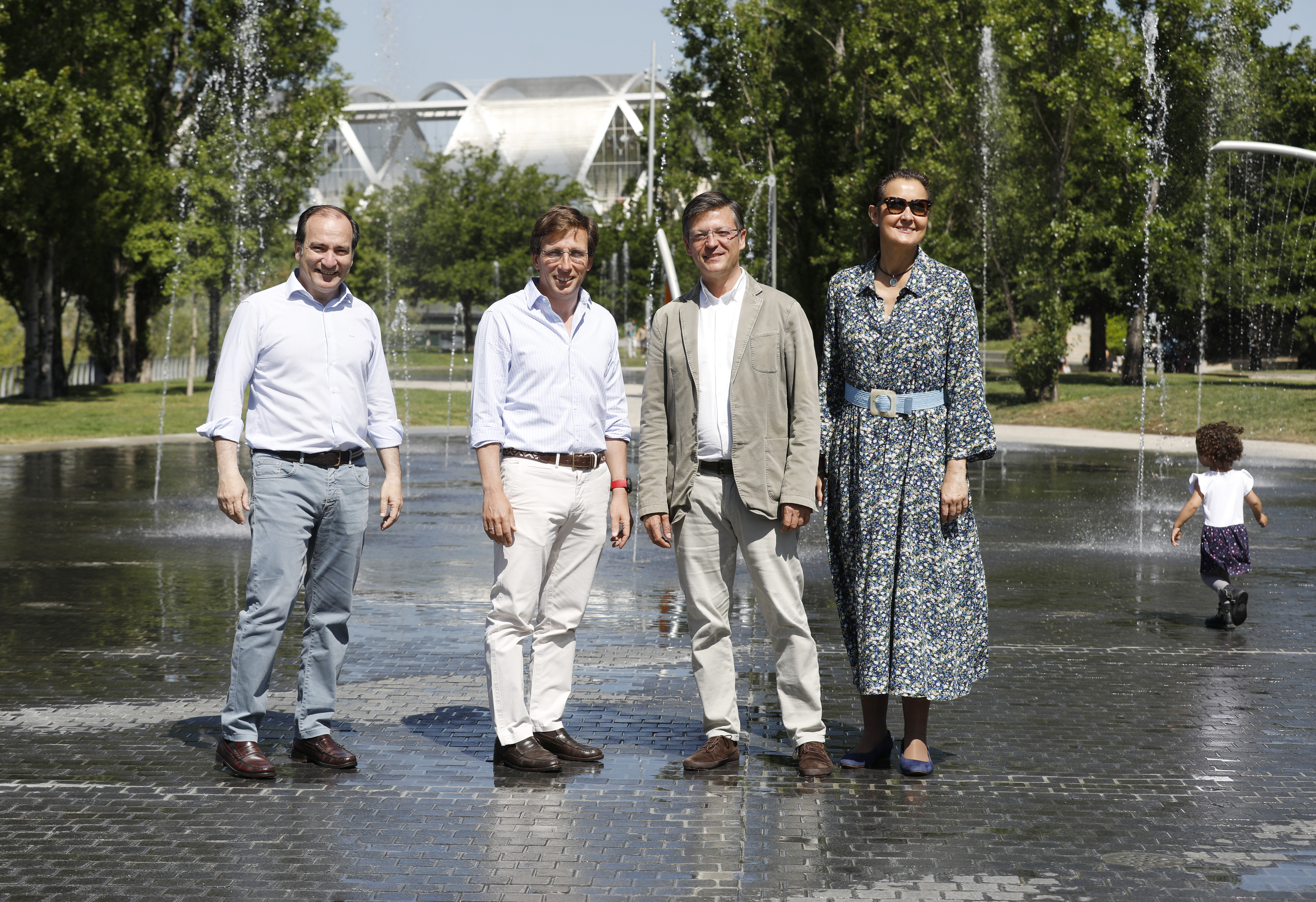 “Hay pocas cosas más agradables en la capital que poder venir a Madrid Río a disfrutar de estas tres zonas estanciales”, además de poder darse un “remojón cuando el calor empieza a apretar”, ha señalado Almeida durante la visita en la que ha estado acompañado por el delegado de Urbanismo, Medio Ambiente y Movilidad, Borja Carabante; el concejal delegado de Limpieza y Zonas Verdes, José Antonio Martínez Páramo, y la concejala de Arganzuela, Lola Navarro.