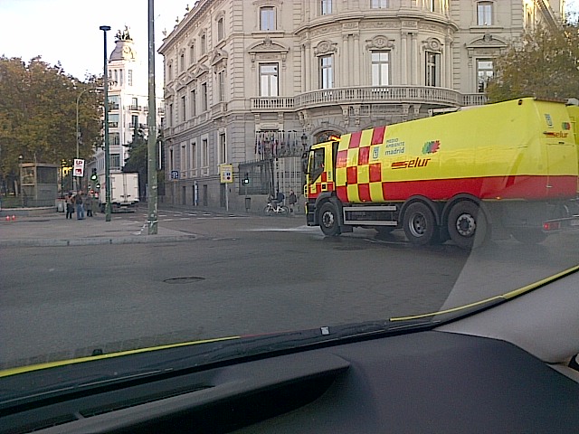 Equipos del Servicio de Limpieza Urgente (SELUR) comenzaron ayer (jueves, 3 de diciembre) a regar con seis grandes baldeadoras los principales ejes de la ciudad como la glorieta del Emperador Carlos V, los paseos del Prado, Recoletos y Castellana hasta la plaza de Castilla; las calles de Serrano, Velázquez, Goya y Alcalá (Puerta del Sol-puente de Ventas); bulevares (Marqués de Urquijo-Alberto Aguilera-Sagasta-Génova) y rondas (Reina Victoria-Raimundo Fernández Villaverde-Joaquín Costa-Francisco Silvela-Doctor Esquerdo y rondas sur). El servicio continua hoy (4 de diciembre) baldeando las vías principales del centro de la ciudad.
