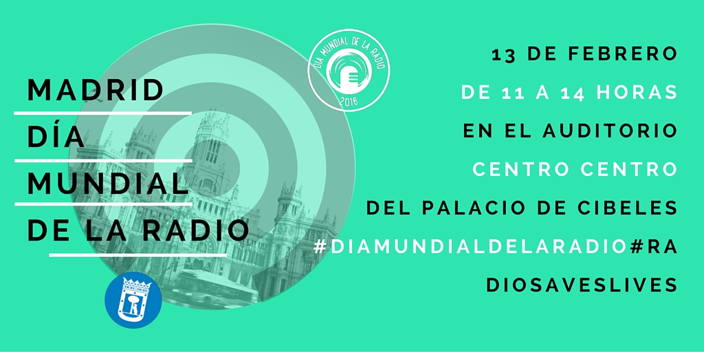 El Ayuntamiento de Madrid participará mañana sábado, 13 de febrero, en los actos del Día Mundial de la Radio que tendrán lugar en el auditorio del Palacio de Cibeles (Centro Cultural CentroCentro) donde se emitirá un programa especial de radio de 11 a 14 horas. A lo largo de las tres horas de emisión, participarán la alcaldesa Manuela Carmena, el presidente de la Academia Española de la Radio, Luis del Olmo, y el exdirector general de la UNESCO, Federico Mayor Zaragoza, además de representantes de los grupos políticos municipales, profesionales de la radio y músicos que actuarán en directo.