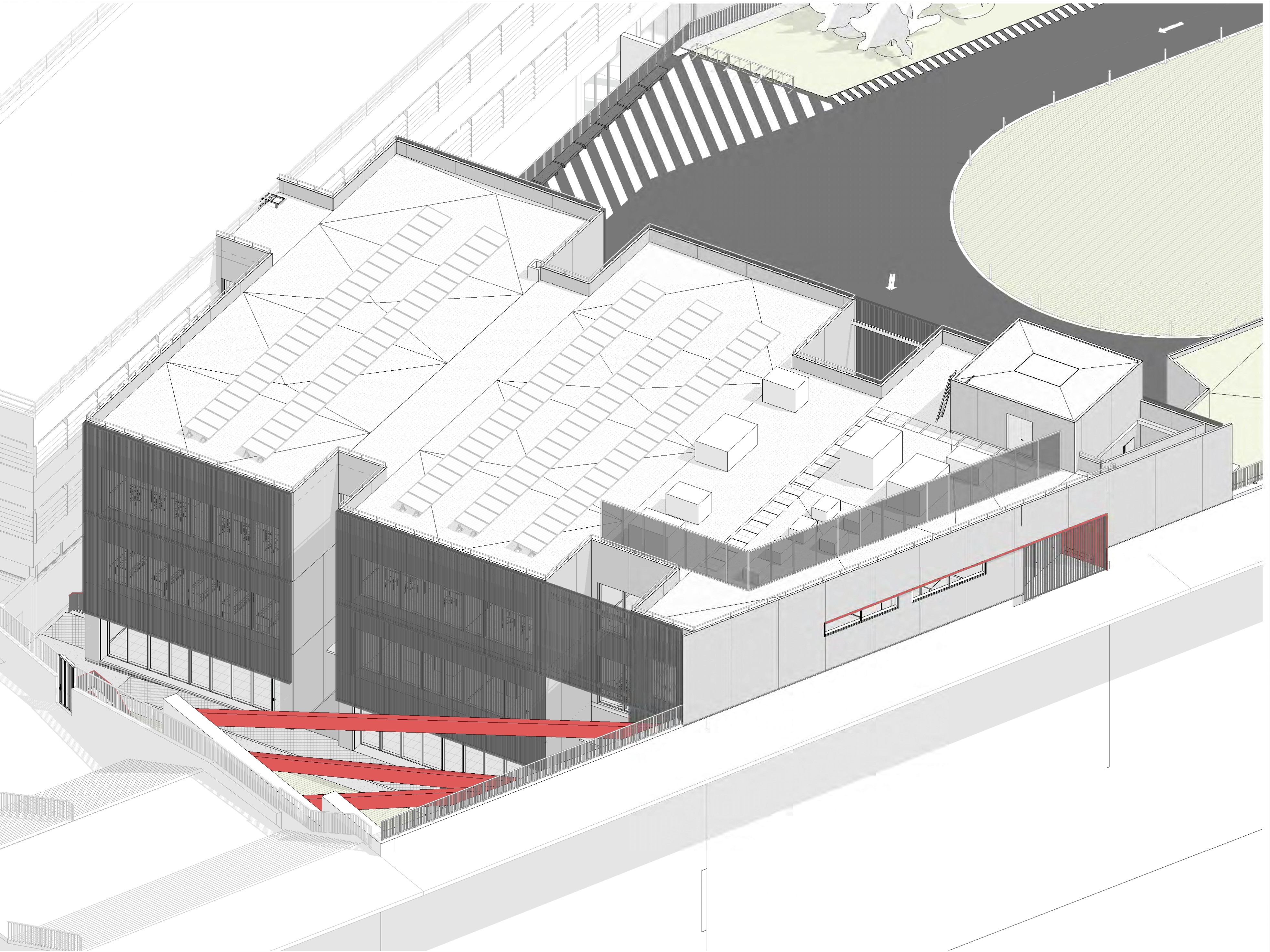 La nueva edificación, que sumará una superficie de 9.720 m2, se integrará con el actual edificio principal y estará comunicada en todas sus plantas, incluido el sótano, destinado a aparcamiento. En este nivel bajo rasante se prevén 60 plazas para coches y 62 para motos, así como espacio para cursos de movilidad, cuartos de instalaciones y aseos.