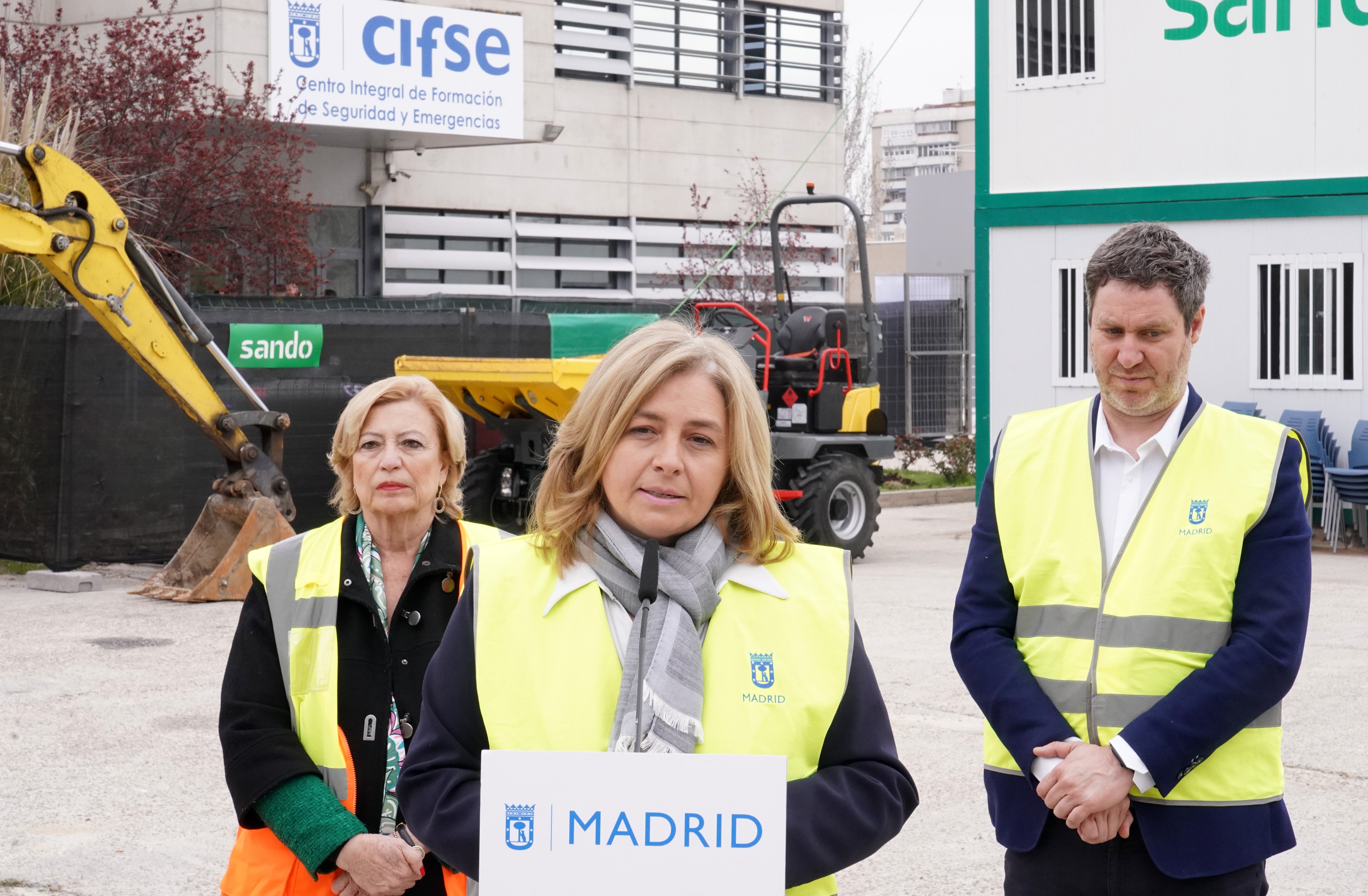 La vicealcaldesa y delegada de Seguridad y Emergencias, Inma Sanz, acompañada de la delegada de Obras y Equipamientos, Paloma García Romero, y el concejal de Latina, Alberto González, ha visitado esta mañana el inicio de los trabajos de construcción del nuevo aulario del Centro de Formación de Seguridad y Emergencias (CIFSE), que cuenta con una inversión de 13,5 millones de euros y cuya finalización está prevista para principios de 2027.