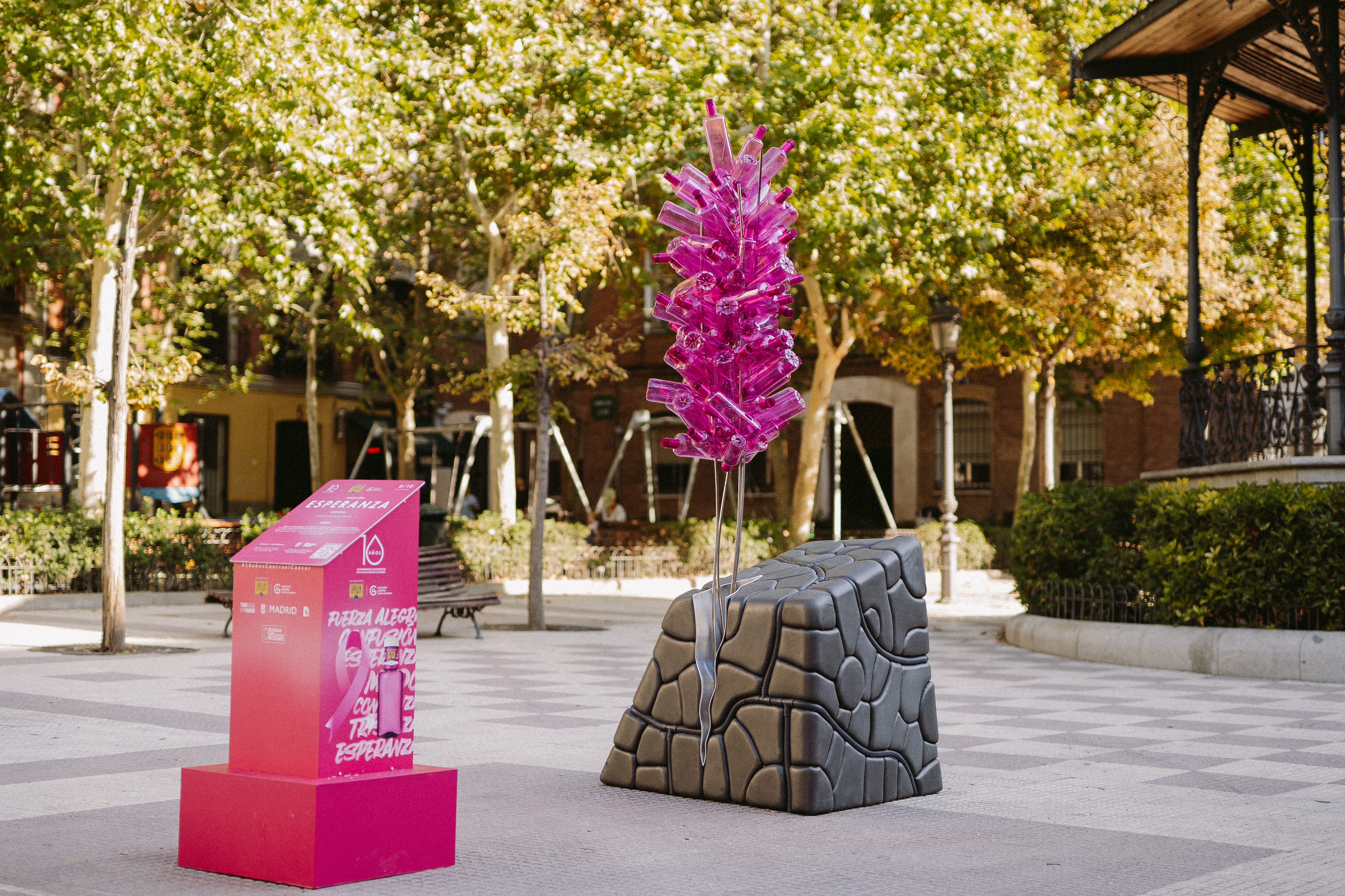 Coincidiendo con el mes de la lucha contra el cáncer de mama, el Ayuntamiento de Madrid se une a la visibilización de la lucha contra la enfermedad colaborando con la campaña que realiza anualmente la Asociación Española Contra el Cáncer (AECC) con Solán de Cabras y que este año llenará las calles del centro de la capital de instalaciones artísticas de las que podrán disfrutar los viandantes desde hoy y hasta el domingo 15 de octubre. La colaboración municipal se lleva a cabo a través del programa ‘Todo Está en Madrid’, una iniciativa del Área de Economía, Innovación y Hacienda, cofinanciada con fondos europeos Next Generation EU y destinada al fortalecimiento de la actividad comercial en los barrios.