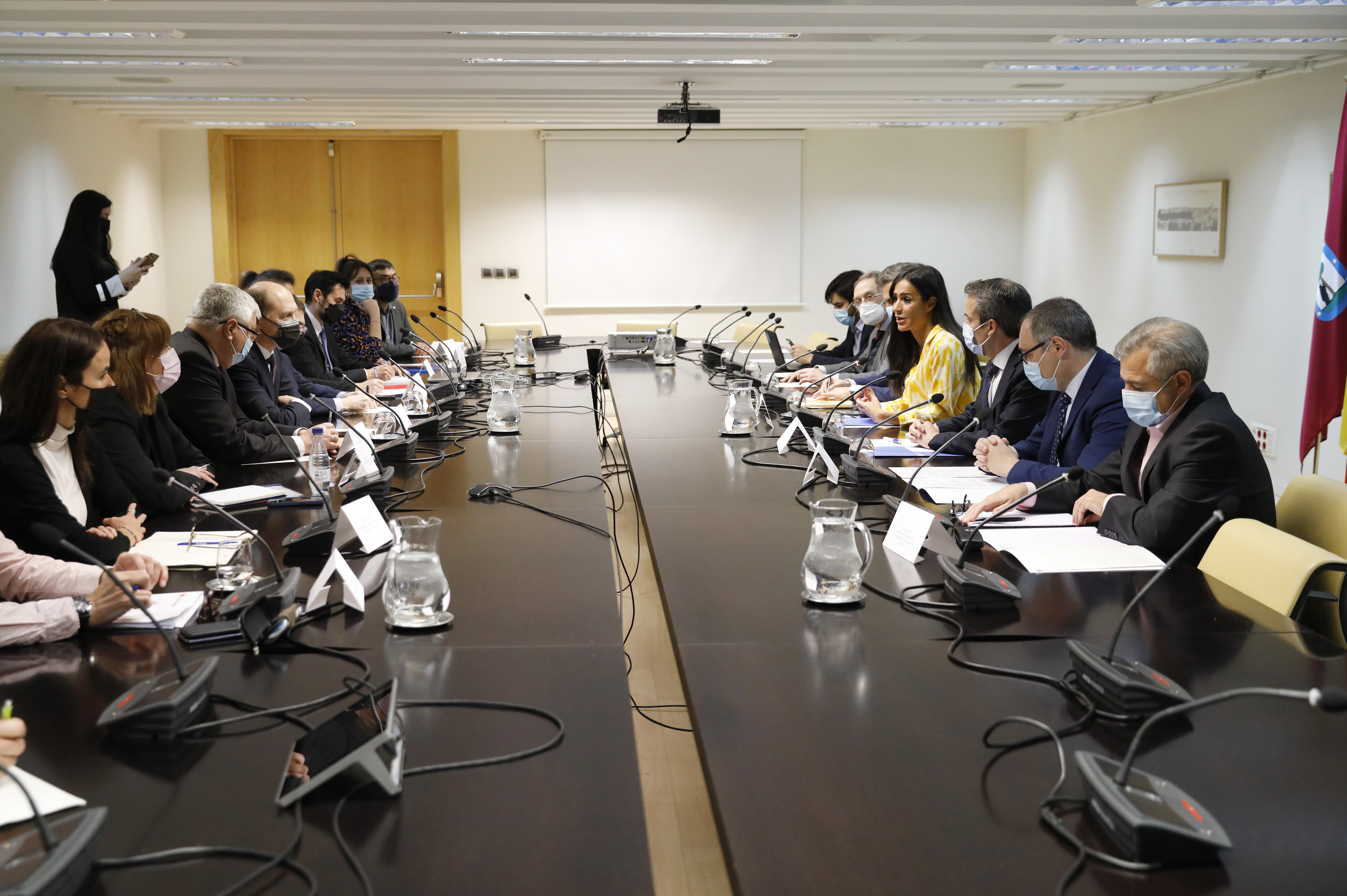 Encabezada por la vicealcaldesa junto al delegado de Familias, Igualdad y Bienestar Social, Pepe Aniorte, y el concejal delegado de Internacionalización y Cooperación, Santiago Saura, en la reunión de hoy han estado presentes los embajadores de Moldavía, Eugeniu Revenco, y de Eslovaquia, Jaroslav Blasko, y los encargados de Negocios de las embajadas de la República de Polonia, Karina Węgrzynowska, y de Rumanía, Florin Vlad, así como representantes de Cruz Roja, el Comité Español de UNICEF y ACNUR, entidades sociales con las que el Ayuntamiento colabora habitualmente en materia humanitaria y cooperación internacional.