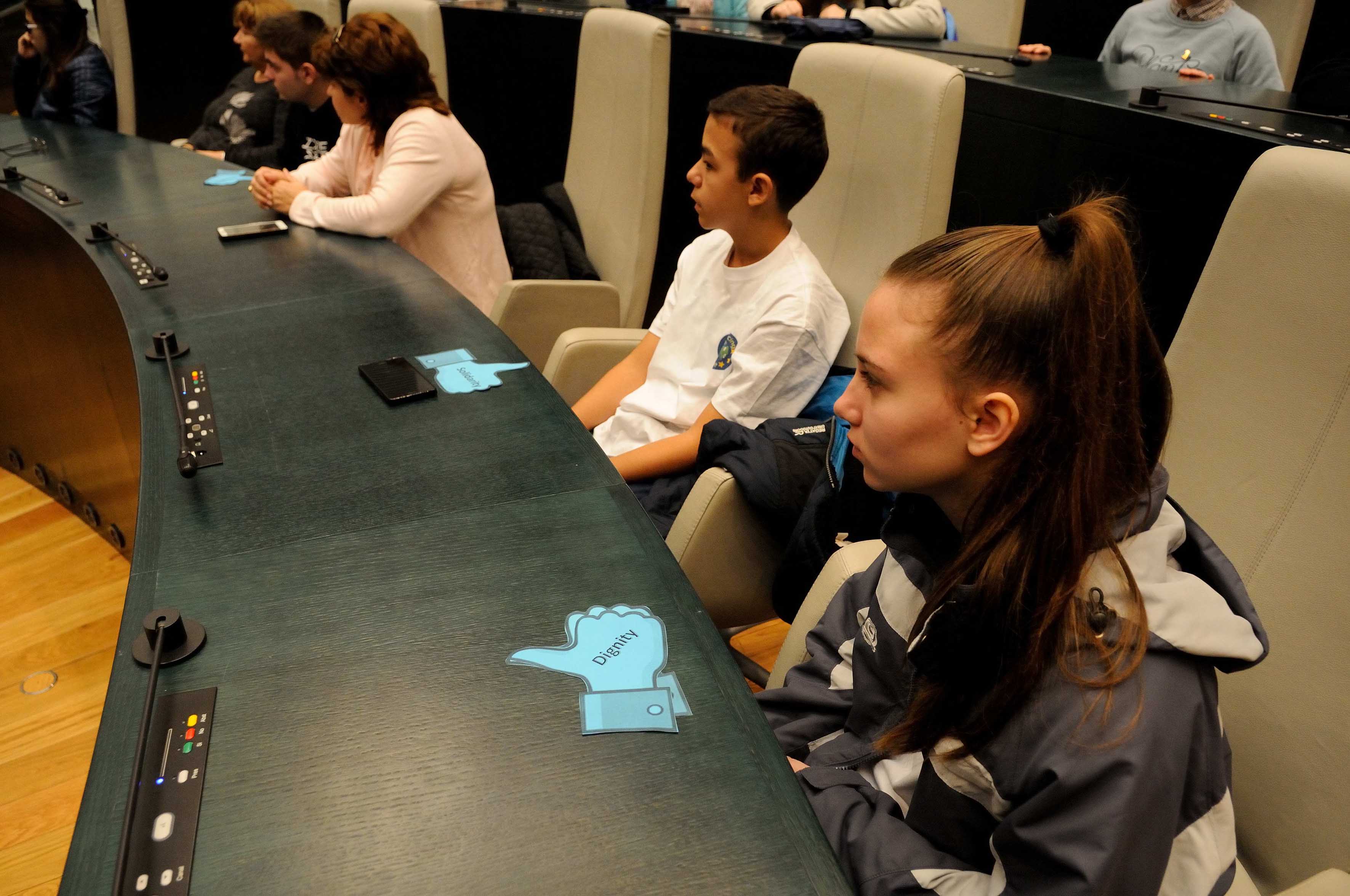 No son políticos, pero hoy ocupan los asientos del Salón de Plenos del Ayuntamiento de Madrid. Se trata de 110 estudiantes de entre 13 y 15 años de seis países europeos que están trabajando el concepto de ciudadanía europea. Que la ciudadanía significa personas integradas en su entorno, que trabajan para mejorar su comunidad a través de la participación activa en los asuntos sociales, políticos y económicos con voluntad de contribuir al logro de una vida mejor para todos.