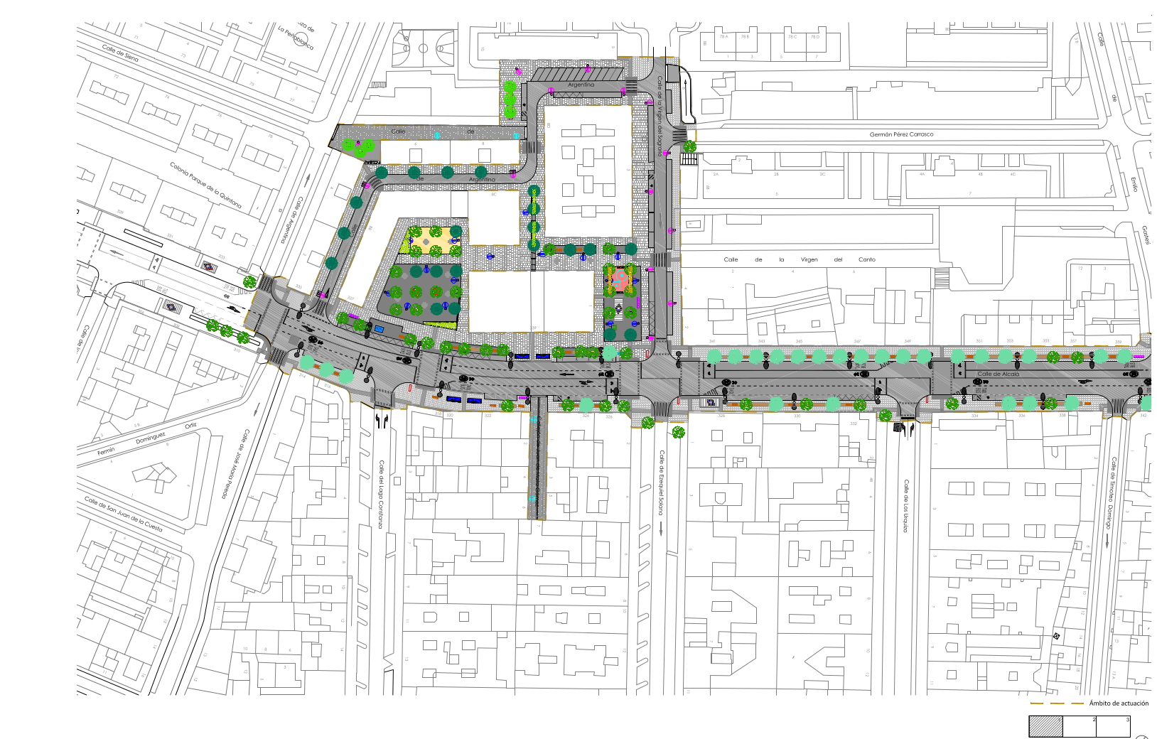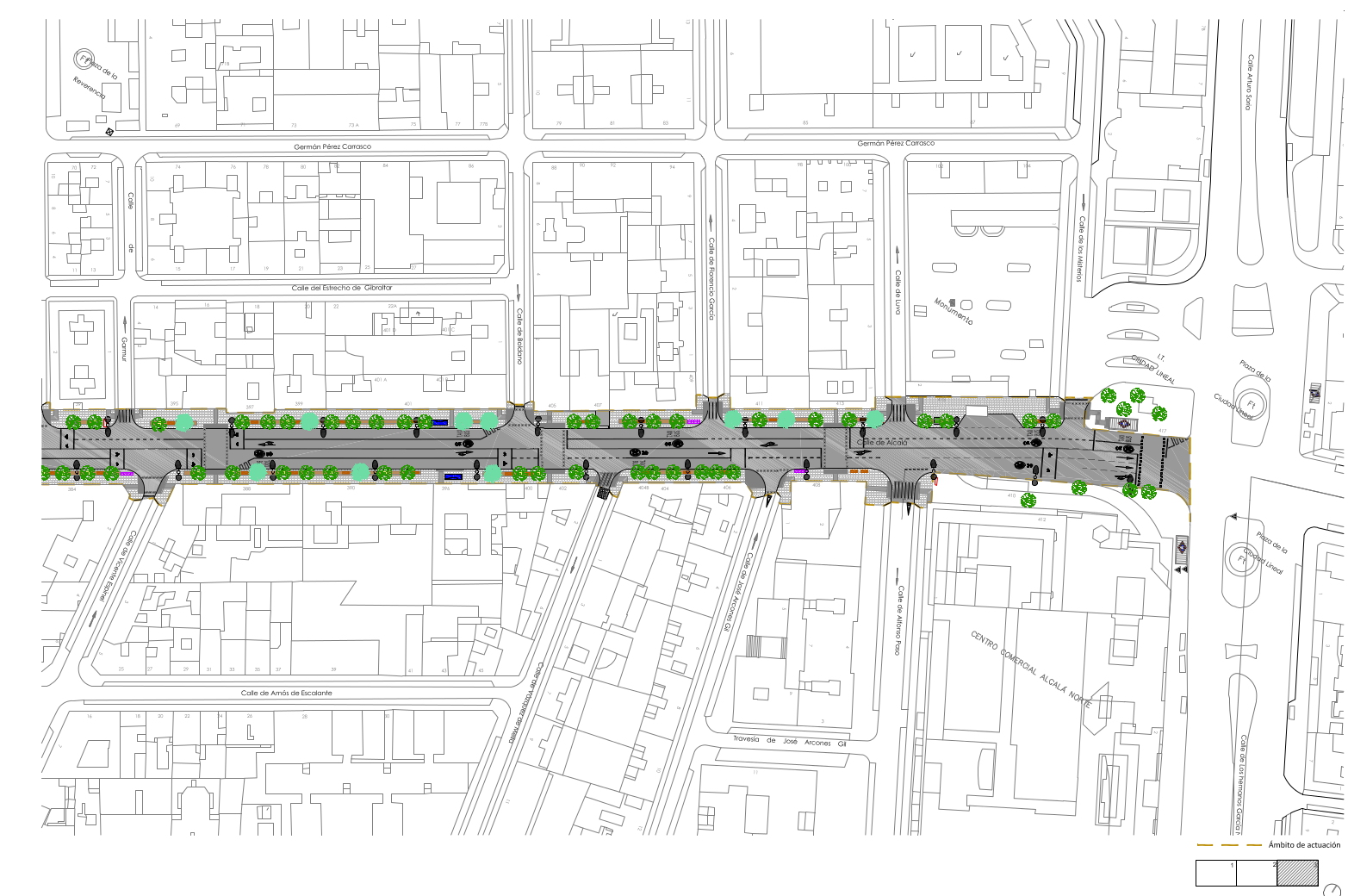 En concreto, la reforma abarcará el tramo de la calle de Alcalá comprendido entre la calle de Argentina y la plaza de Ciudad Lineal, así como la calle de Argentina (en su tramo frente a los números 6 y 8), la calle de Virgen del Sagrario (en su tramo frente a los números 2, 3, 4, 6 y 8), el callejón de Juan de Mata Gómez y la Plaza de Quintana.