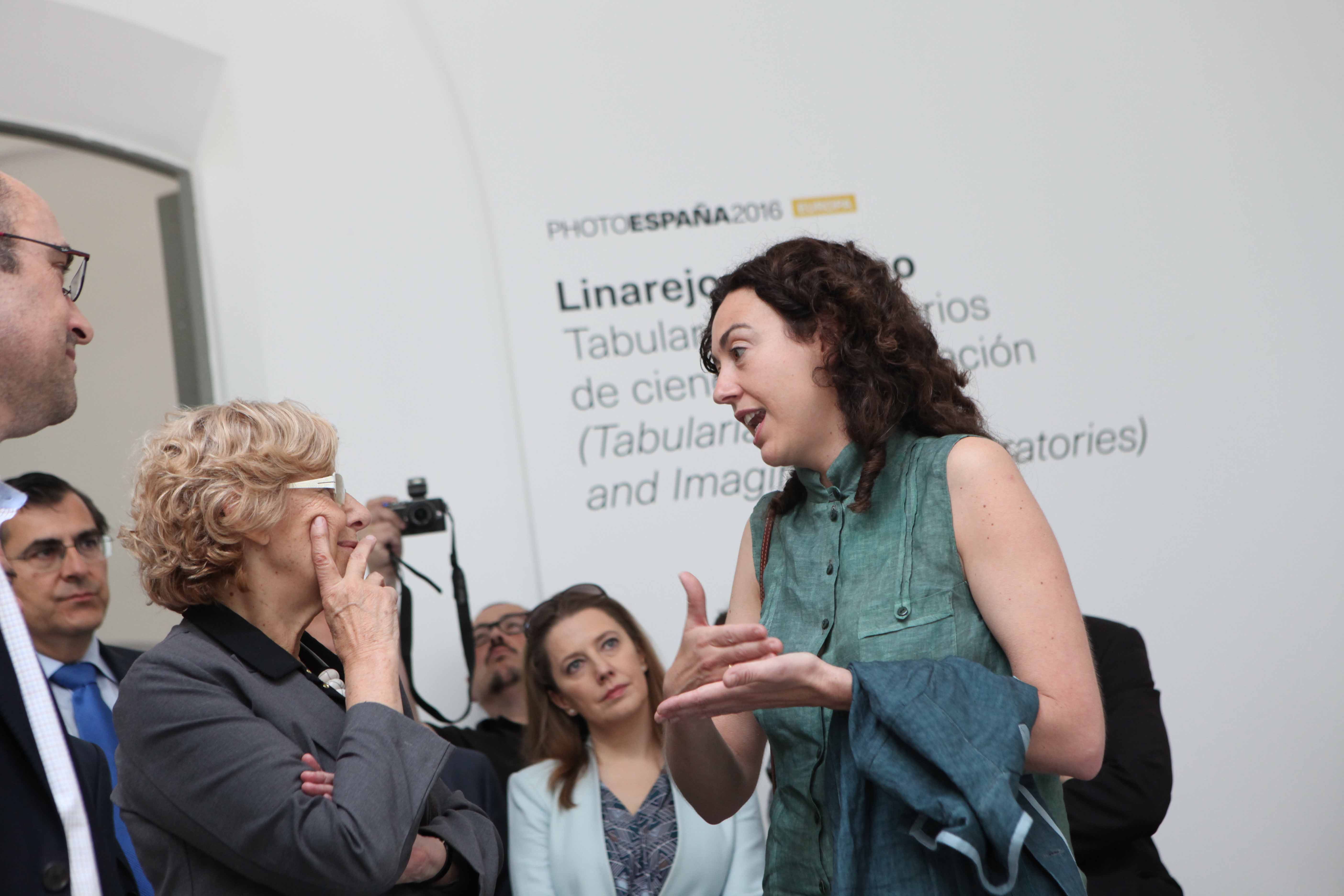 La alcaldesa de Madrid, Manuela Carmena, y la delegada del Área de Cultura y Deportes, Celia Mayer, han asistido a la inauguración del PHotoEspaña 2016, que ha tenido lugar en el Real Jardín Botánico de Madrid. En el festival, que se celebra desde hoy miércoles 1 de junio hasta el 28 de agosto, participan 330 autores en 94 exposiciones y 16 programas y actividades, en 52 sedes nacionales e internacionales.
