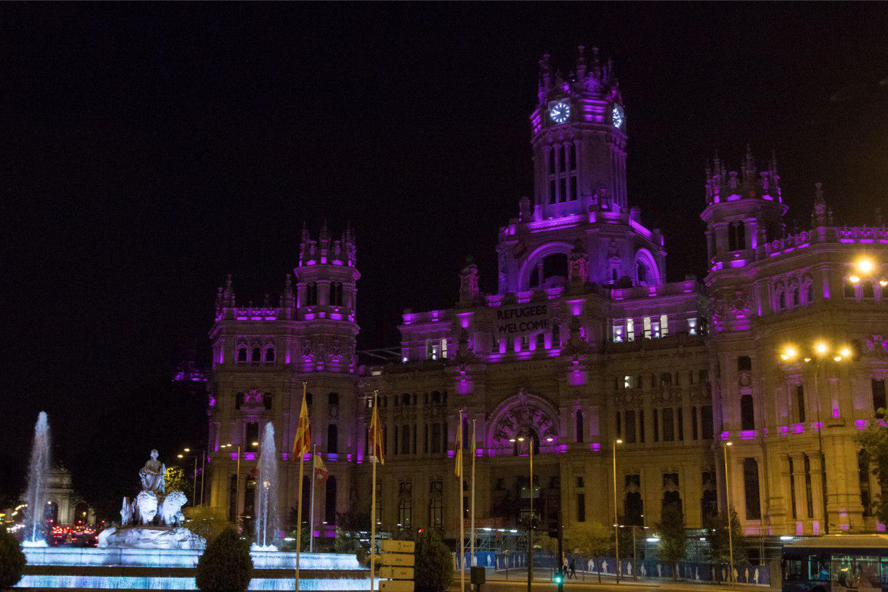 El palacio y la fuente de Cibeles se iluminarán de negro y morado esta noche a partir de las 20.00 horas aproximadamente