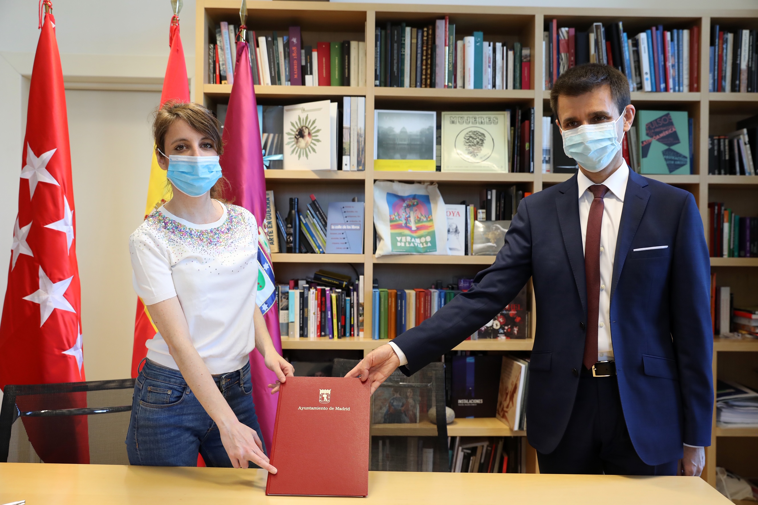 La delegada del Área de Cultura, Turismo y Deporte, Andrea Levy, ha participado hoy en la firma entre el Ayuntamiento de Madrid y Telemadrid para la retransmisión en abierto por parte del canal autonómico de cinco de las actuaciones de la programación municipal de Veranos de la Villa que este año se celebran en las instalaciones de Conde Duque.