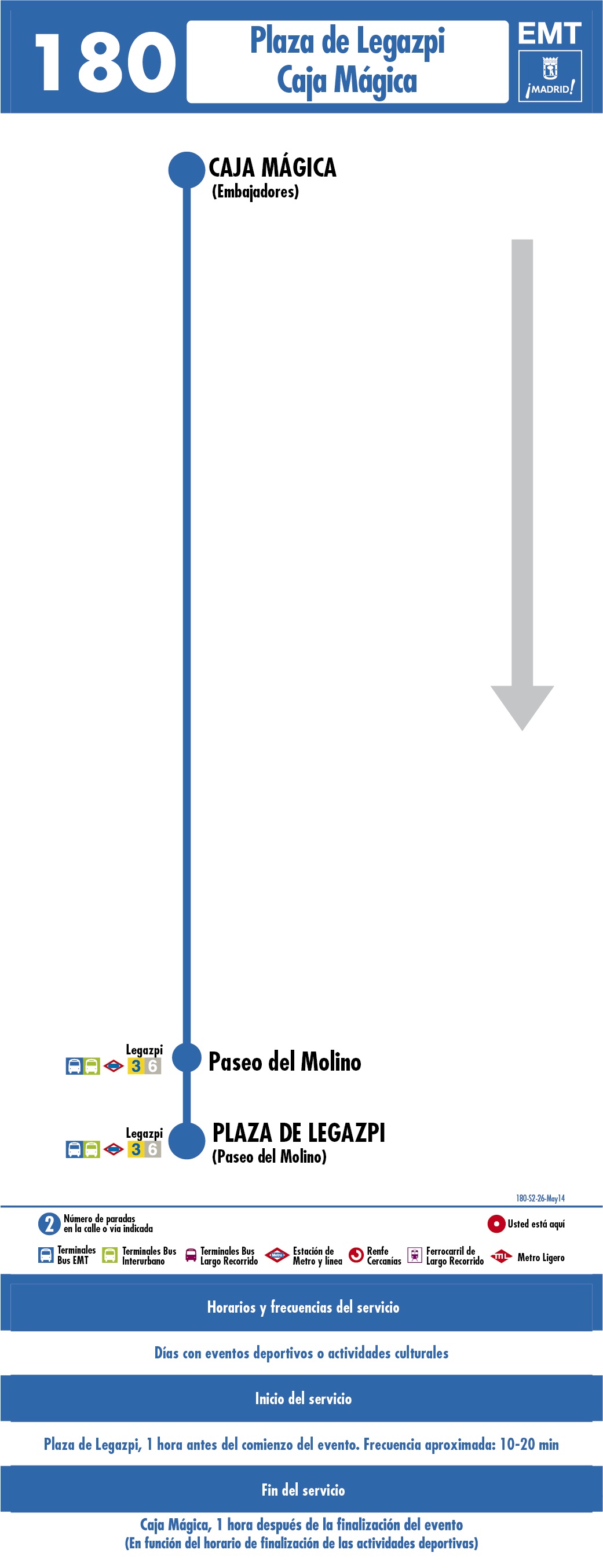 - La EMT pone en marcha un servicio especial para grandes eventos en Caja Mágica que incluye la línea 180 (Caja Mágica-Legazpi), además de 19 líneas que pasan por Legazpi