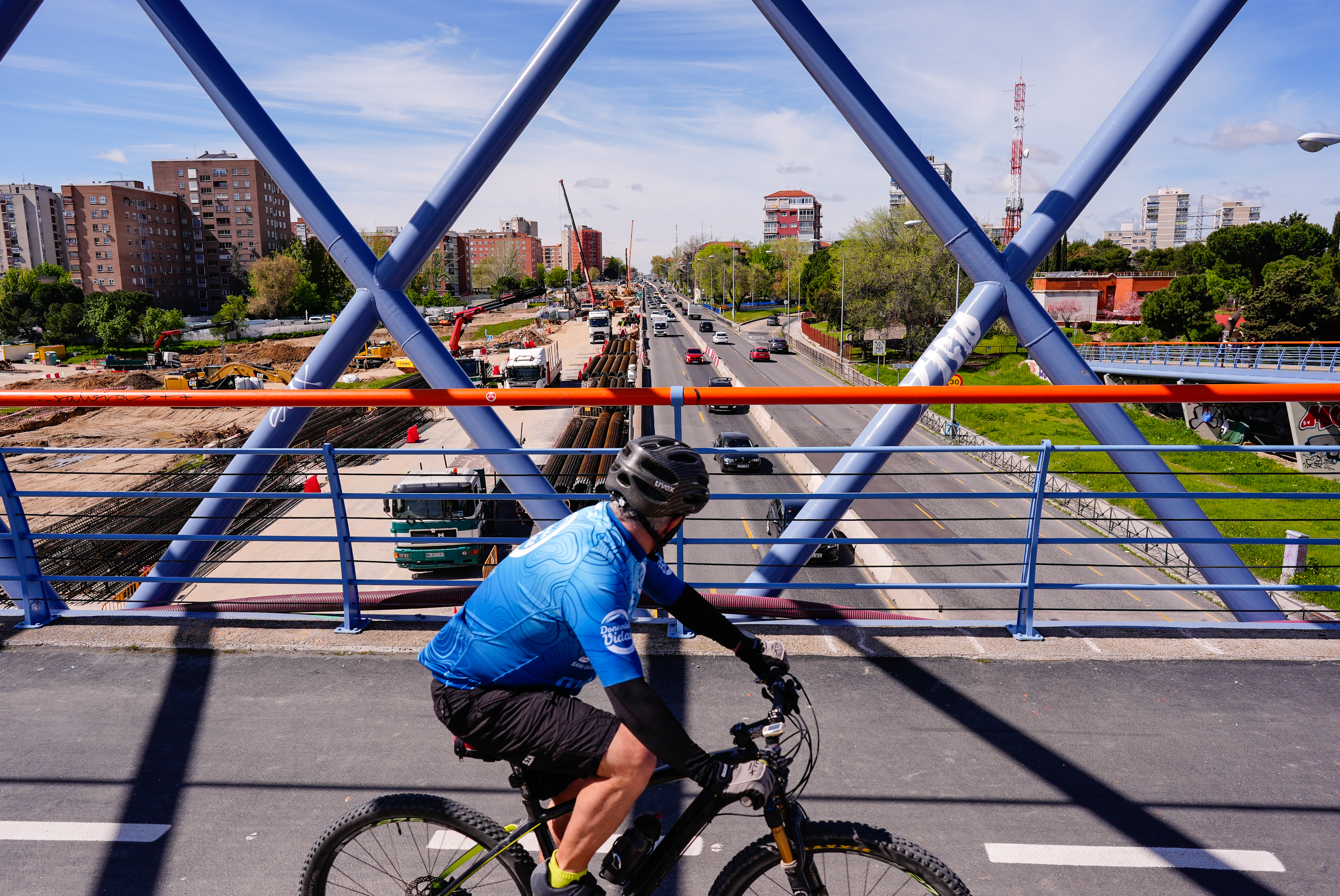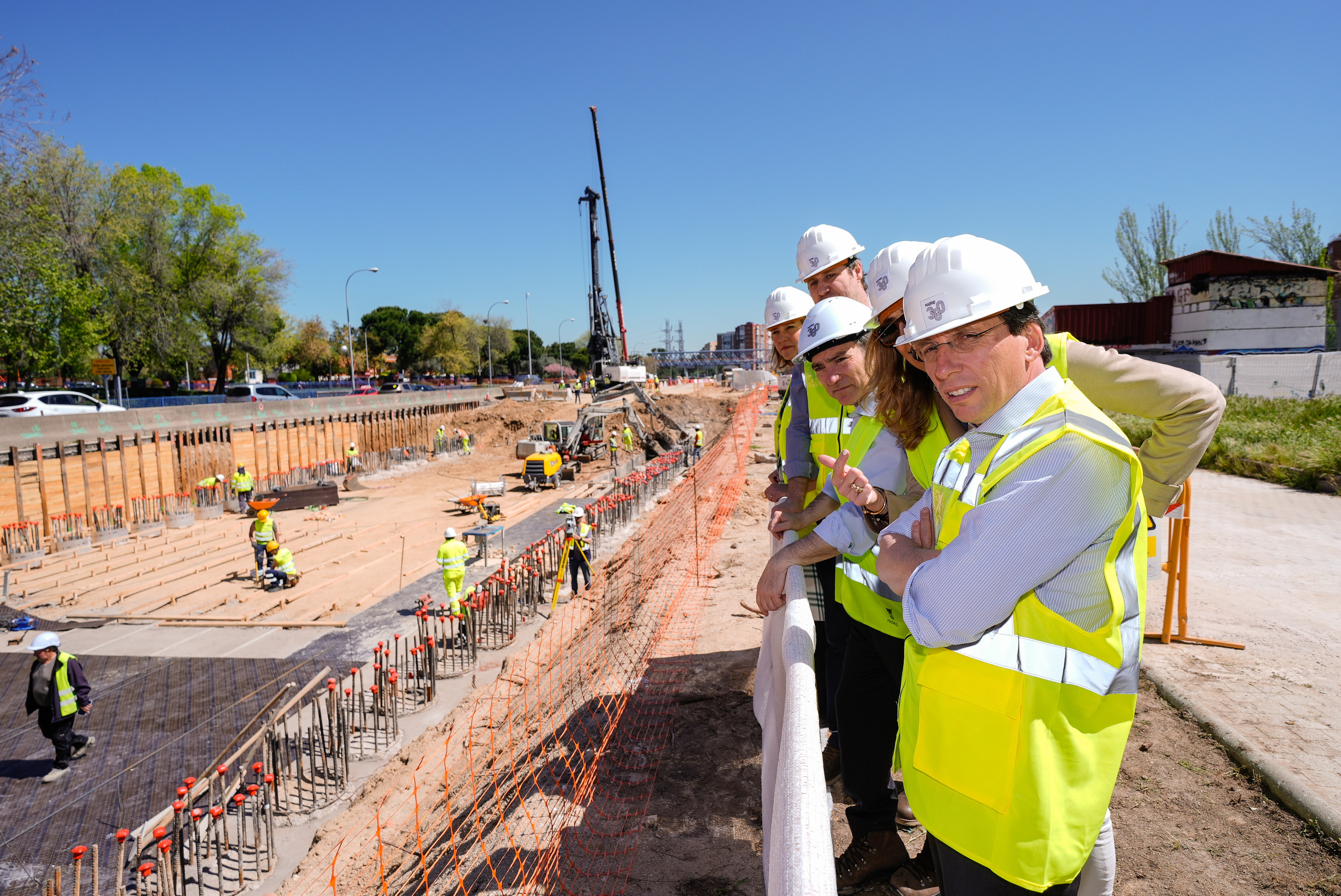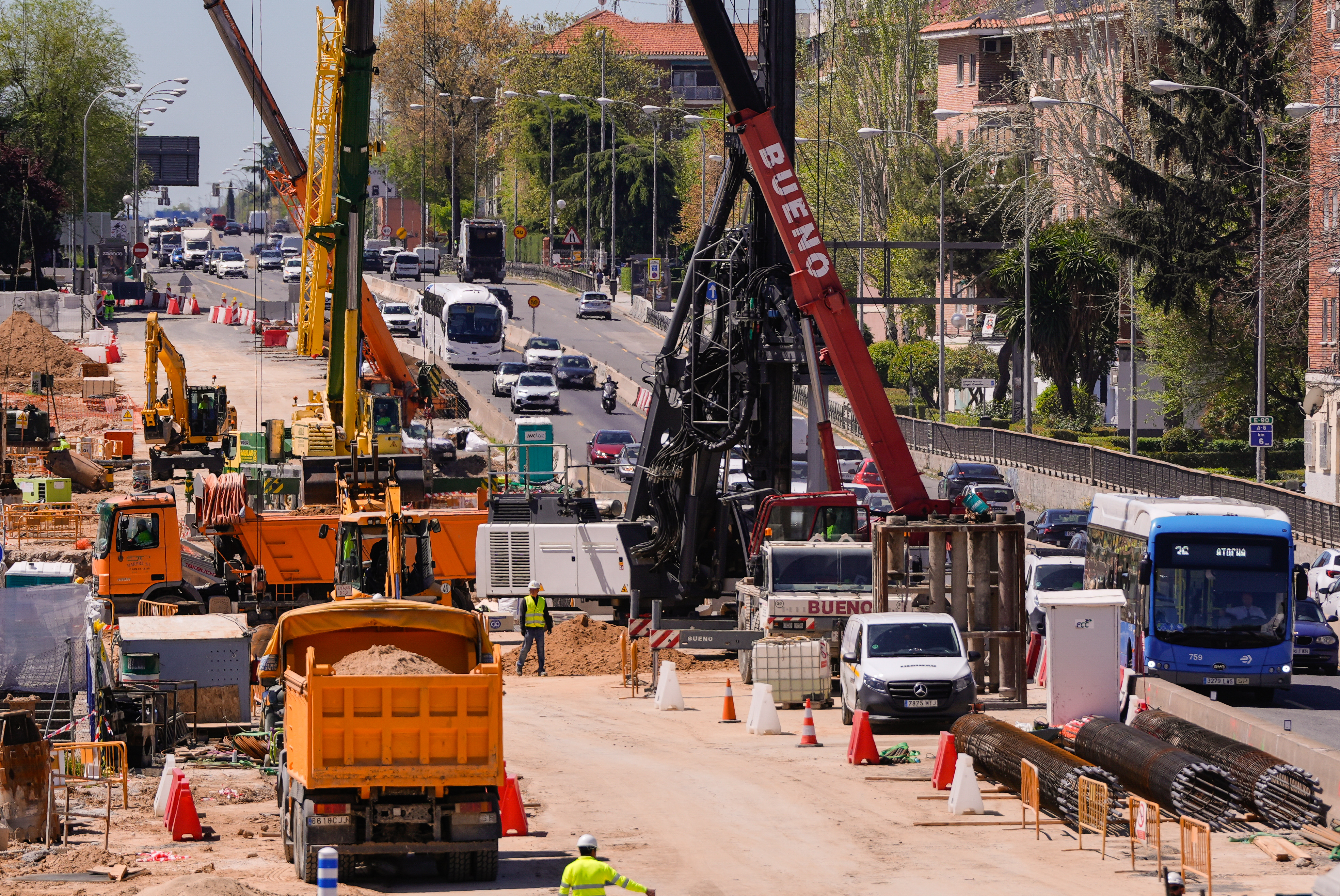 En ese espacio del distrito de Latina, operan diariamente ocho piloteras, ocho grúas y una veintena de excavadoras que se afanan en la construcción del túnel que sellará la brecha entre barrios. Ya se han colocado 1.650 pilotes -el 30 % del total-, una media de 70 diarios, para hacer realidad el soterramiento de la autovía que permitirá acabar con el 90 % del tráfico en superficie y sus emisiones contaminantes para dar lugar a un gran bulevar verde y peatonal.