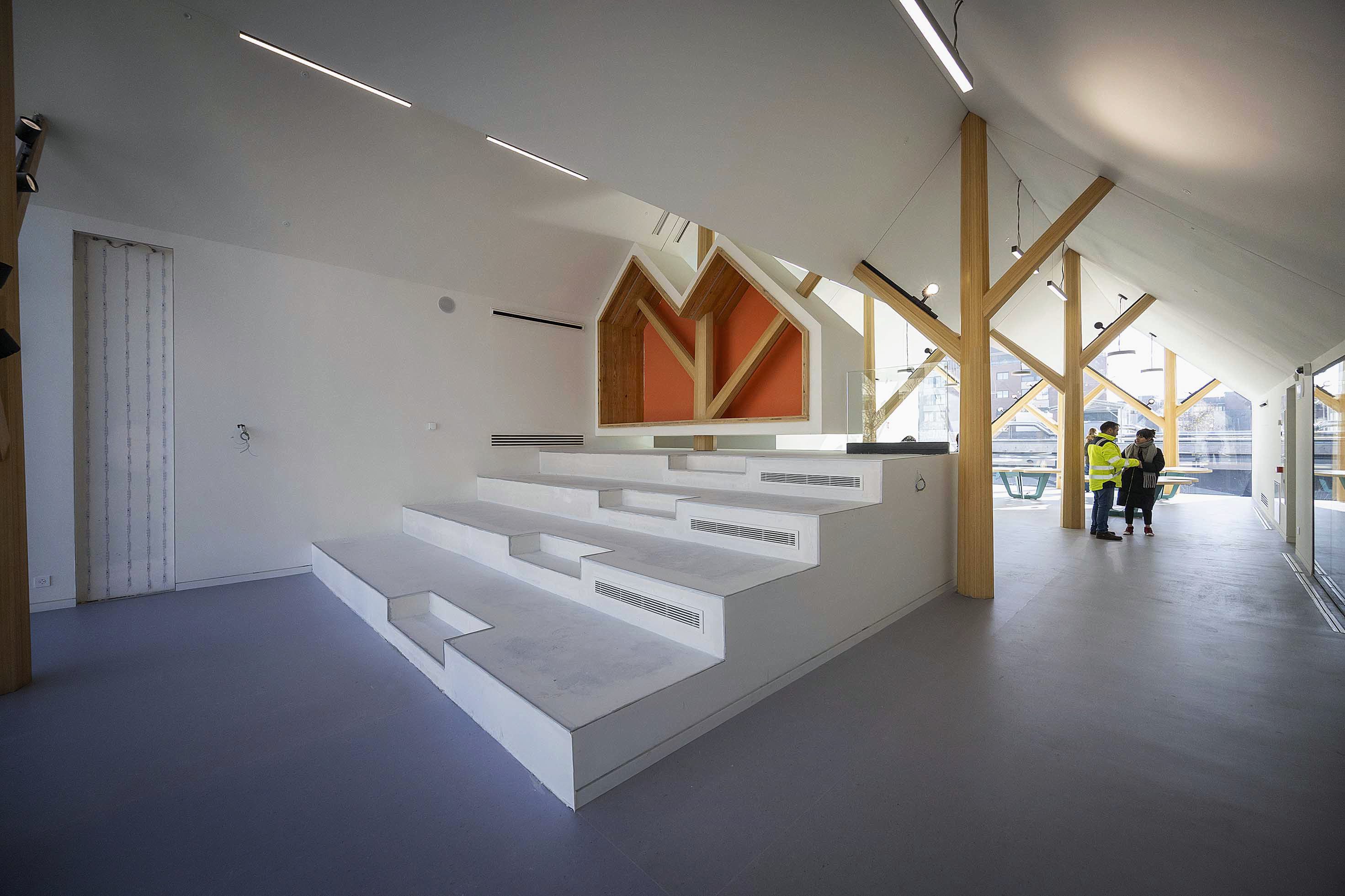 El diseño del equipamiento pone en valor el espacio mediante salas diáfanas de grandes dimensiones y un aprovechamiento eficiente de la superficie, reduciendo espacios residuales y rincones. La organización interior contempla una distribución flexible de los distintos ámbitos, estructurados en función de las exigencias de ruido y silencio, así como de su funcionalidad y de la posibilidad de una gestión independiente de los espacios.