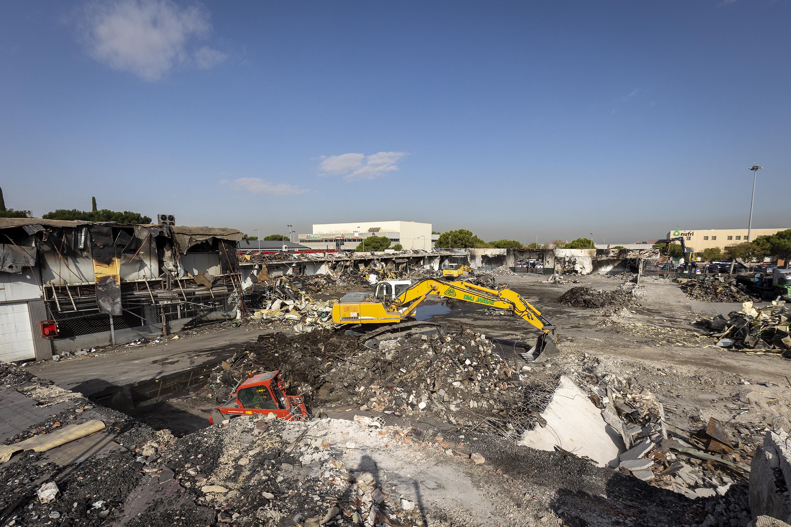 El Ayuntamiento finalizará los trabajos de demolición y limpieza de la nave incendiada en Mercamadrid a mediados de septiembre