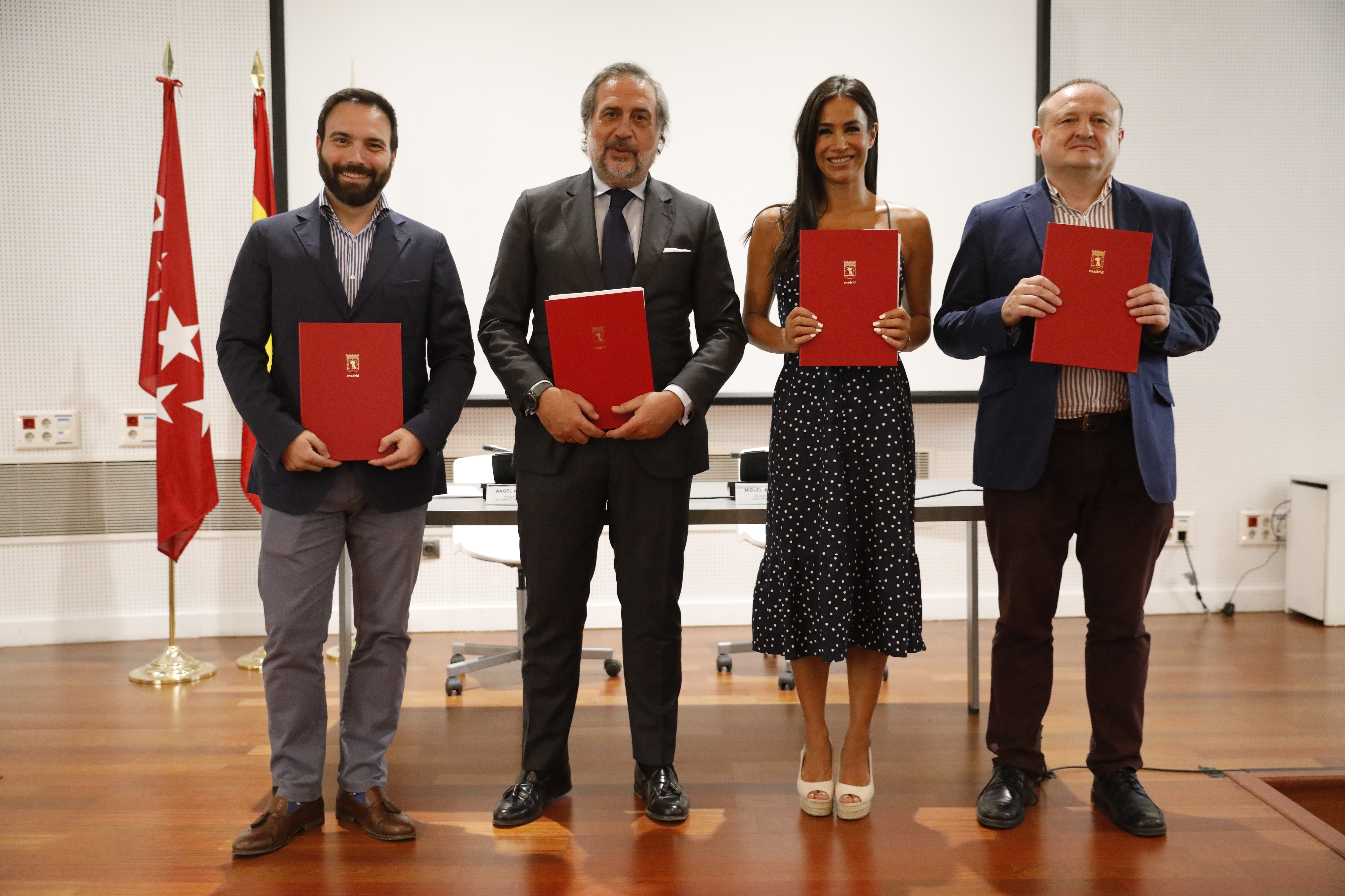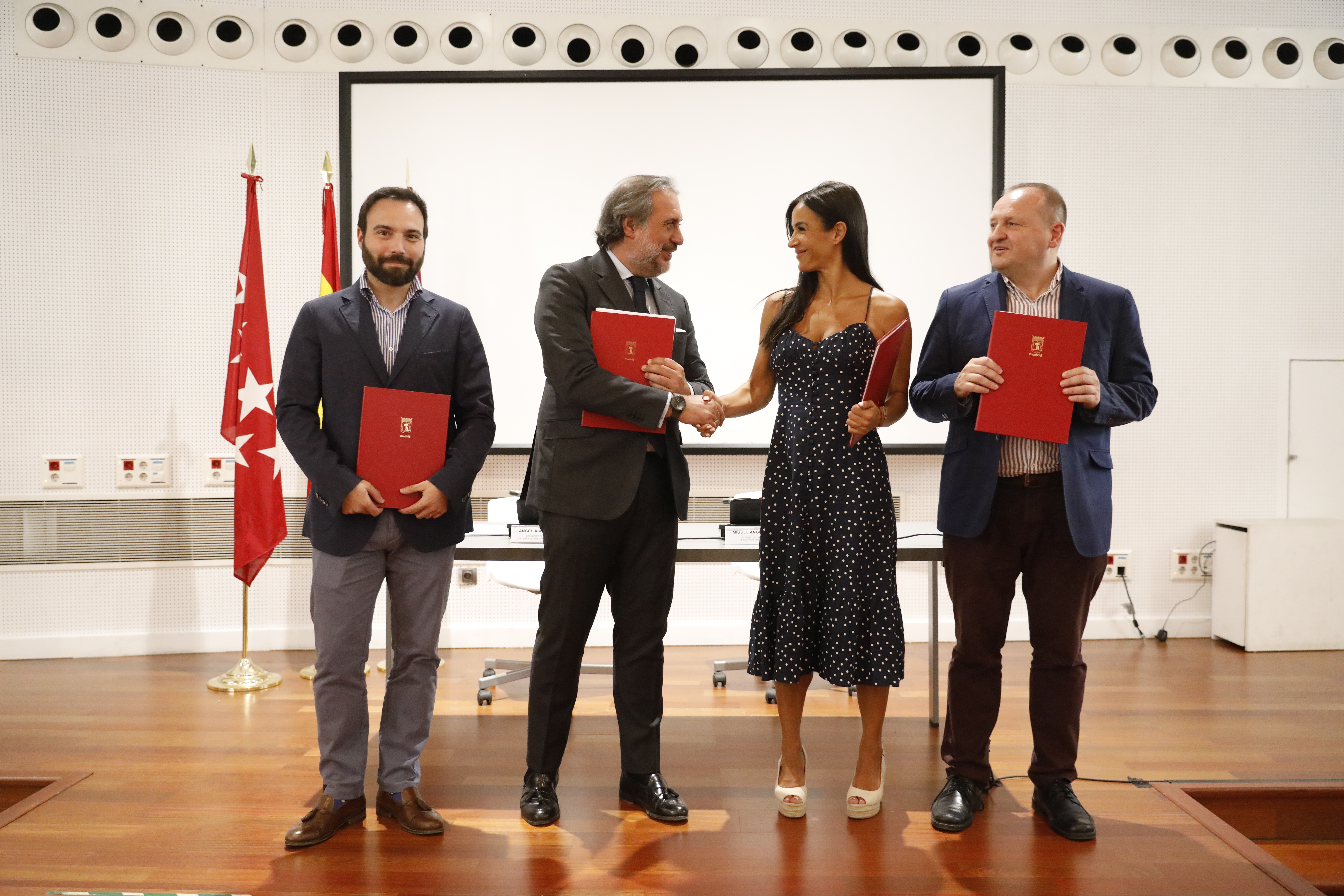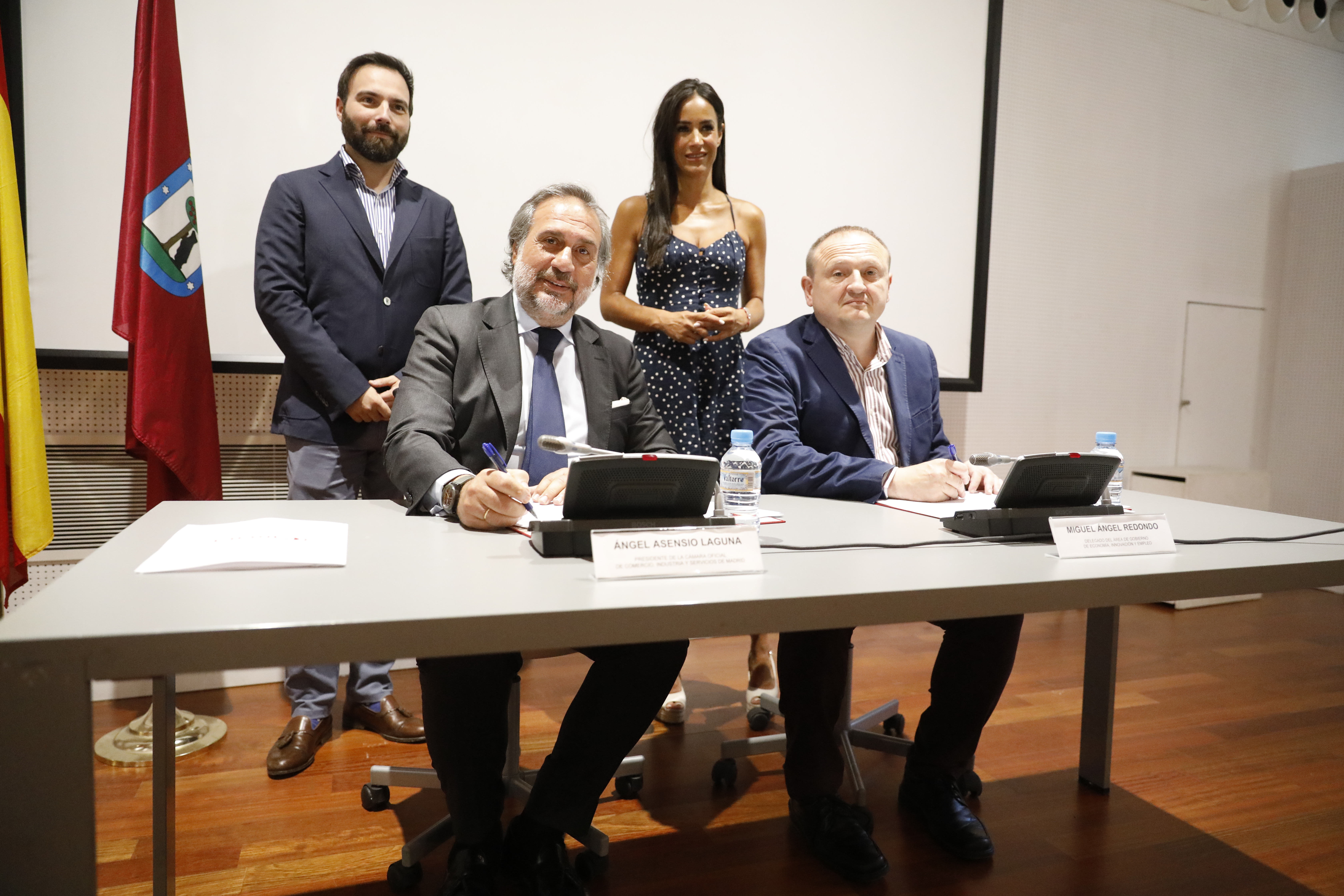 La vicealcaldesa de Madrid, Begoña Villacís, acompañada por el delegado de Economía y Empleo, Miguel Ángel Redondo, y por el concejal delegado de Innovación y Emprendimiento, Ángel Niño, ha participado este mediodía en la firma del convenio entre el Ayuntamiento y la Cámara de Comercio, Industria y Servicios de Madrid, para la gestión de ayudas a autónomos contempladas en el Plan Relanza del consistorio.