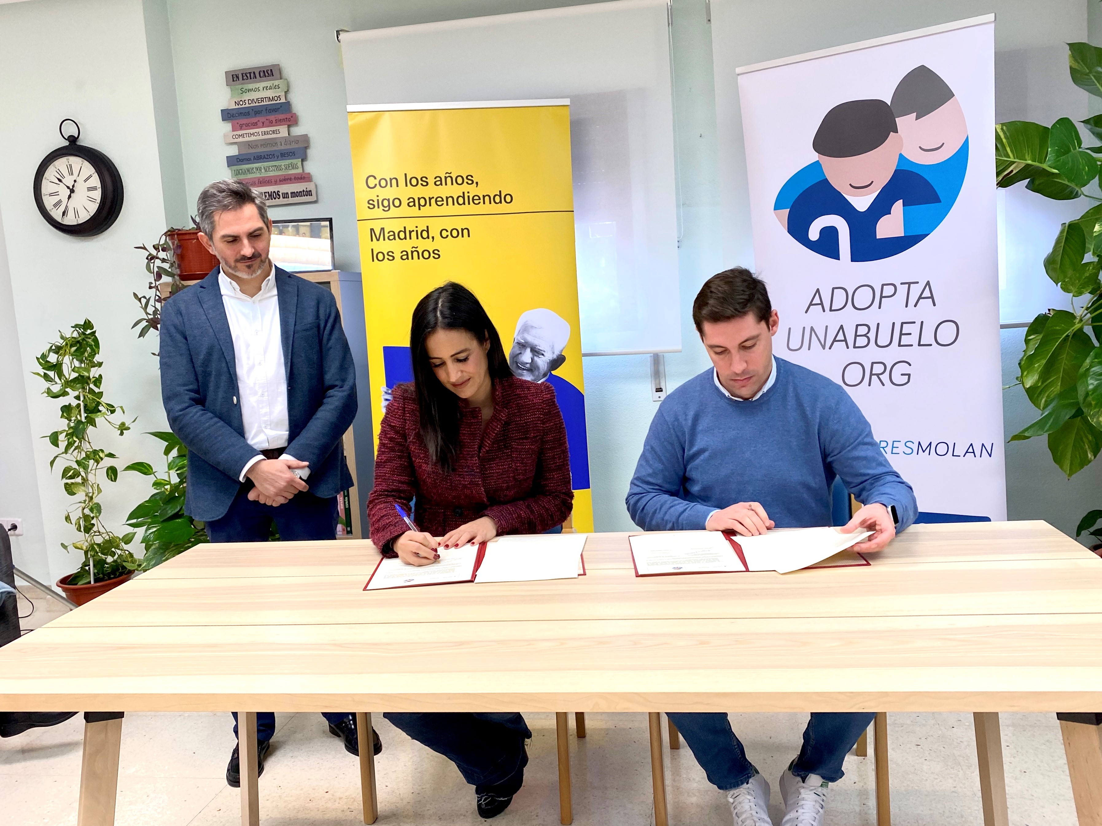 La vicealcaldesa del Ayuntamiento de Madrid, Begoña Villacís, y el delegado del Área de Familias, Igualdad y Bienestar Social, Pepe Aniorte, han firmado este martes un convenio de colaboración con el programa Adopta un abuelo para desarrollar y ejecutar de forma conjunta un proyecto dirigido a las personas mayores que palie situaciones de soledad.