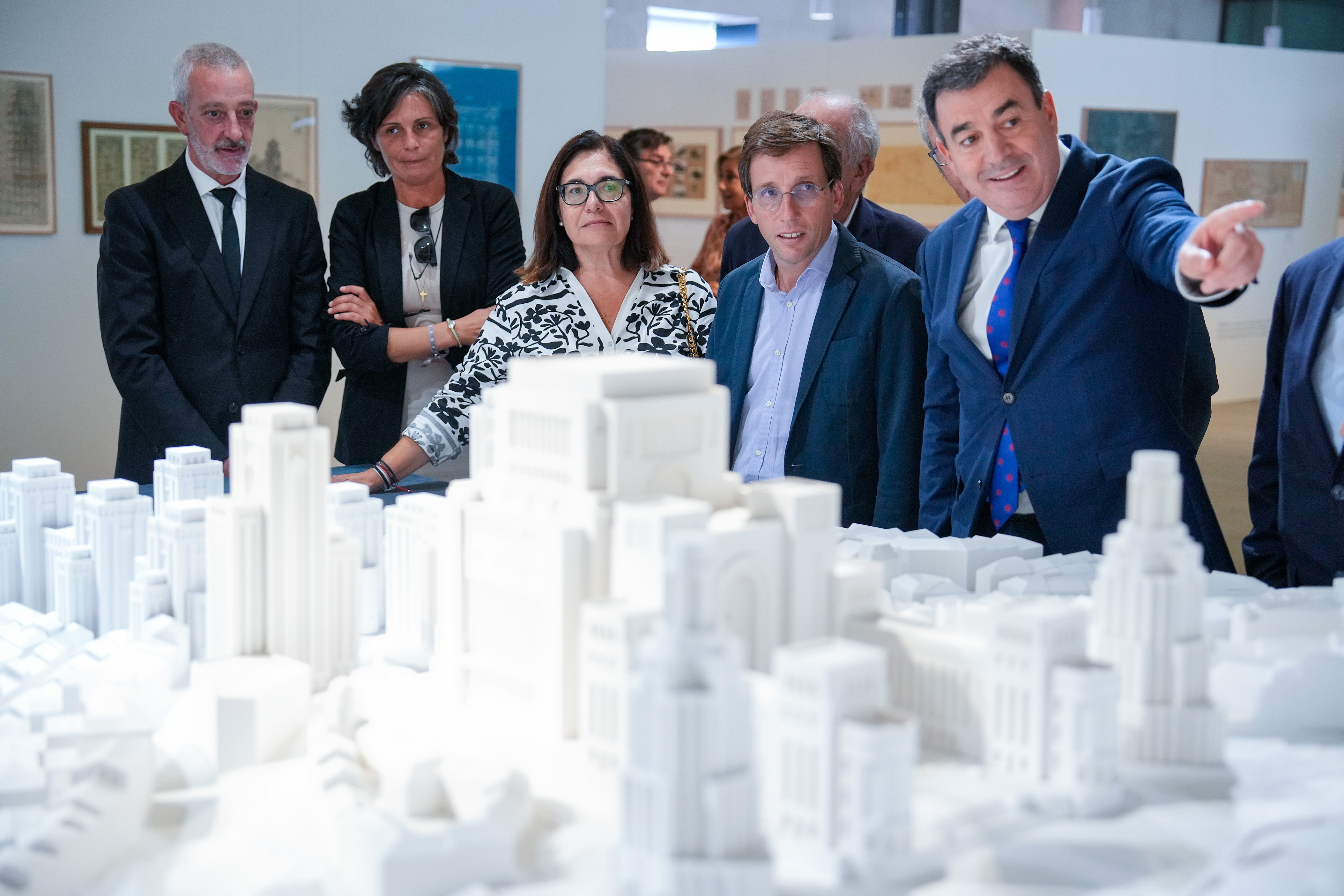 El alcalde, acompañado por el delegado de Políticas de Viviendas, Álvaro González, y junto al decano del COAM, Sigfrido Herráez, y el primer secretario de la Embajada de Ucrania en Madrid, Sergeii Soloviev, ha inaugurado las muestras Antonio Palacios. El rumor de la historia, el ruido del tiempo y Arquitectura en acción y Destrucción y reconstrucción en Ucrania, ambas instaladas en la sede del COAM y con las que el Ayuntamiento se ha sumado a la programación de esta nueva edición de la Semana de la Arquitectura. Una propuesta con la que, hasta el próximo 8 de octubre, la arquitectura cobra protagonismo en la agenda cultural de la región con 300 actividades entre exposiciones, conferencias, conciertos, actividades infantiles y hasta un mercado artesanal, además de un nutrido programa de visitas guiadas a edificios e itinerarios de reconocido valor arquitectónico e histórico, entre las que el Ayuntamiento propone los recorridos por el Frontón Beti Jai, el Pabellón de los Hexágonos y el Palacio de Cibeles.