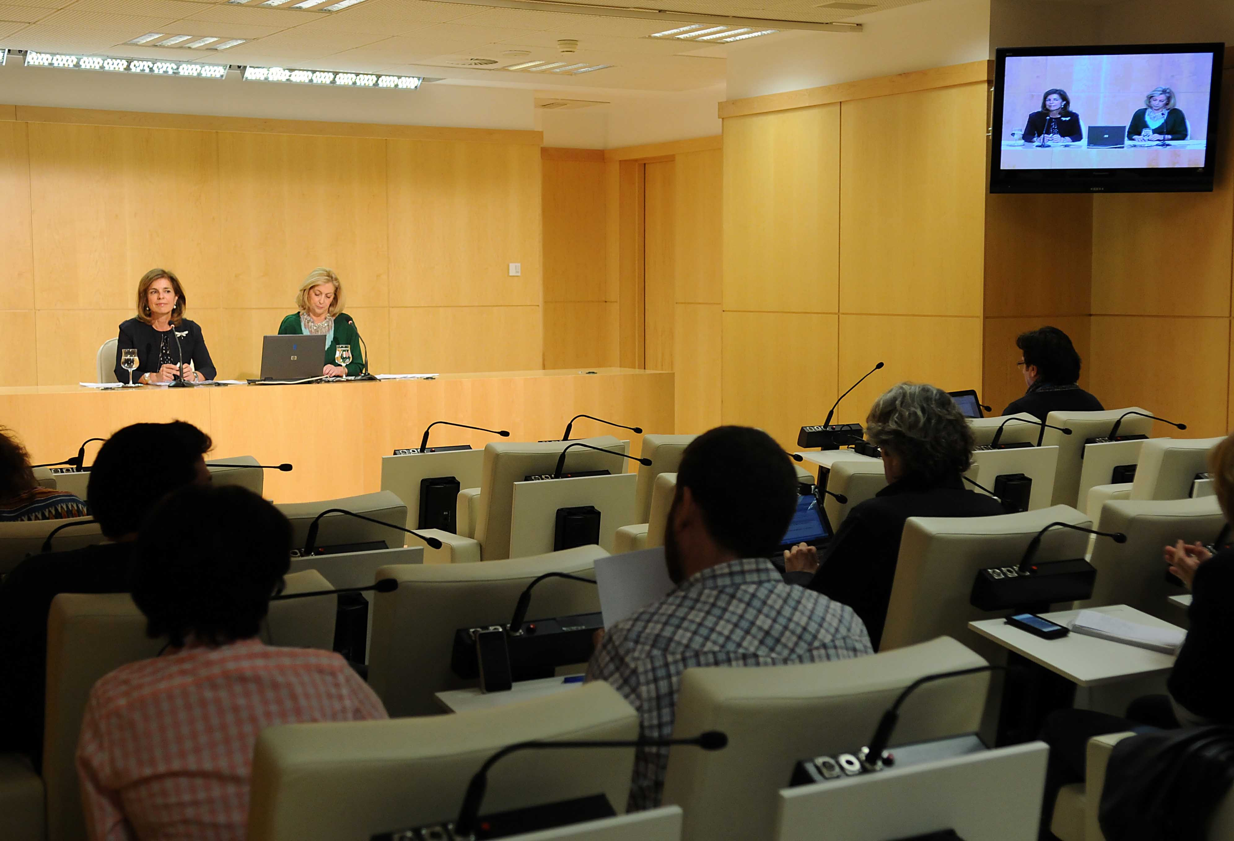 La alcaldesa de Madrid, Ana Botella, informó esta mañana en rueda de prensa sobre los temas tratados en la Junta de Gobierno que había presidido con anterioridad en el Palacio de Cibeles.