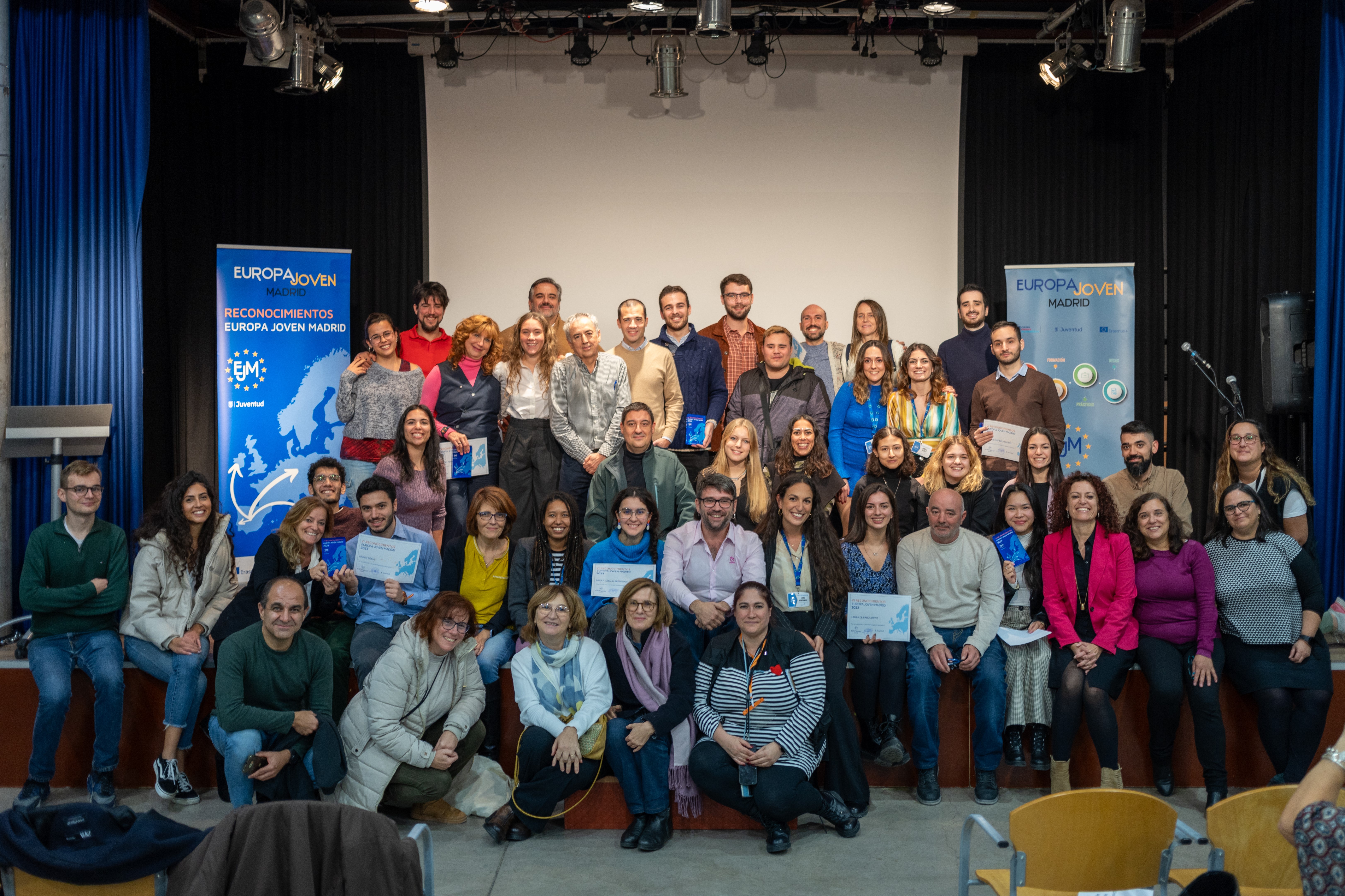 El reconocimiento a la Trayectoria Profesional lo han recibido Lourdes Fernández, excoordinadora de Centros Juveniles del Ayuntamiento de Madrid, e Ismael Codesal Valdezate, profesor de FP y Coordinador Erasmus del IES Carlos María Rodríguez de Valcárcel. Carlos Carretero, director del Centro Eurolatinoamericano de la Juventud del INJUVE y Laura Castilla, directora general de Juventud de la Comunidad de Madrid, han entregado el último premio, el de la categoría de Juventud Inspiradora, que ha sido otorgado a los jóvenes Sara Asenjo, Ifigenia Stoilova, Laura de Parla, Erin Shaira, Luciano Nahuel, Thomas Fauré y Marco Fischi.