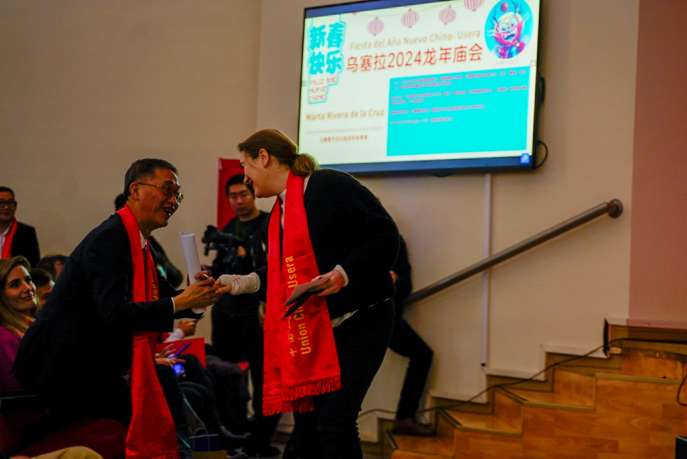 En un acto que estaba previsto en la explanada de la Junta Municipal de Usera y que se ha trasladado al salón de actos del edificio consistorial por la lluvia, Rivera de la Cruz y Cea han recordado que Madrid tiene una importante comunidad china, con casi 40.000 personas residentes en la ciudad, así bien una cuarta parte de los chinos madrileños vive en Usera, y han destacado los lazos de unión con dicha comunidad.