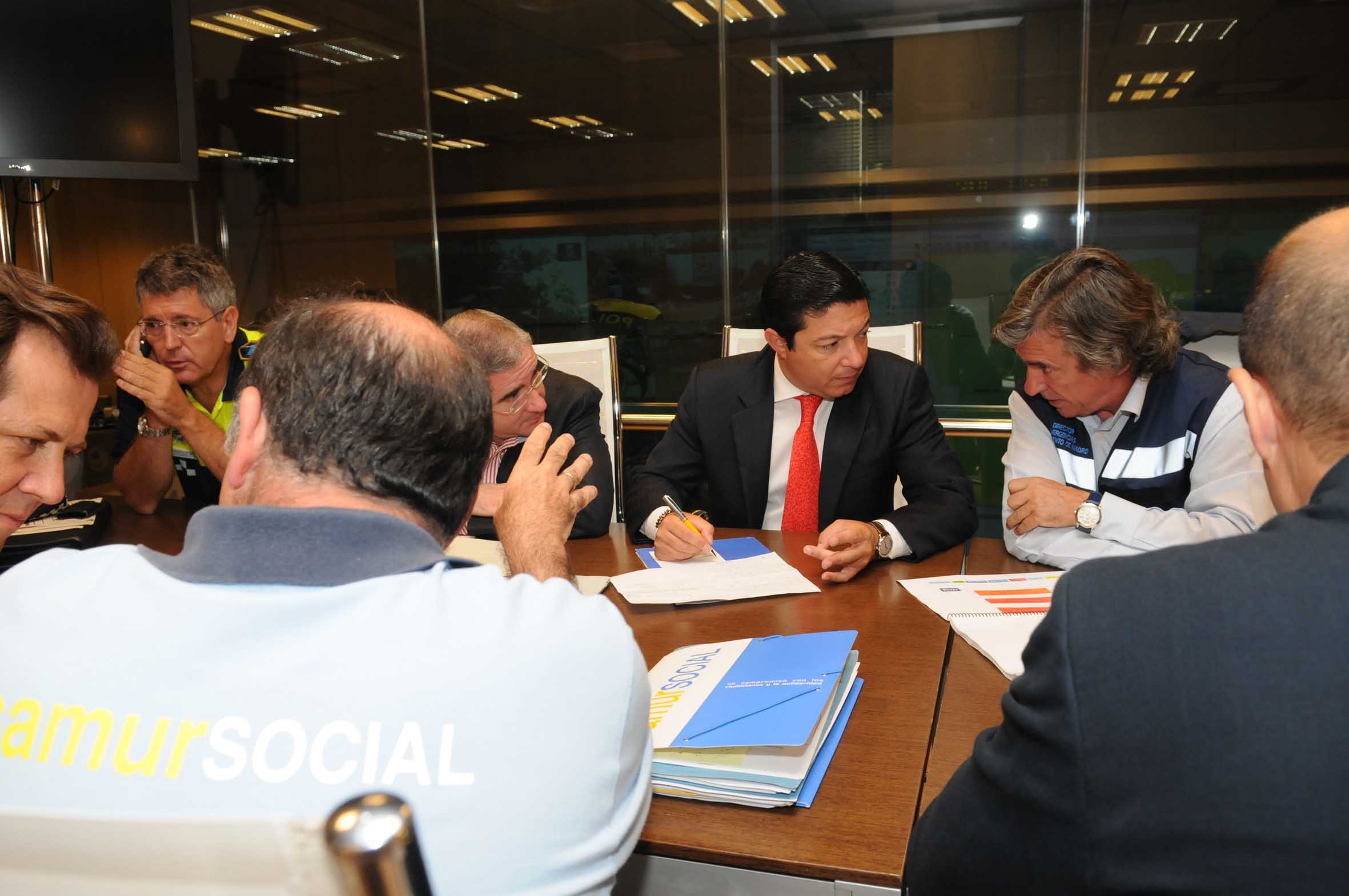 El delegado de Seguridad de la Ciudad de Madrid, Pedro Calvo, ha presidido esta mañana en el CISEM (Centro Integrado de Seguridad y Emergencias de Madrid) una reunión para verificar la coordinación de los servicios de emergencia municipales con motivo de la Jornada Mundial de la Juventud (JMJ) y garantizar así el normal desarrollo de los actos principales que tendrán lugar desde hoy y hasta el próximo 22 de agosto.